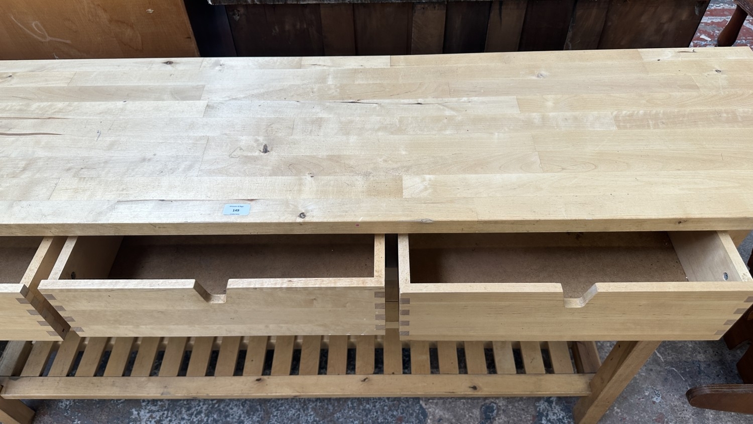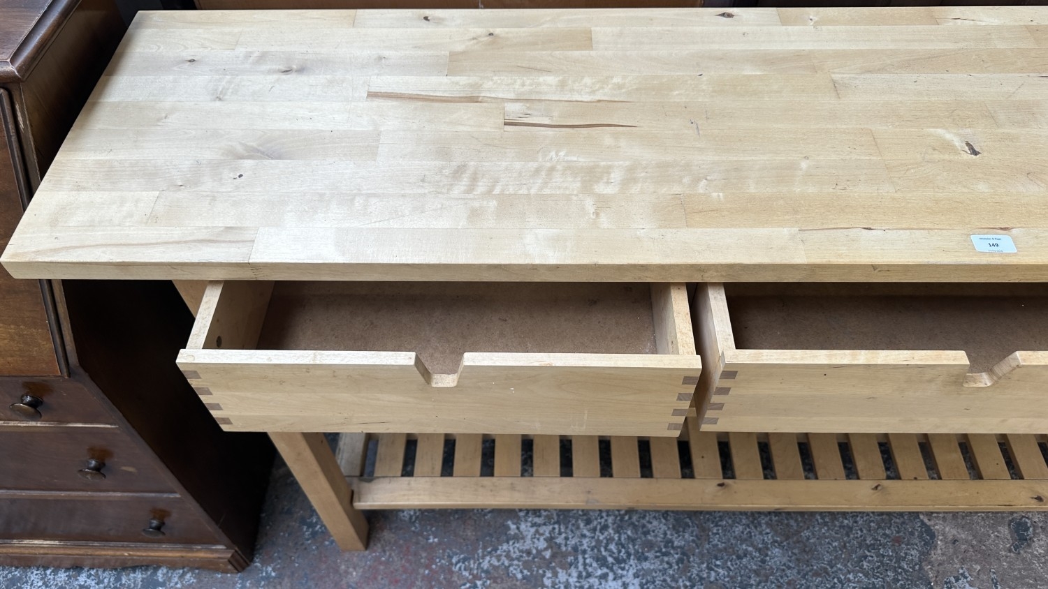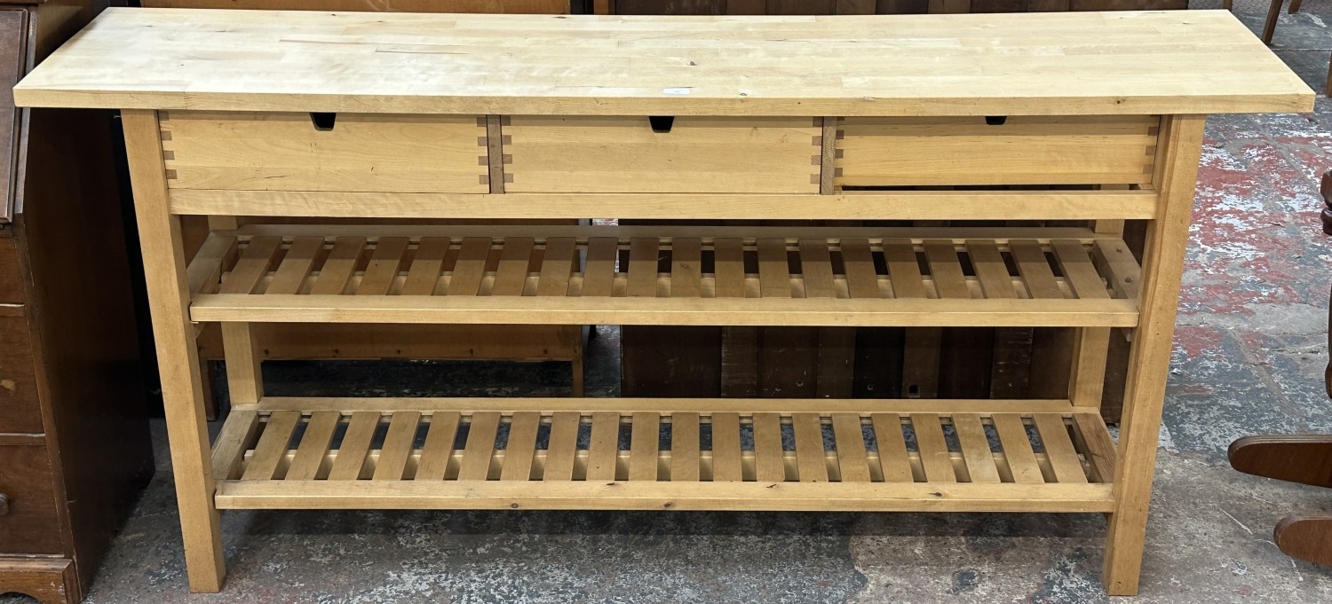 An IKEA birch wood kitchen island/sideboard - approx. 90cm high x 188cm wide x 43cm deep