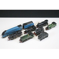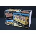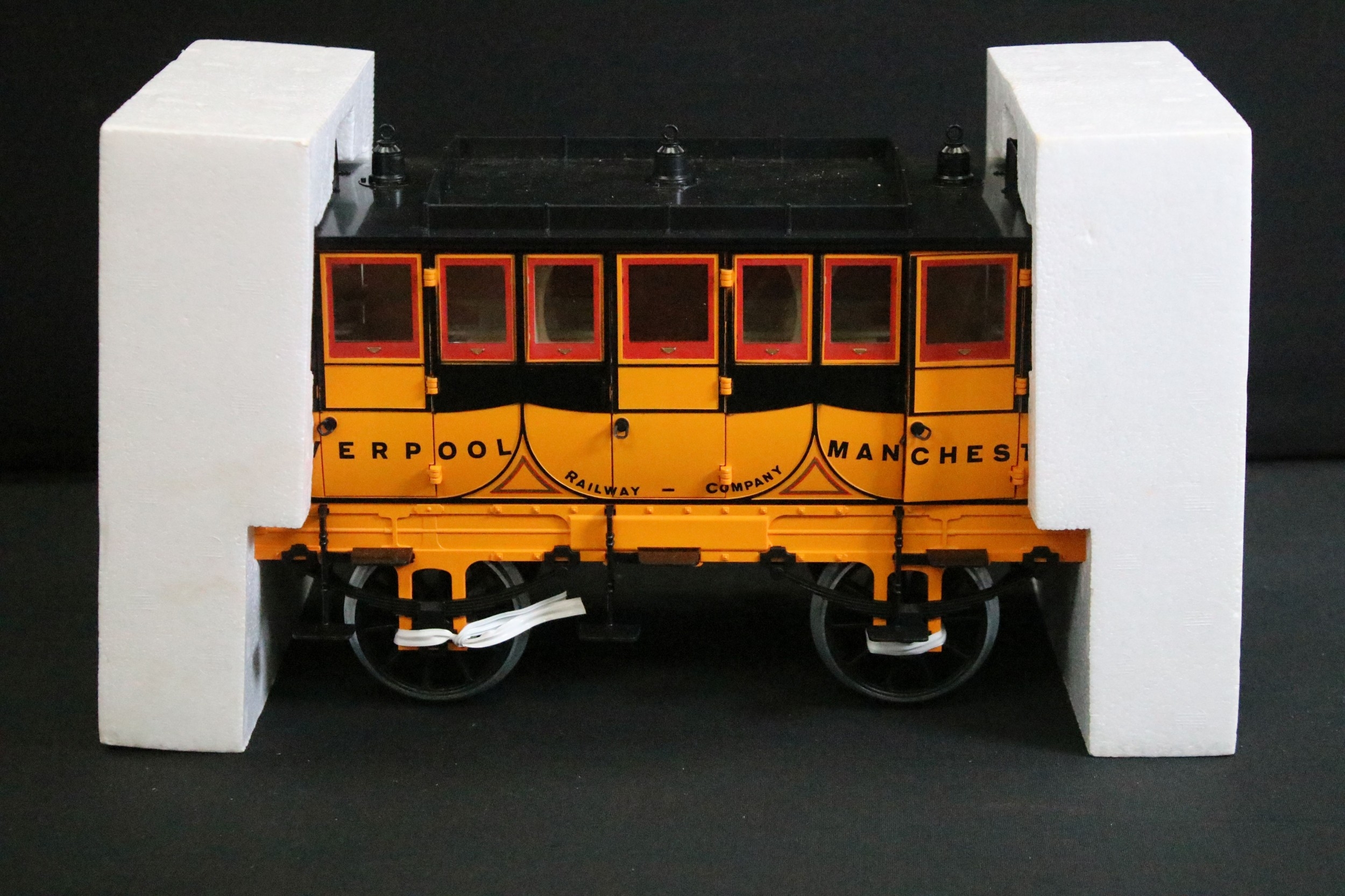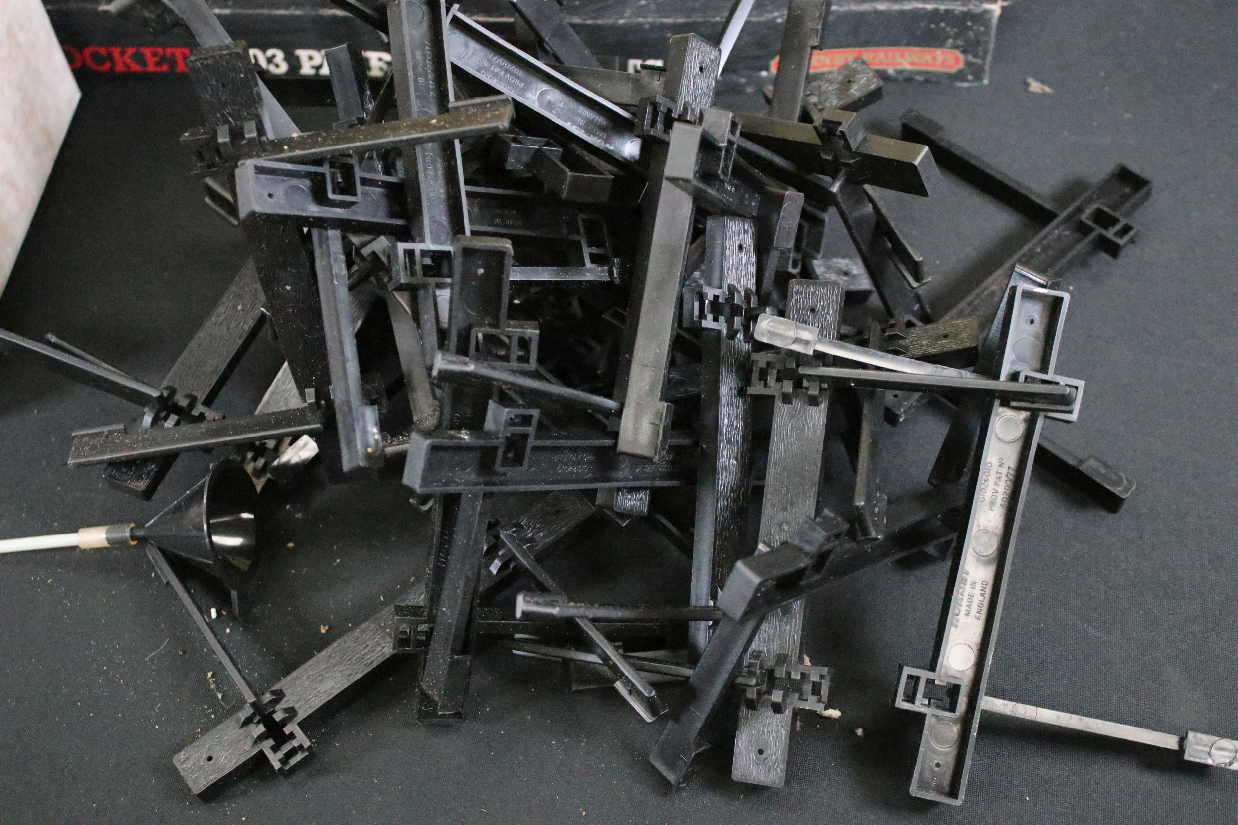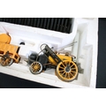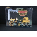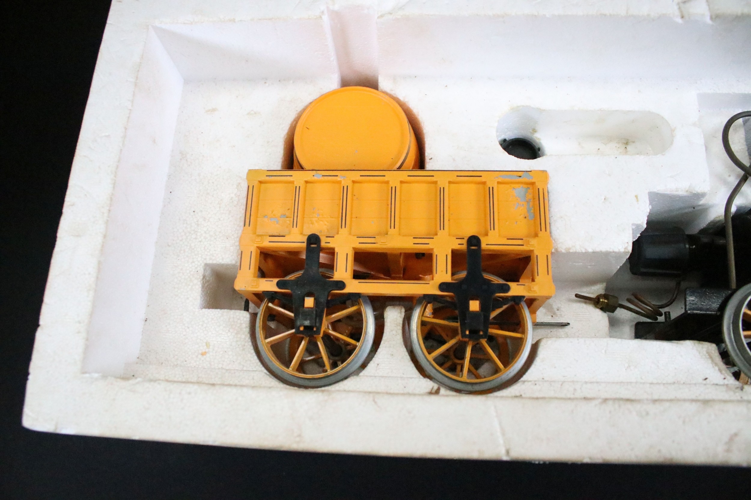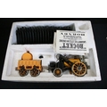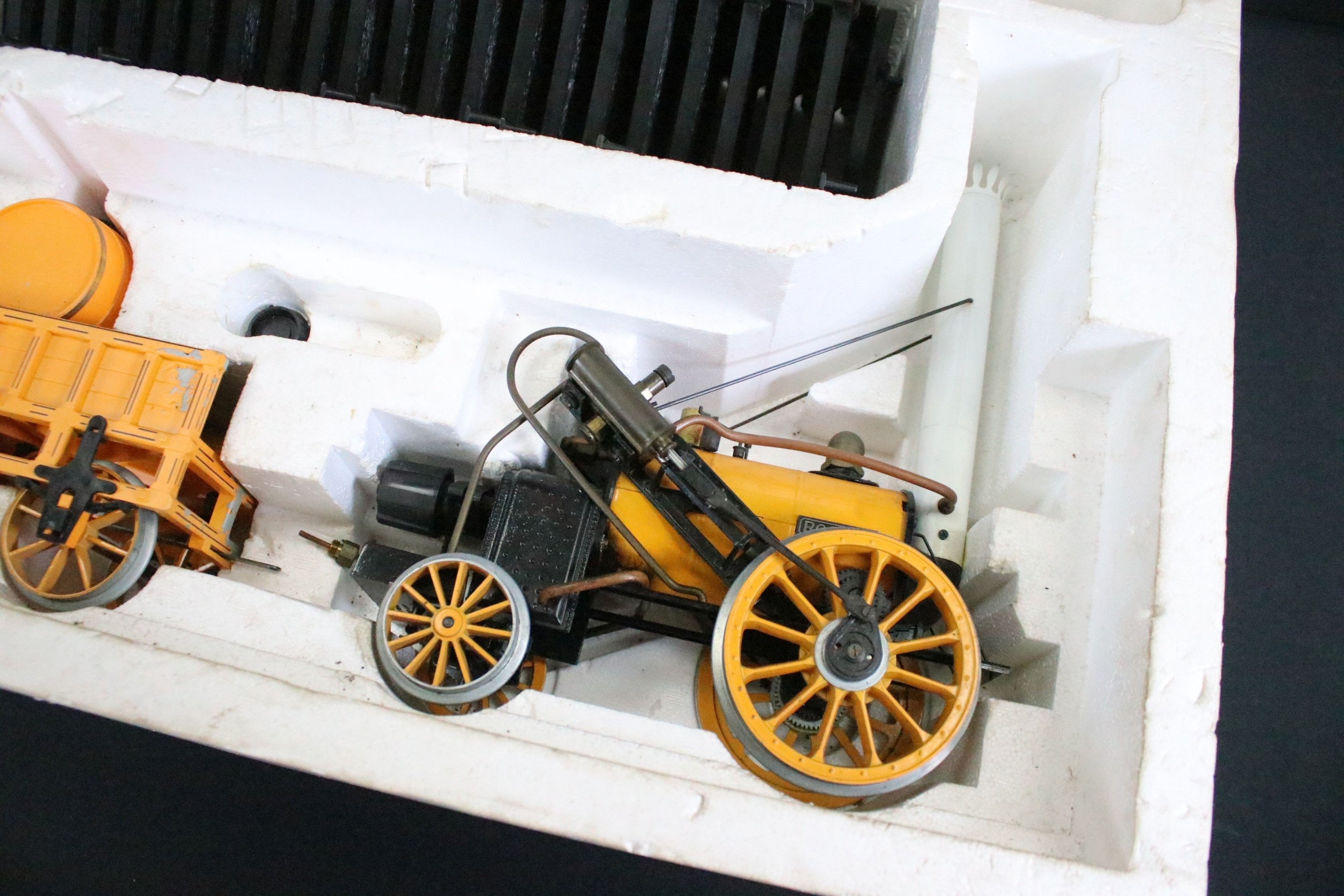 Four boxed 3.5 gauge Hornby Stephensons Rocket items to include Real Steam Train Set, G102 25' Of Track, G104 Coach and G103 Pair Of Y Points, contents vg, boxes showing signs of wear but gd overall