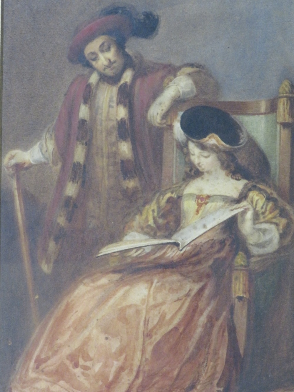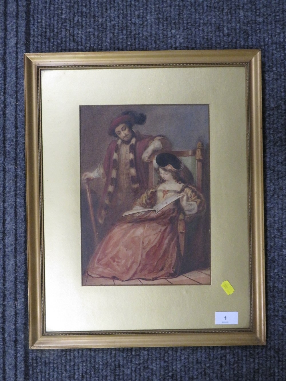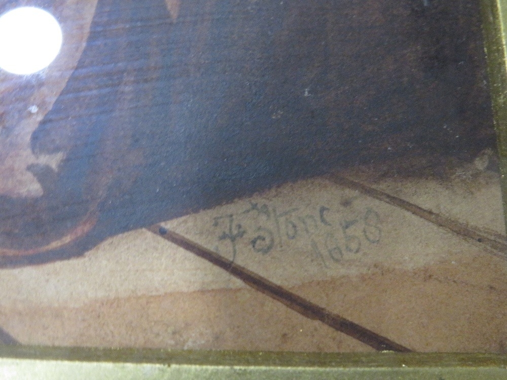 F. STONE - a 19th century watercolour depicting medieval figures, signed and dated 1858, together with a modern print (2)