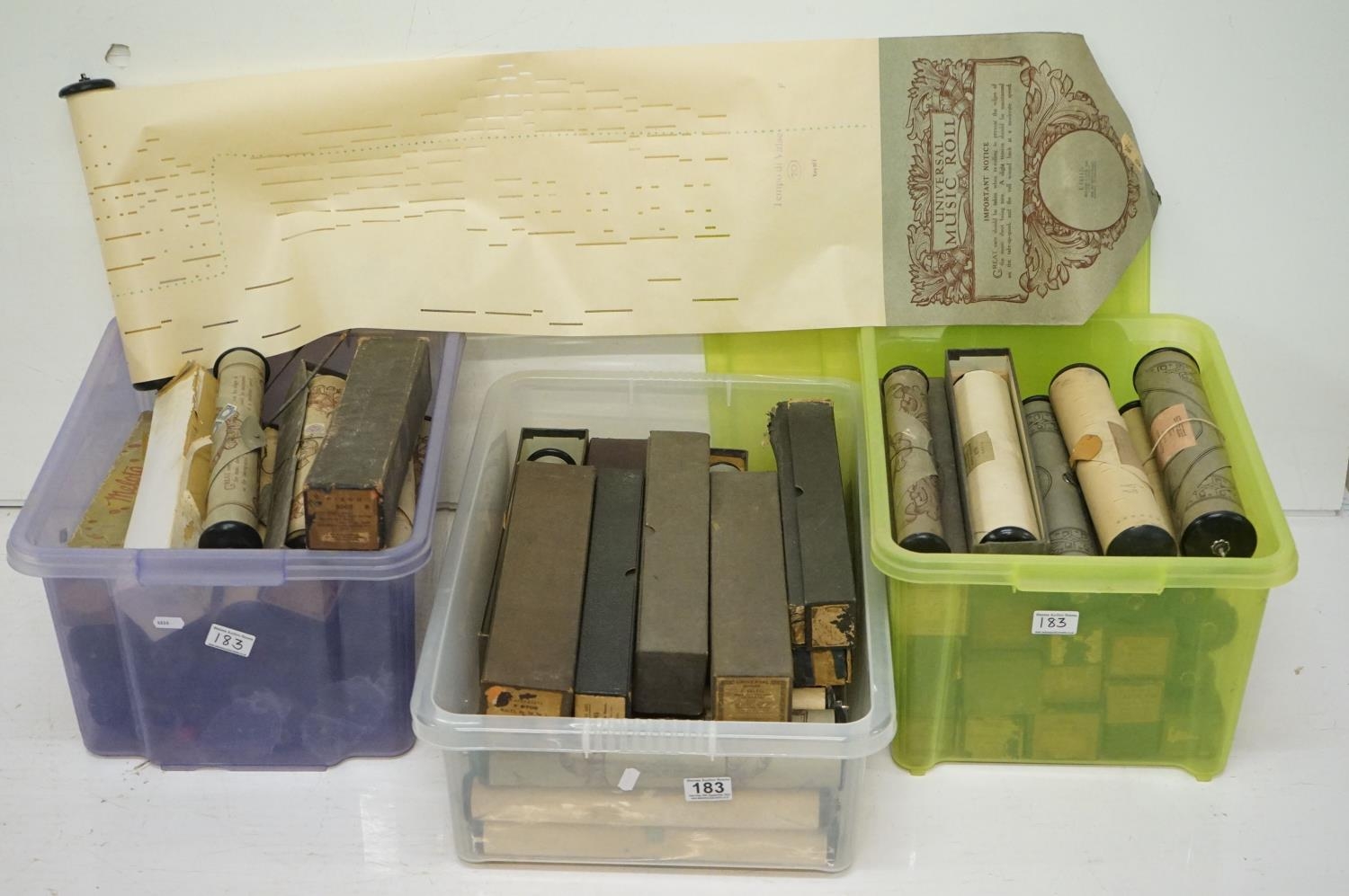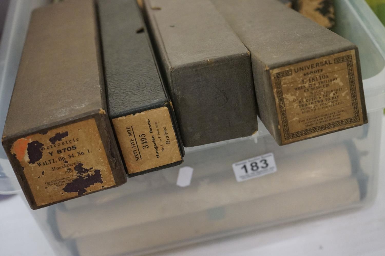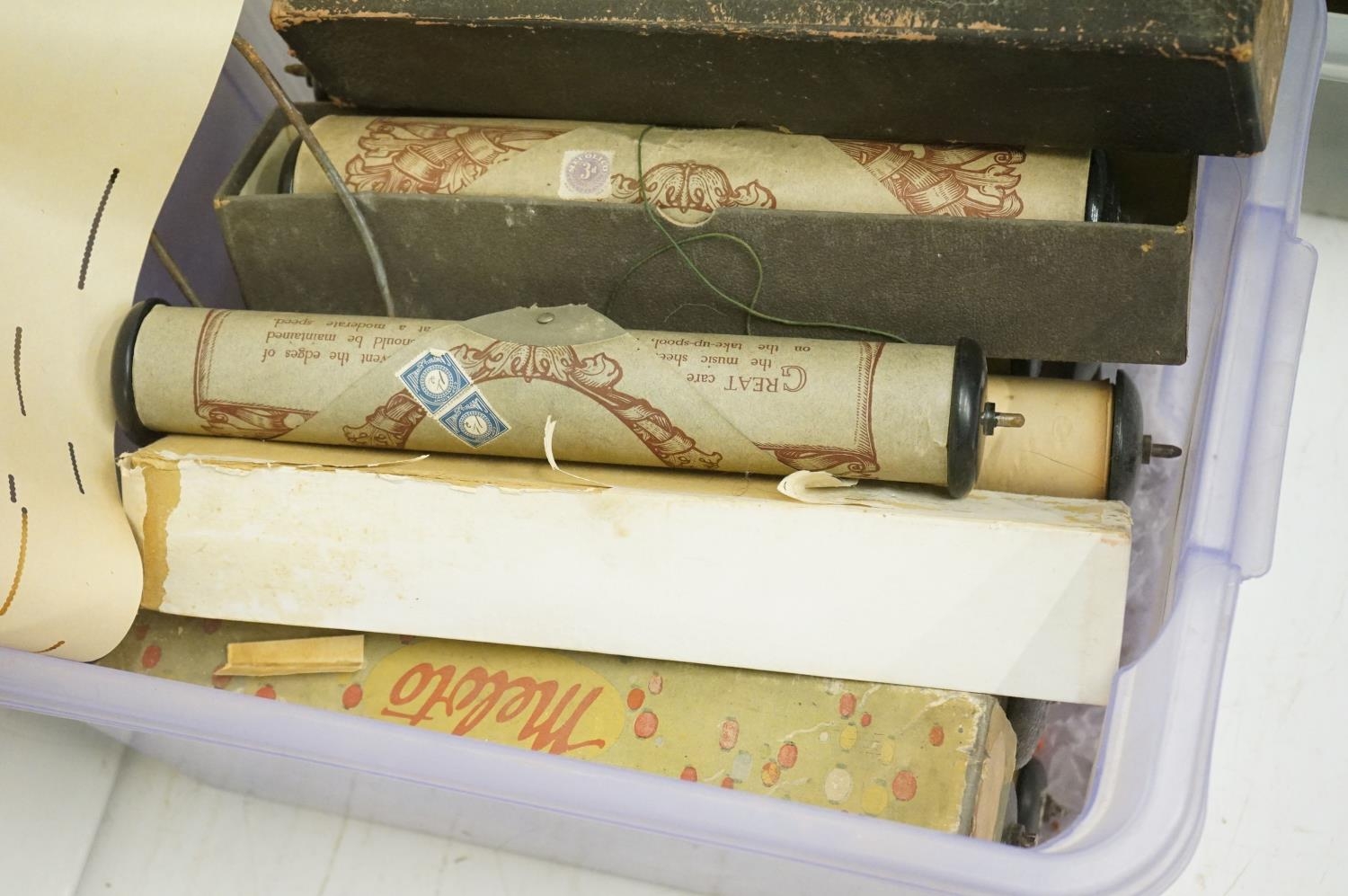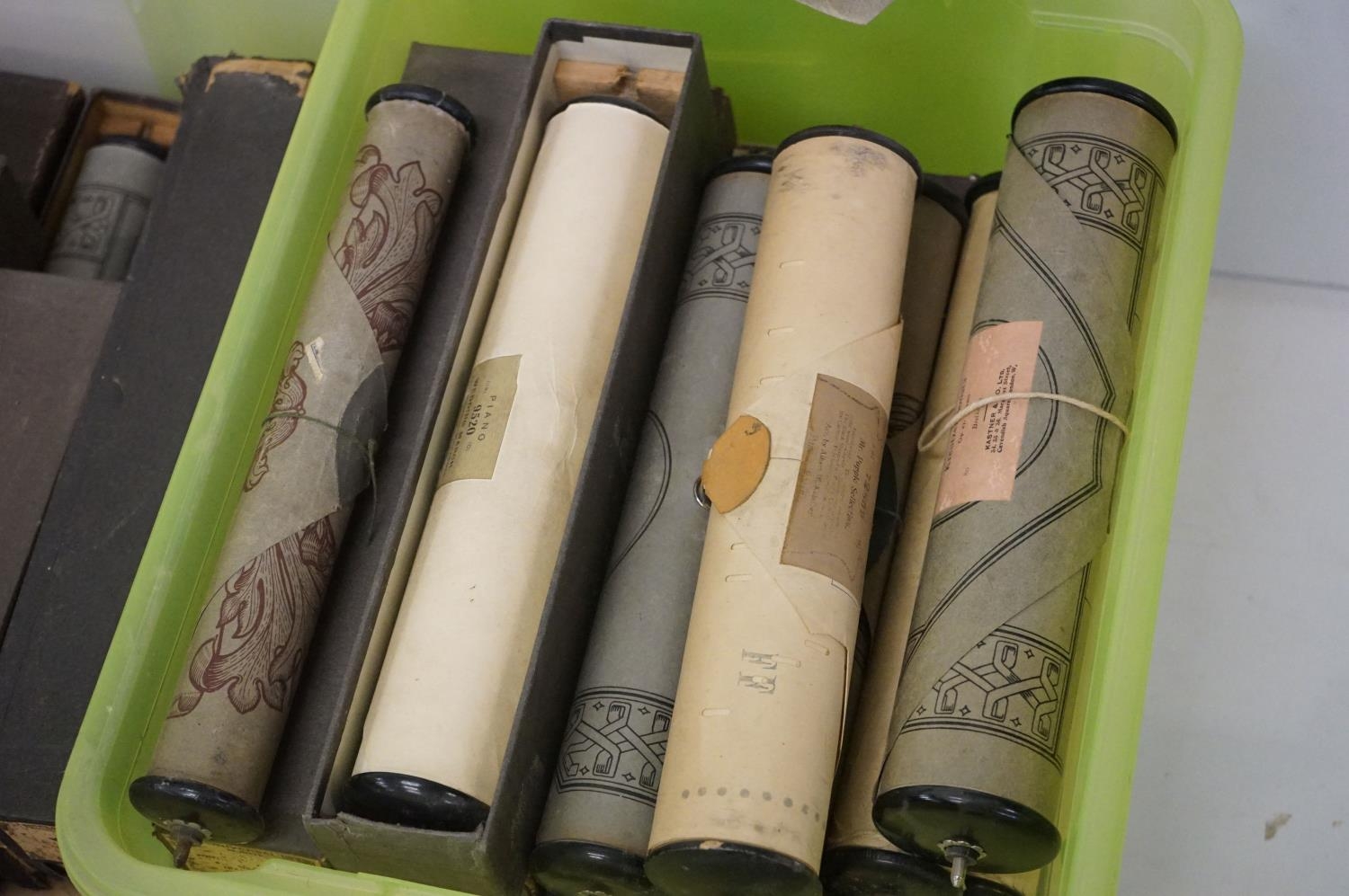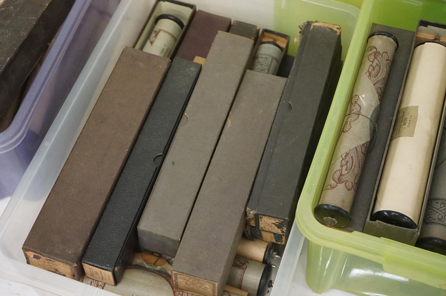 Large collection of vintage piano / pianola music rolls, featuring boxed examples (3 boxes)