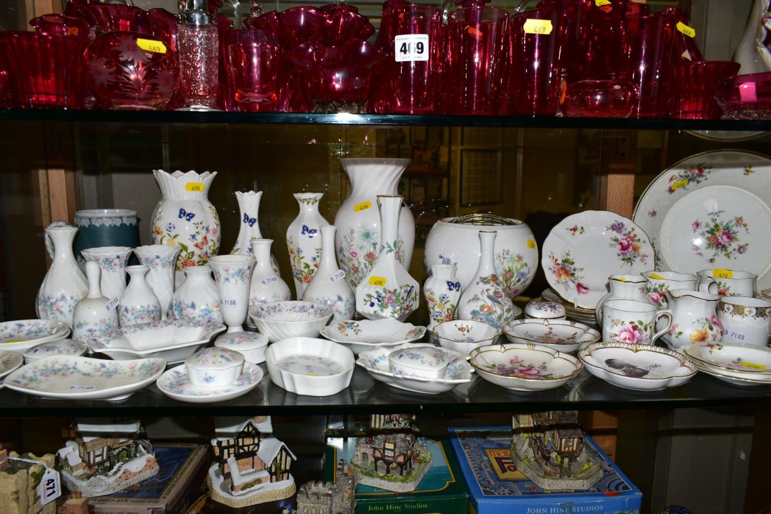 A GROUP OF TRINKETS, VASES, BOWLS etc, to include Abbeydale, Royal Crown Derby, Minton, Aynsley, Wedgwood (mostly 'Angela pattern) etc