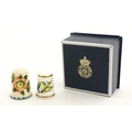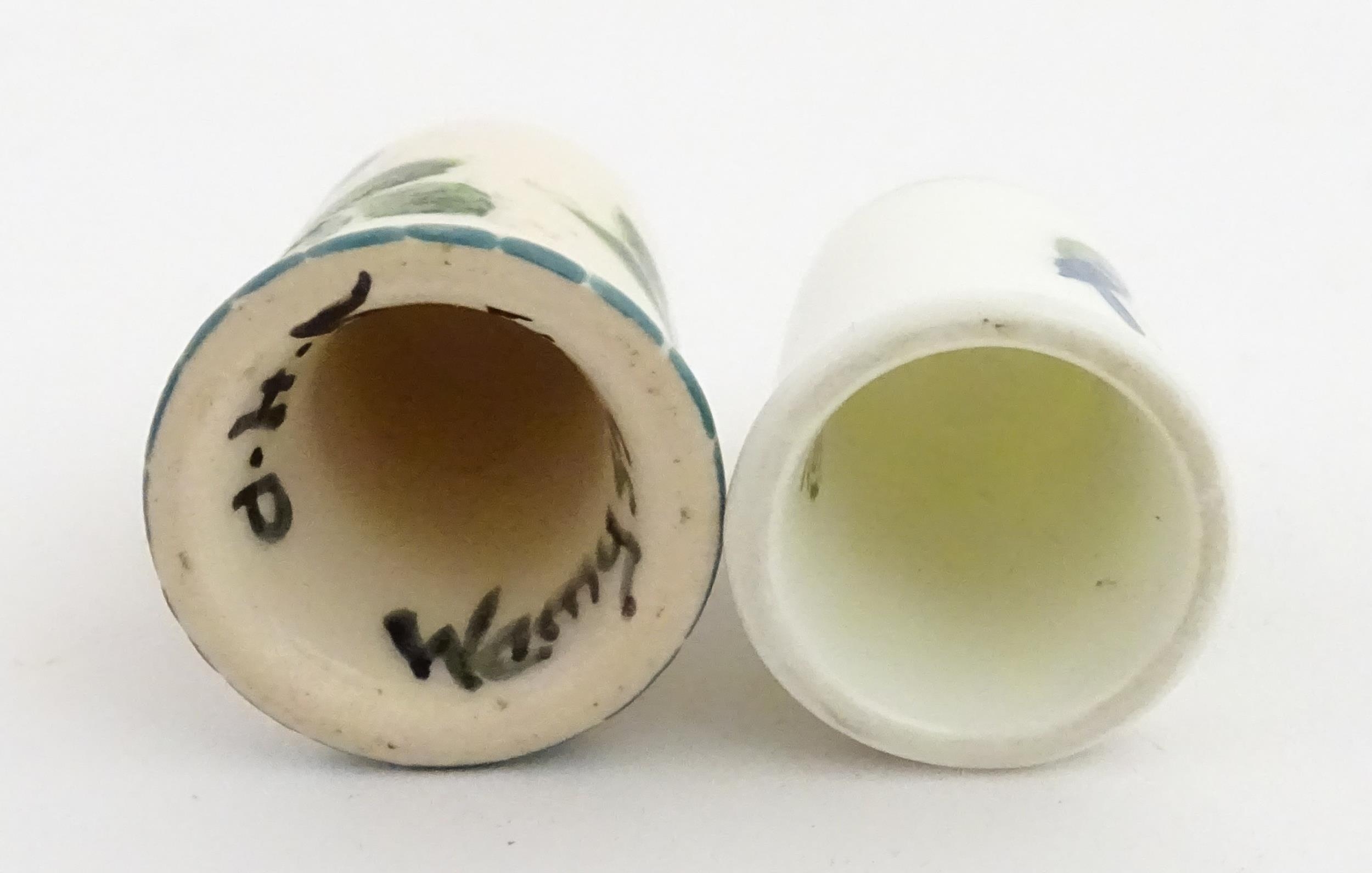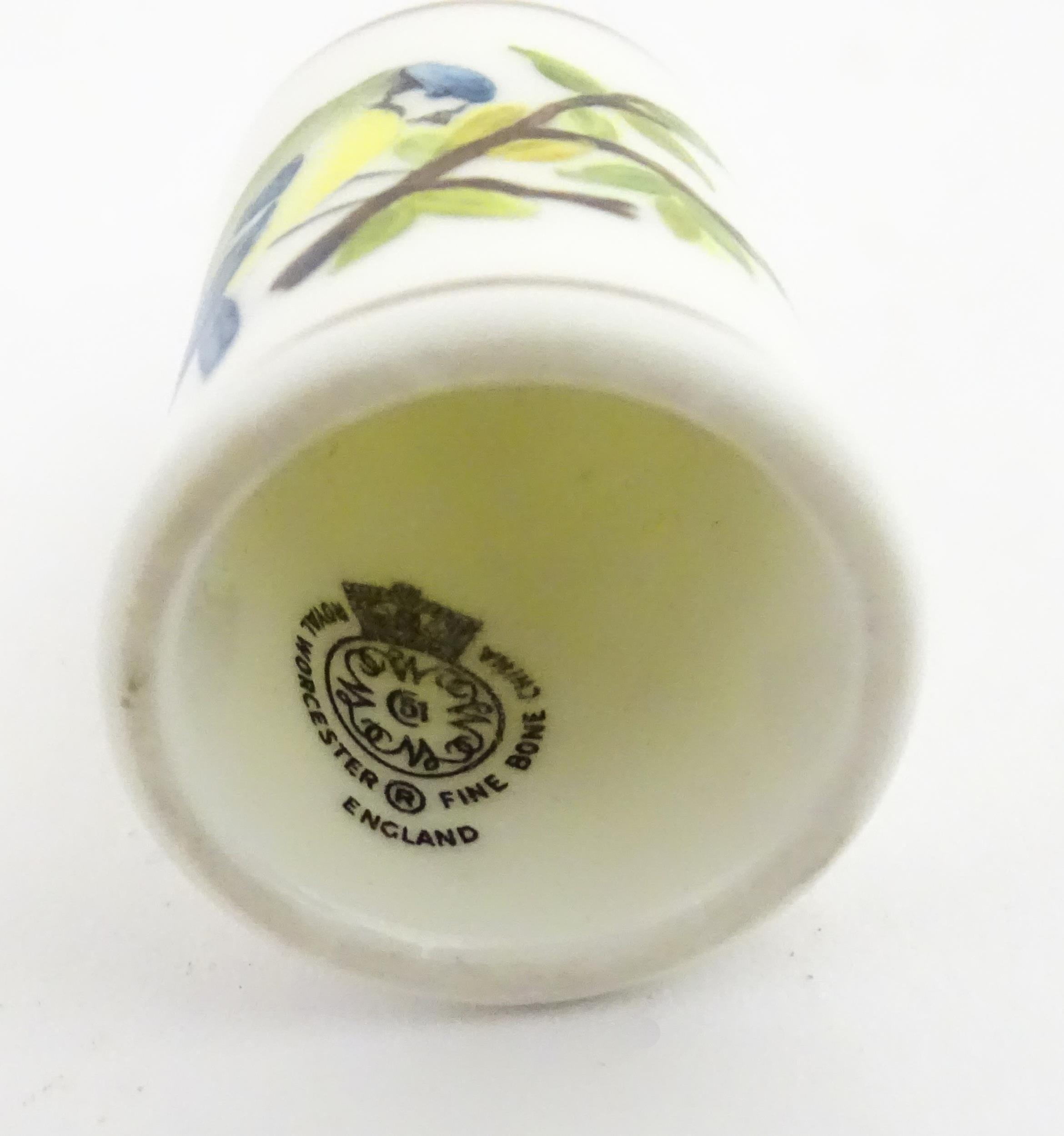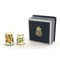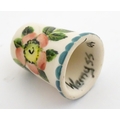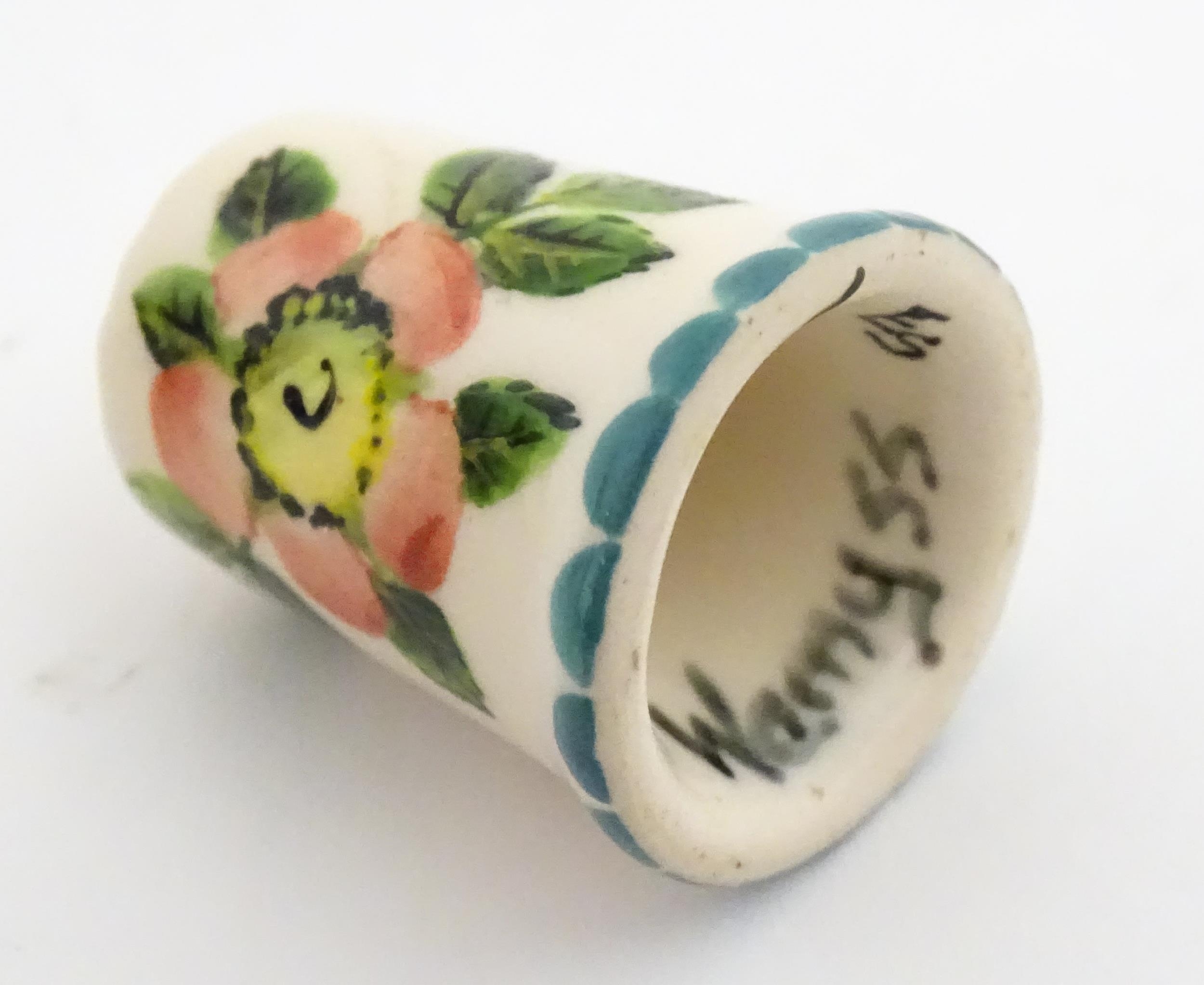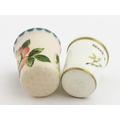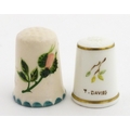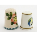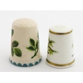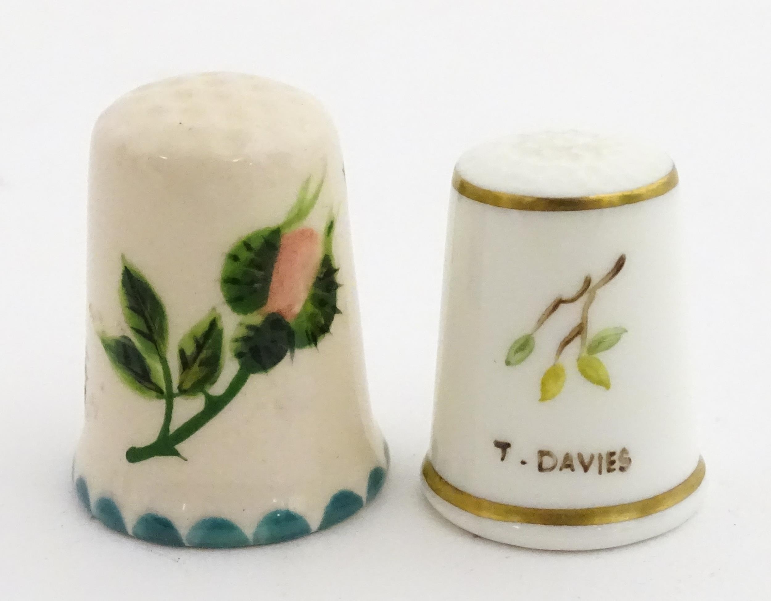 A Wemyss Ware thimble with hand painted flower detail. Together with a boxed Royal Worcester thimble with blue tit detail (2)