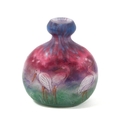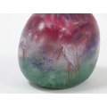 A Muller Fréres Luneville Cameo Glass Vase, of compressed onion shaped form, decorated in tones of green, purple, blue and brown, signed, 10cm high.
