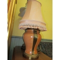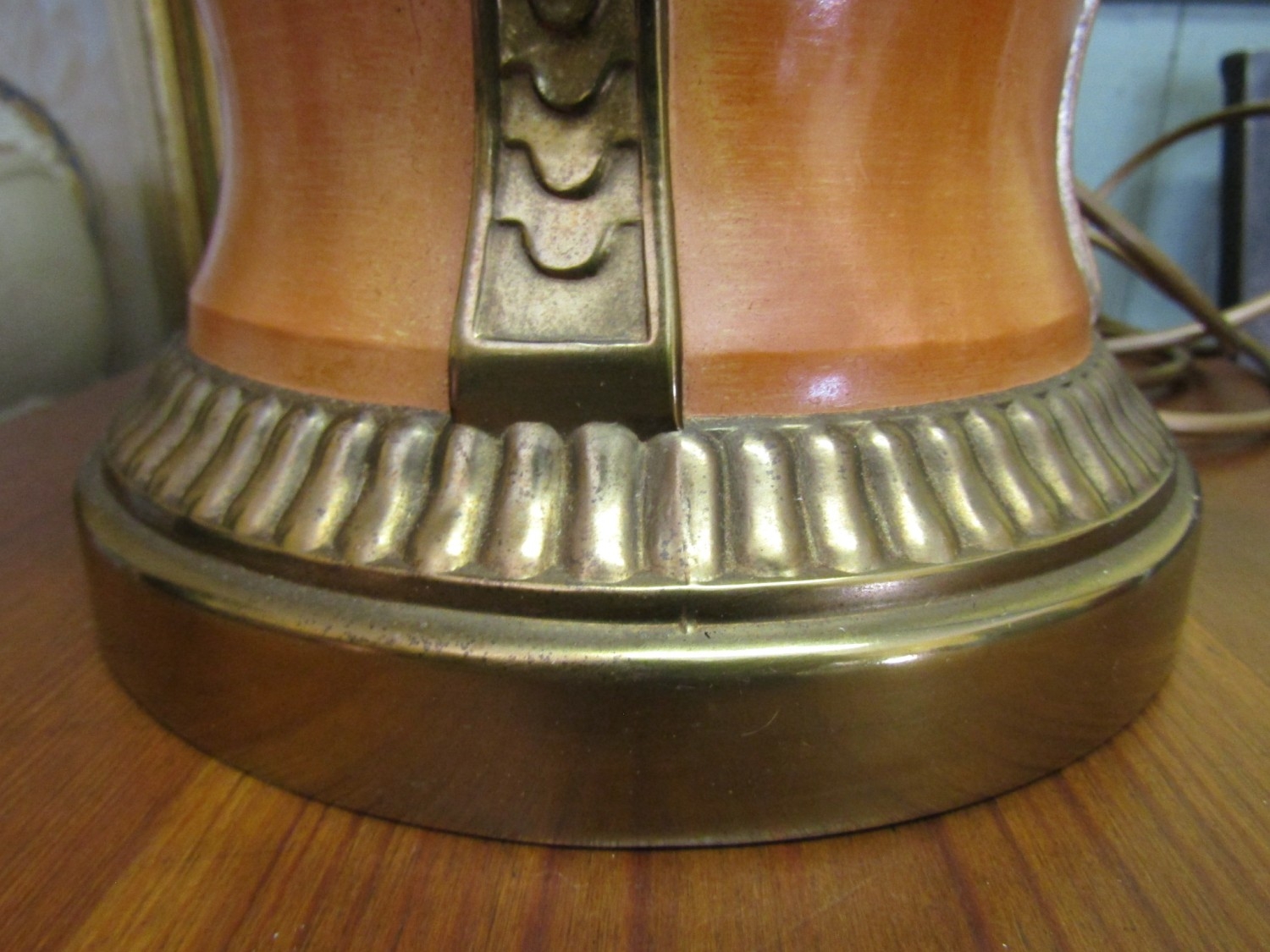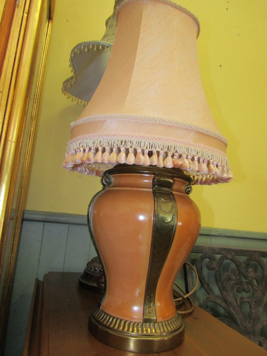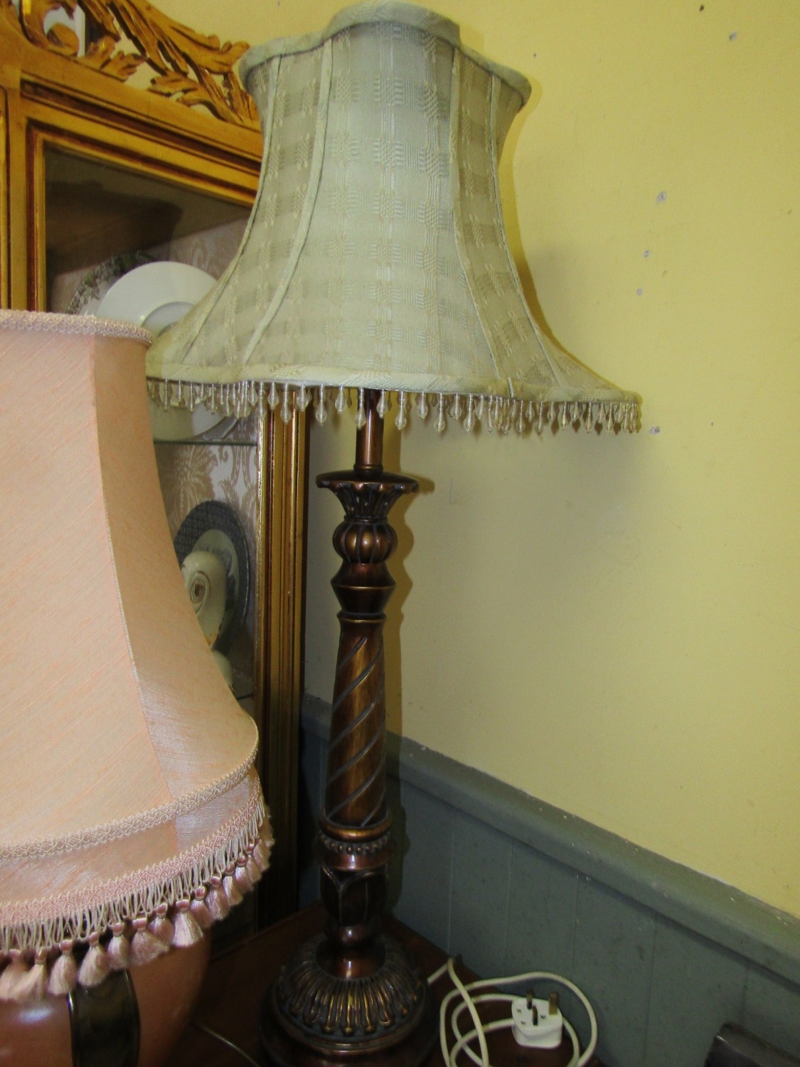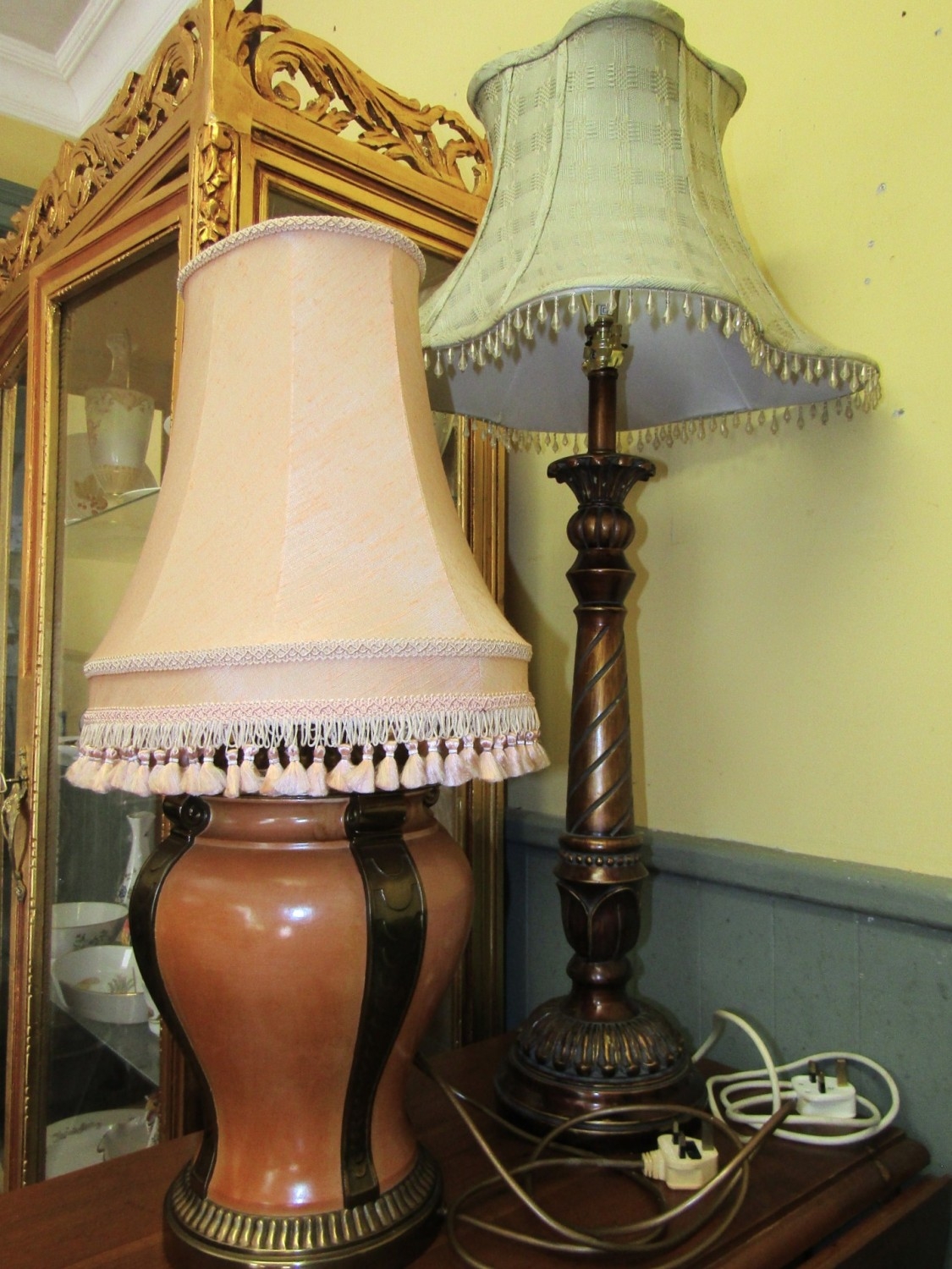 Two Table Lamps with Pegoda Formed Shades each Electrified Working Order Tallest Approximately 32 Inches High