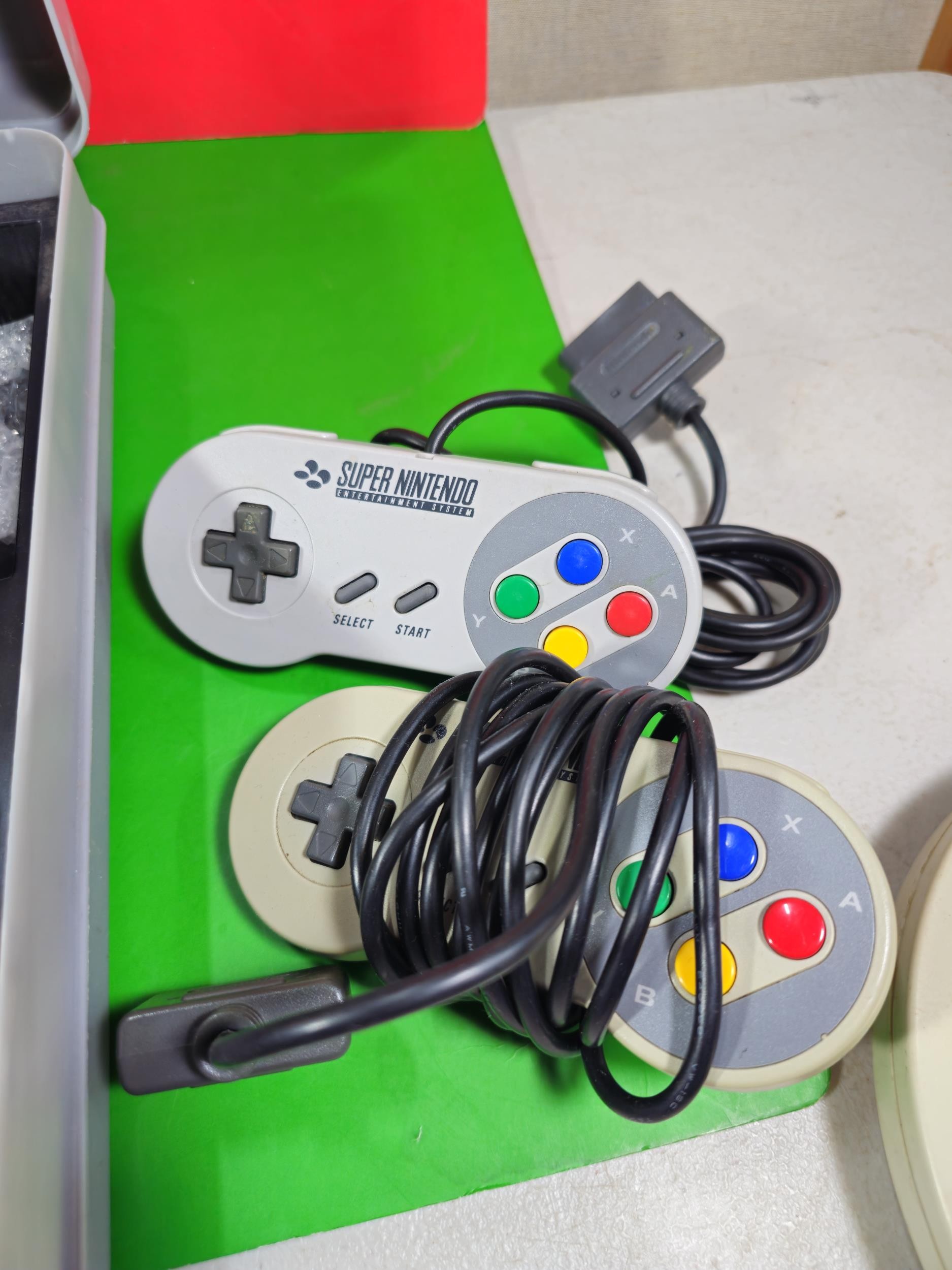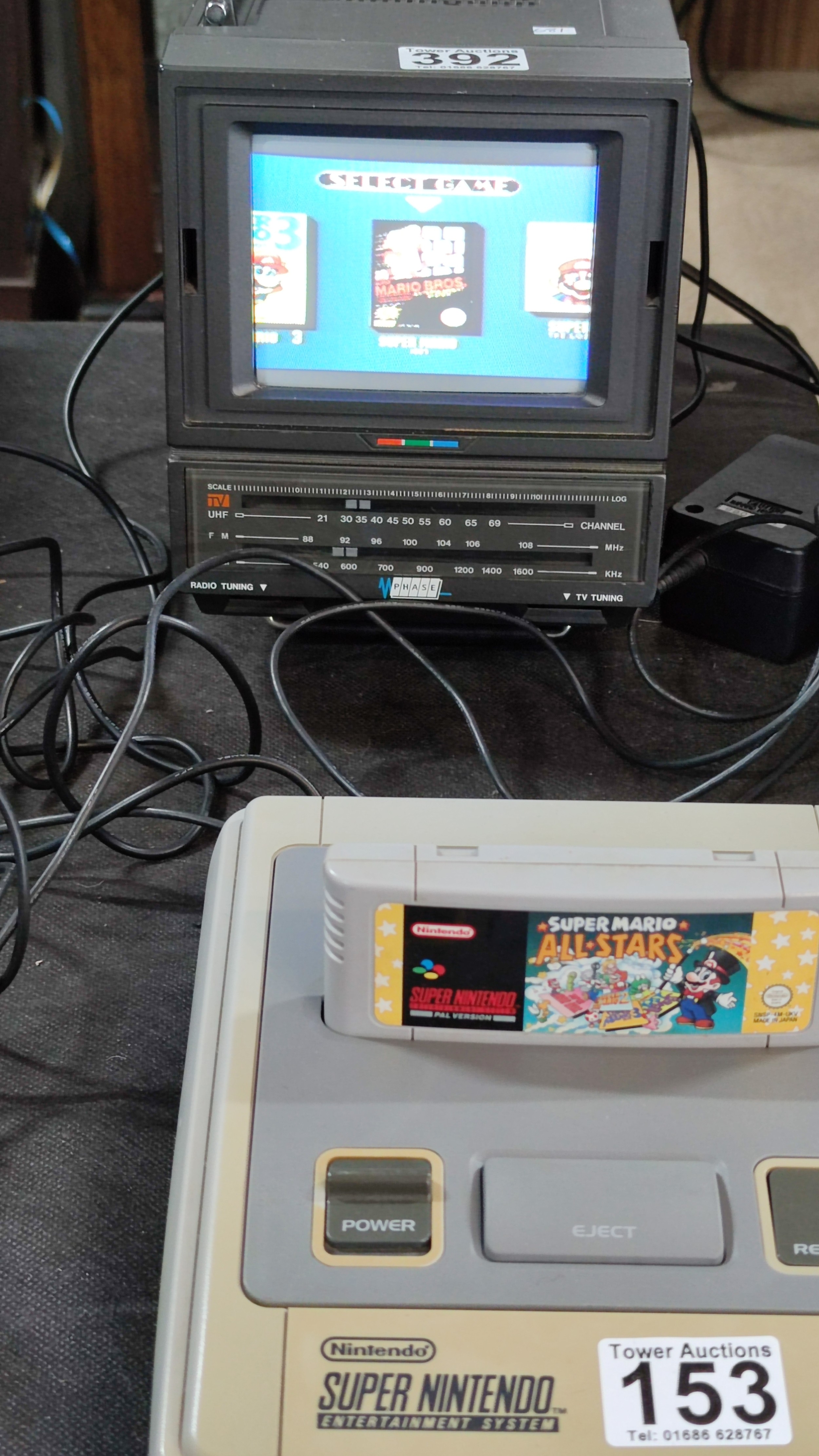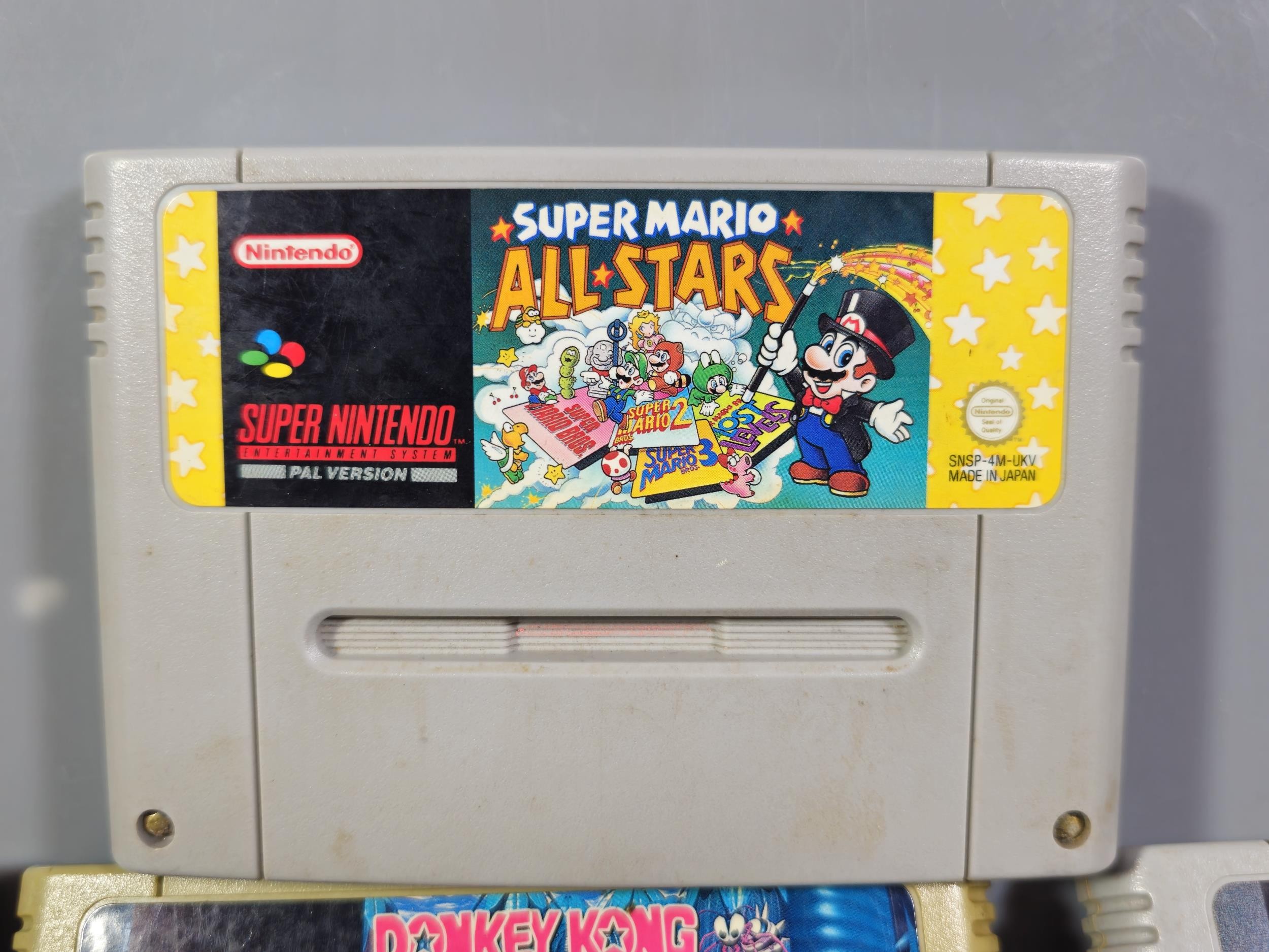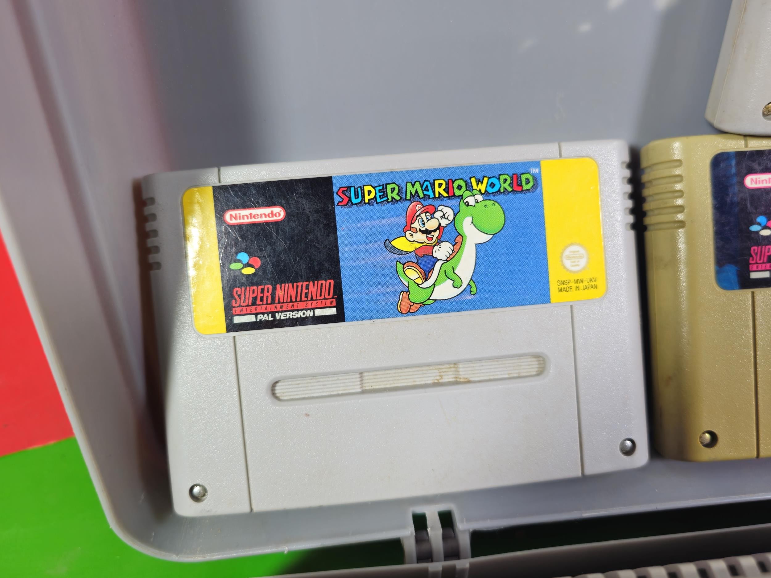 A cased Super Nintendo Entertainment System in a rare Original Nintendo case, model number SNSP-001A (UKV) comes with power cable, controllers and leads along with a collection of 4x games to include Super Mario All Stars, Super Mario World, Starwing and Donkey Kong, In full working order, TV not included in this lot.