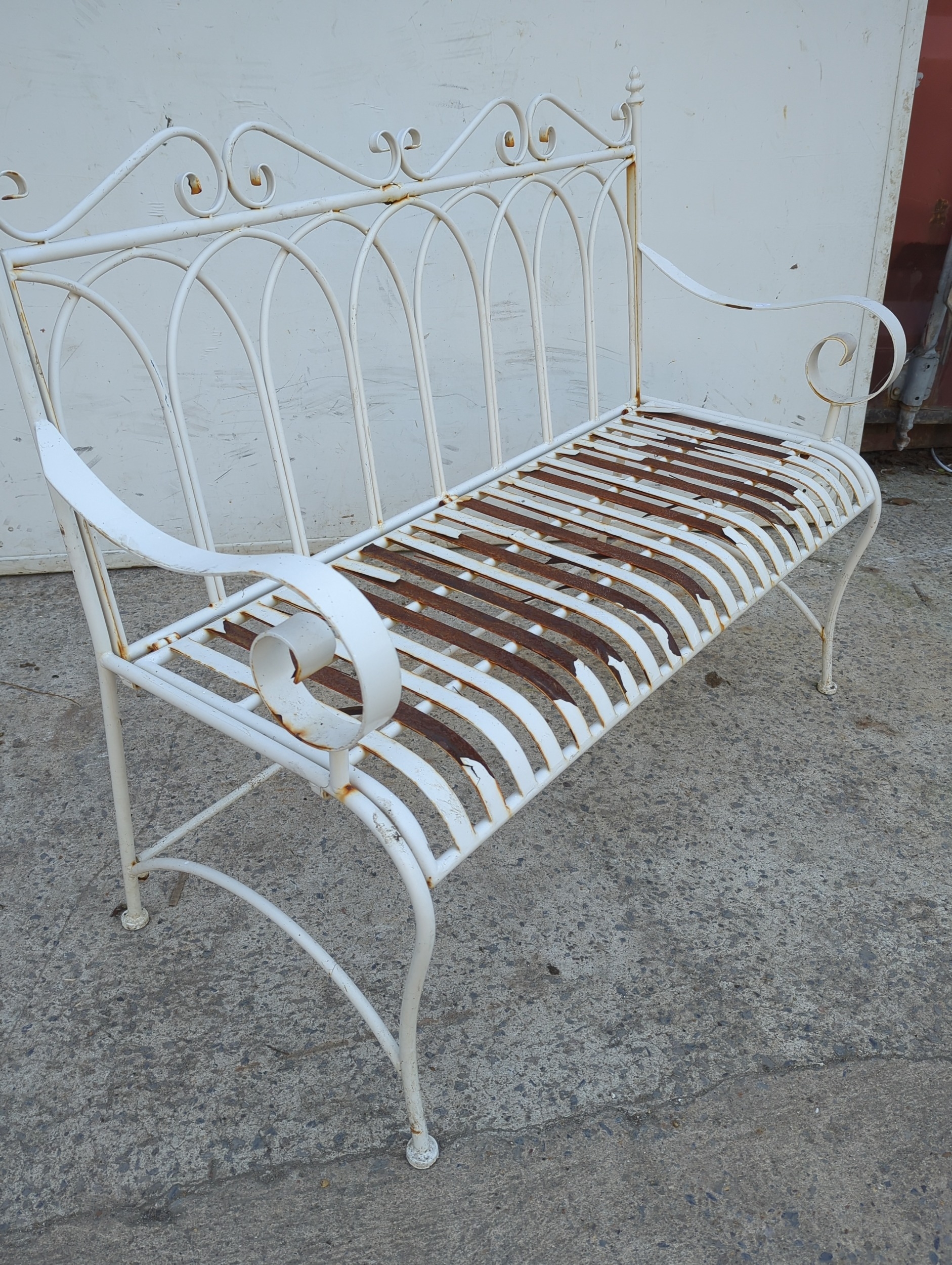 White Metal Outdoor Folding Garden Bench