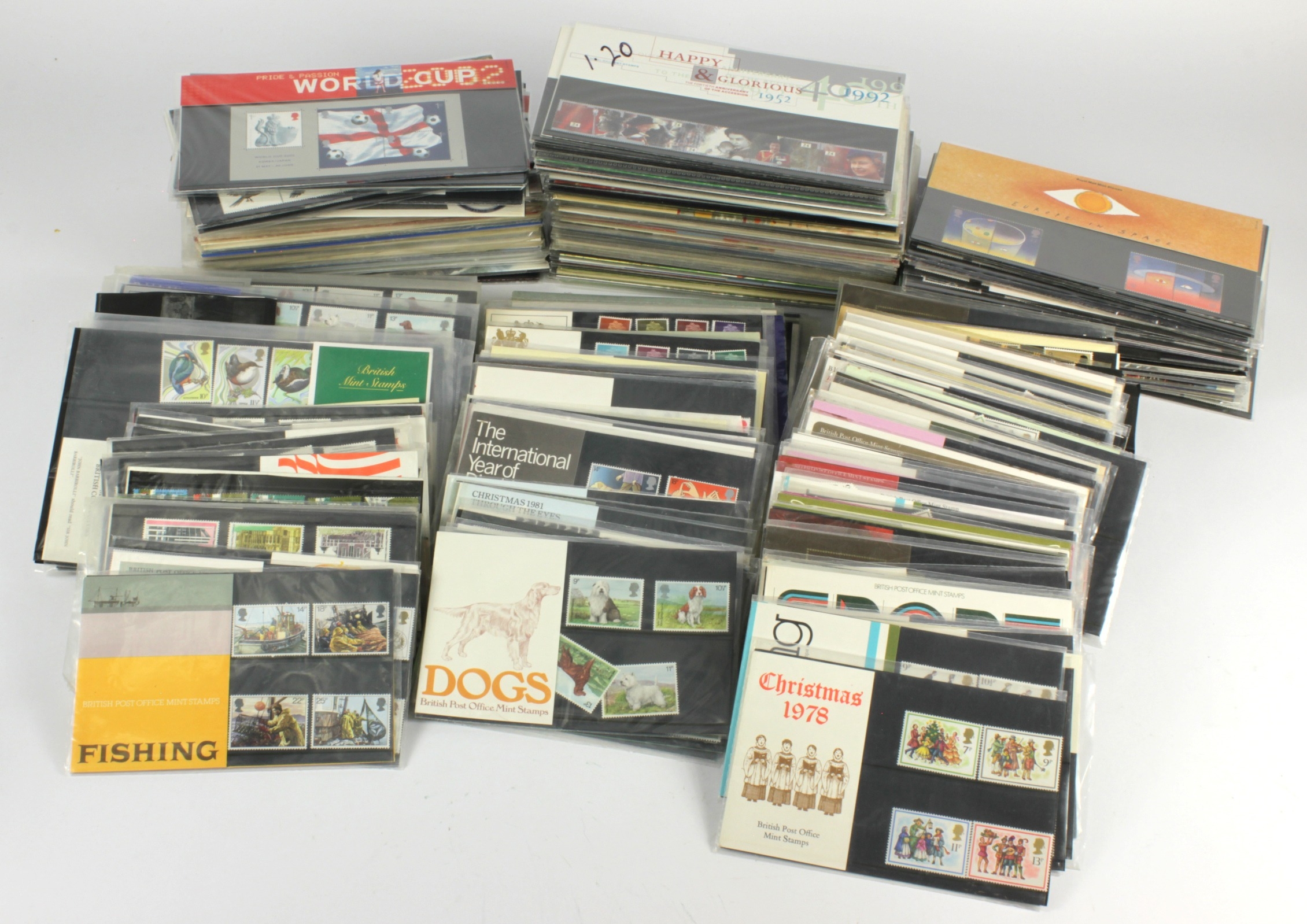 GB - Presentation Packs in crate, including approx 200 long format and about 70 short format. Several year / collector packs from late 1970's early 1980's (Qty)