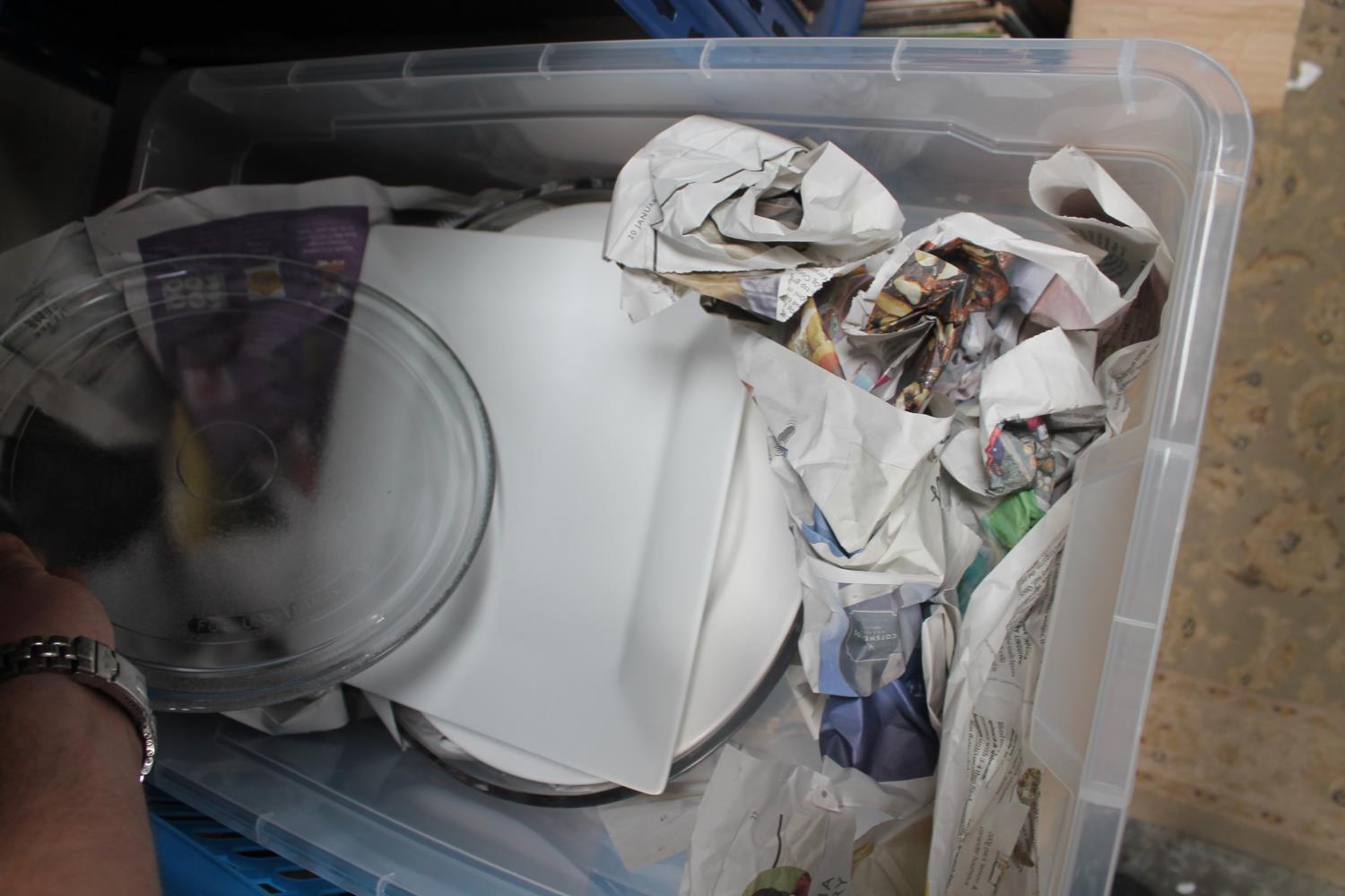 PLASTIC BOX WITH SERVING DISHES & MICROWAVE PLATE