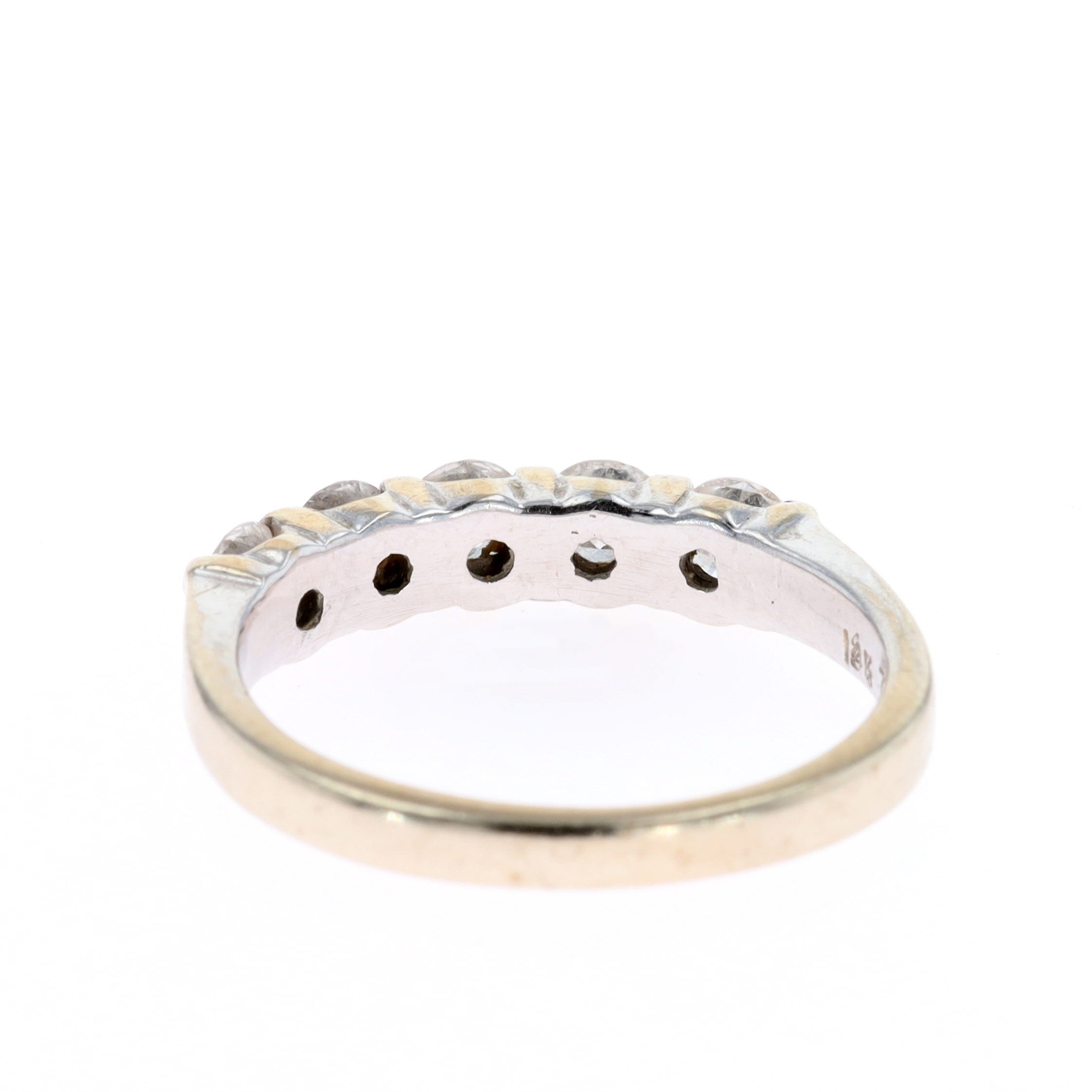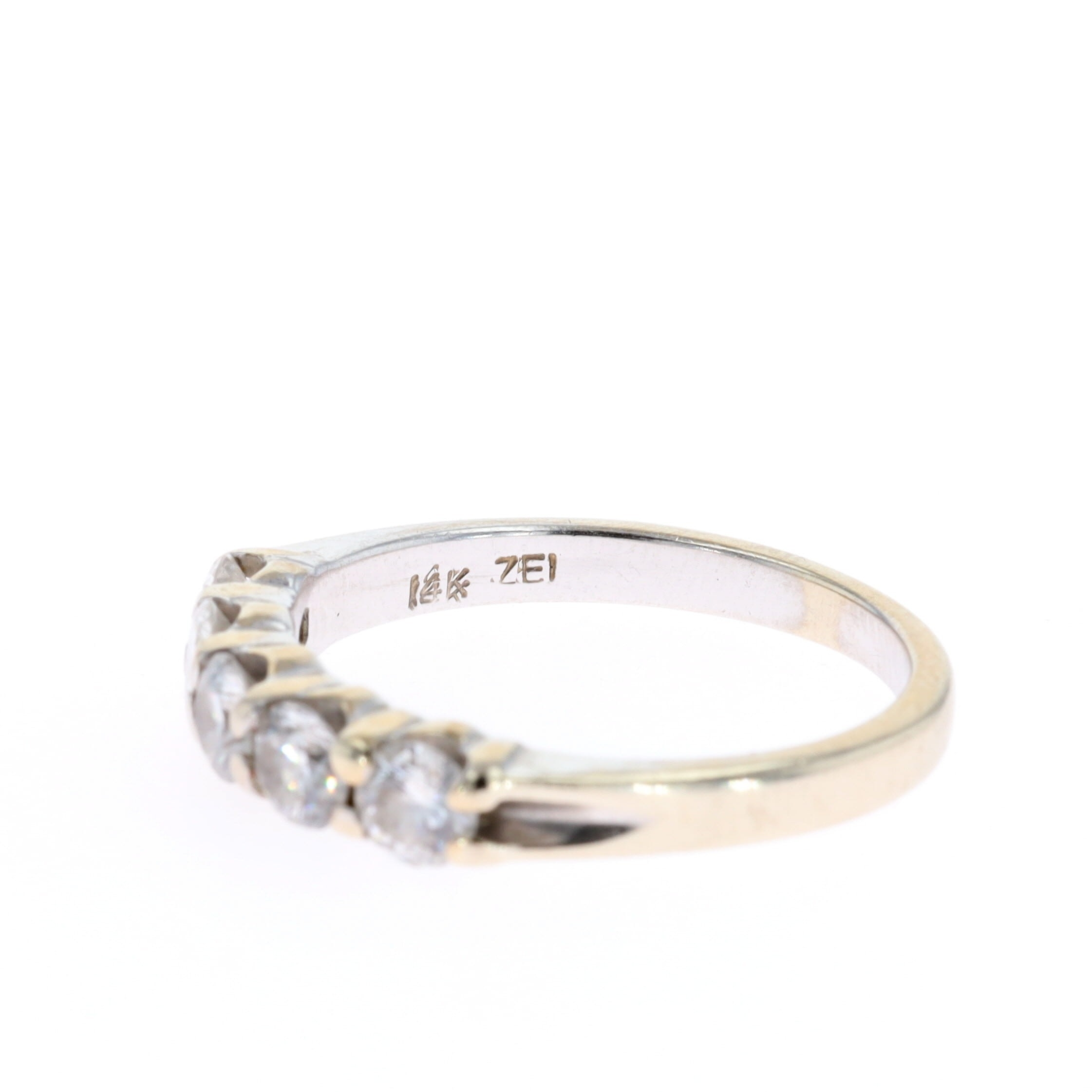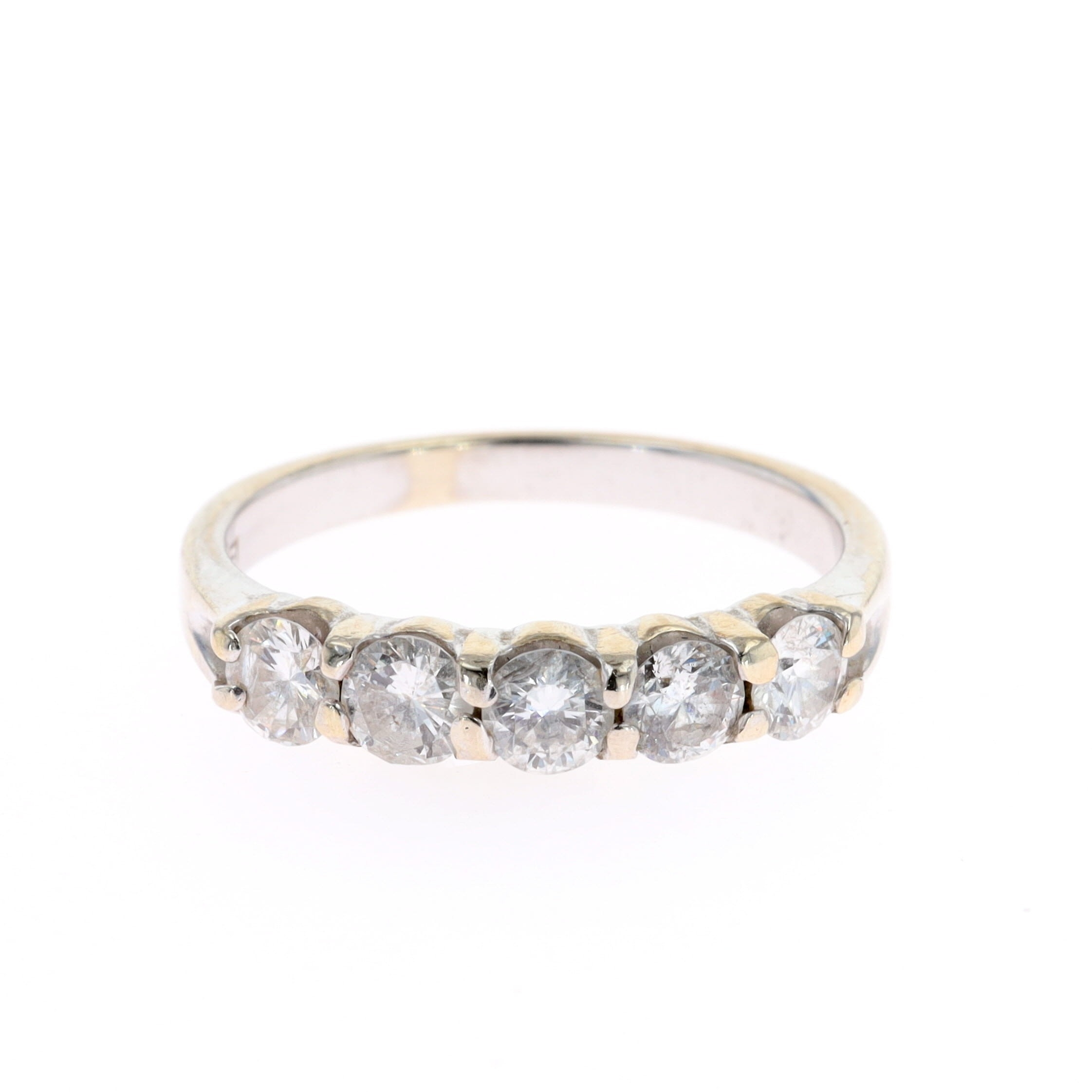 Diamond 14ct White Gold Five Stone Ring. This piece is stamped 14k on the inner band. The estimated total diamond weight is 0.75ct. The ring is a UK size O, weighs in total 3.3g.