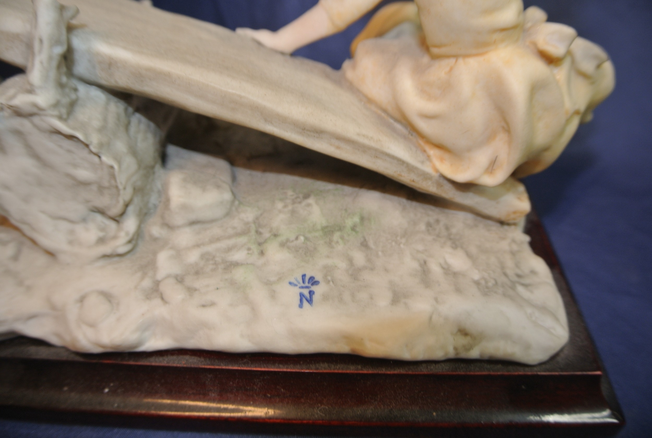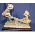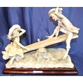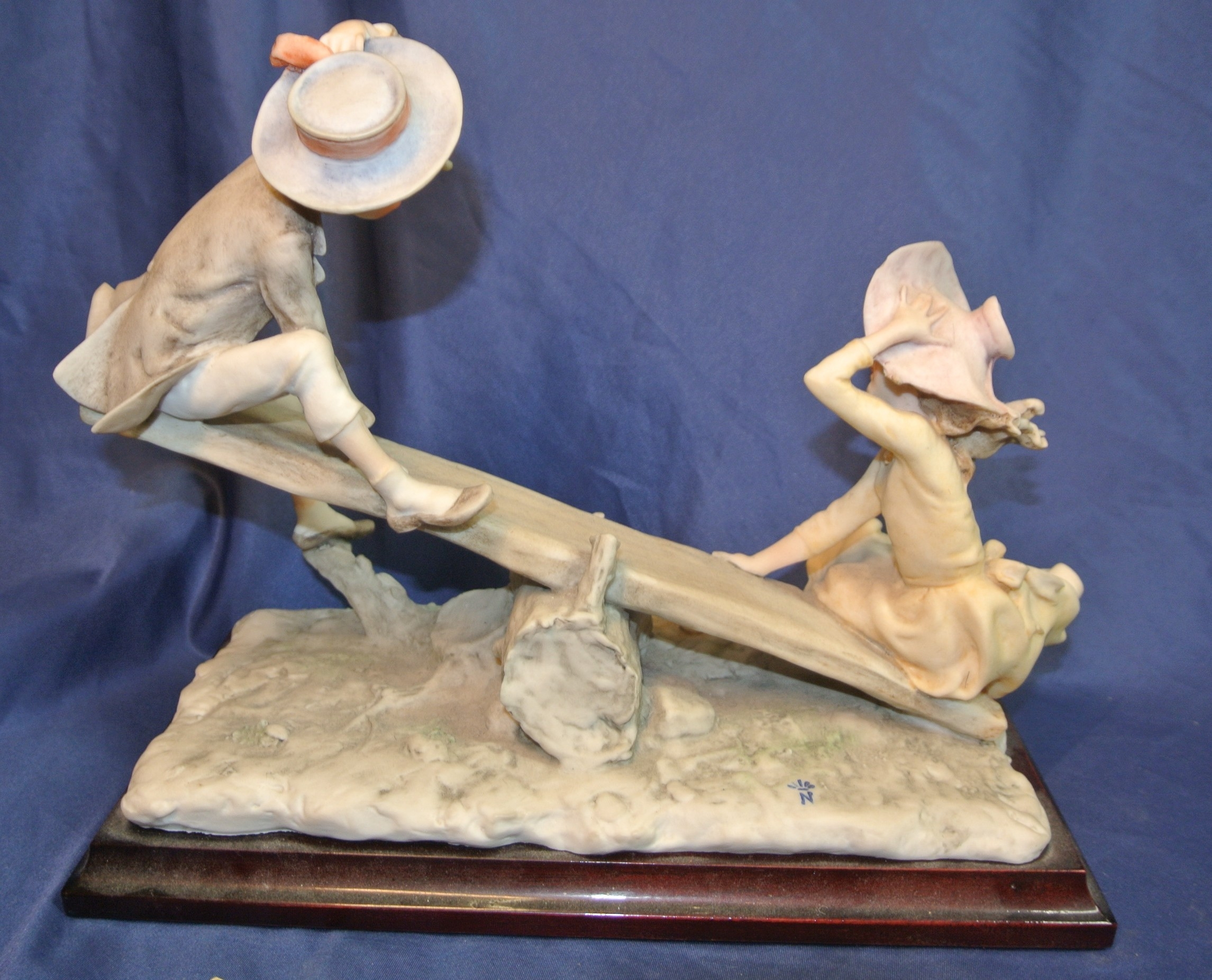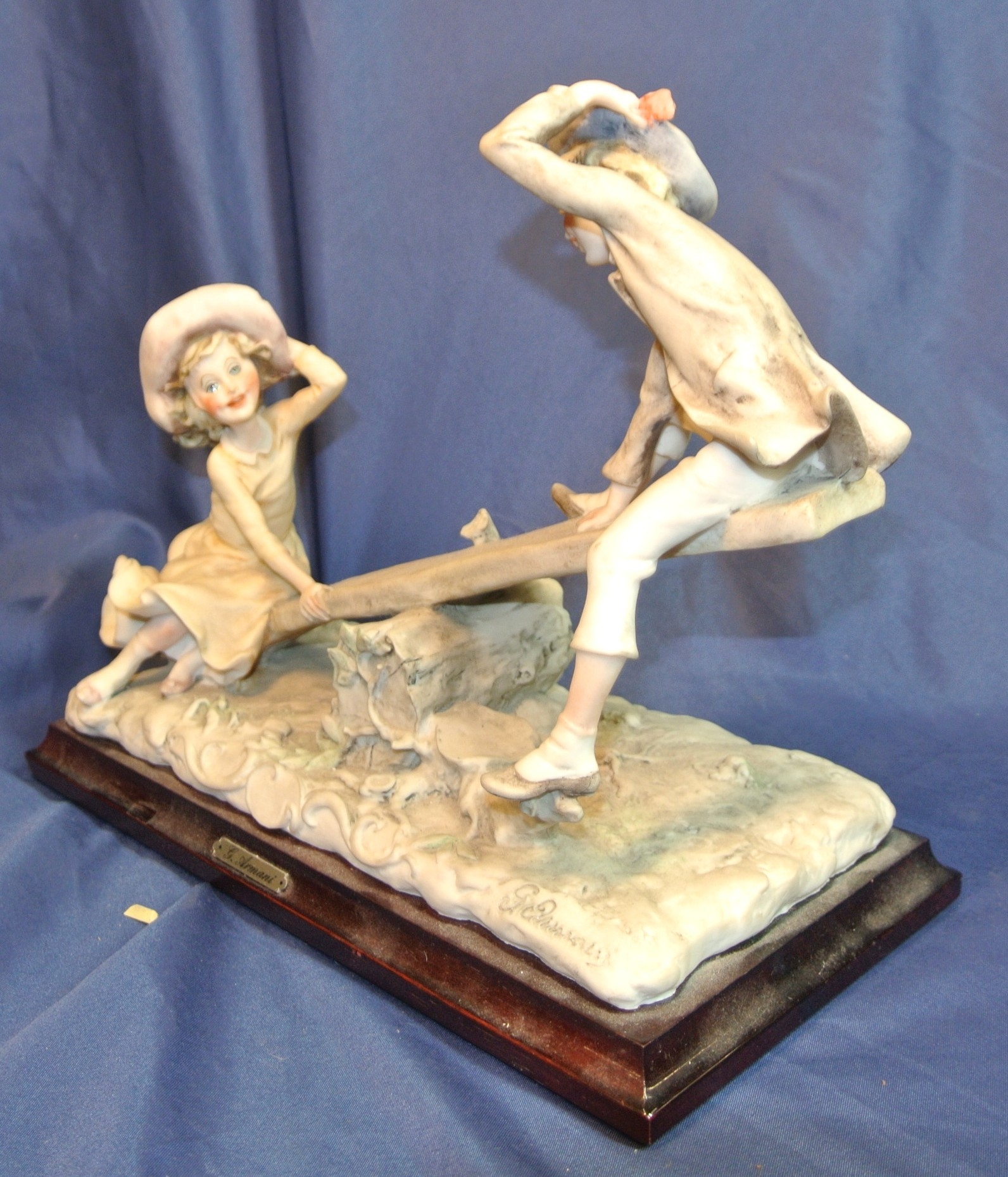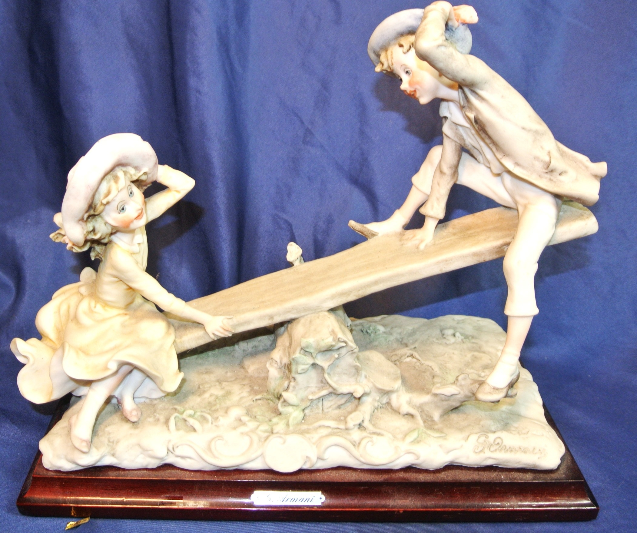 Ornate Capodimonte group 'See-saw', with ornate foliate decoration