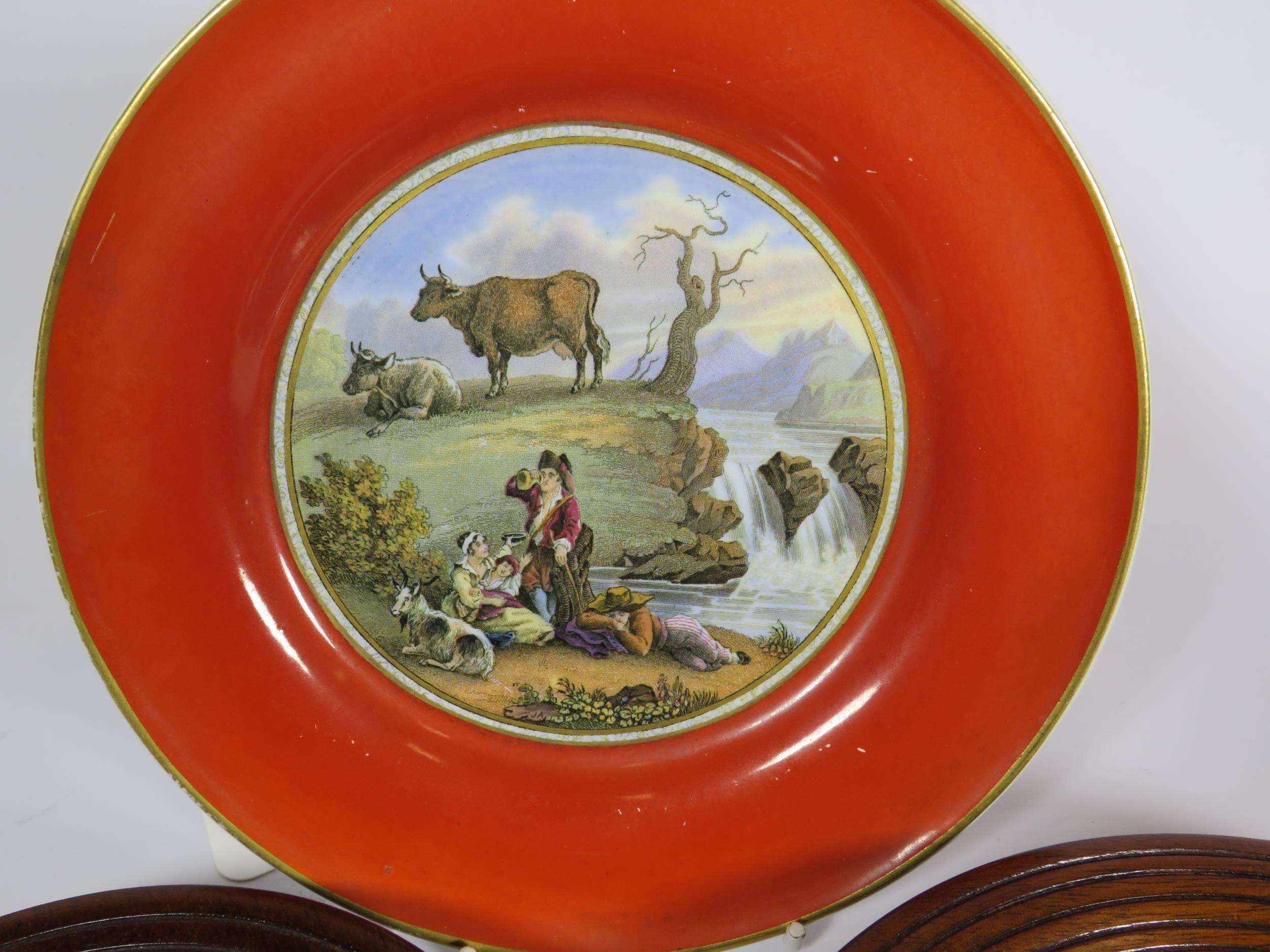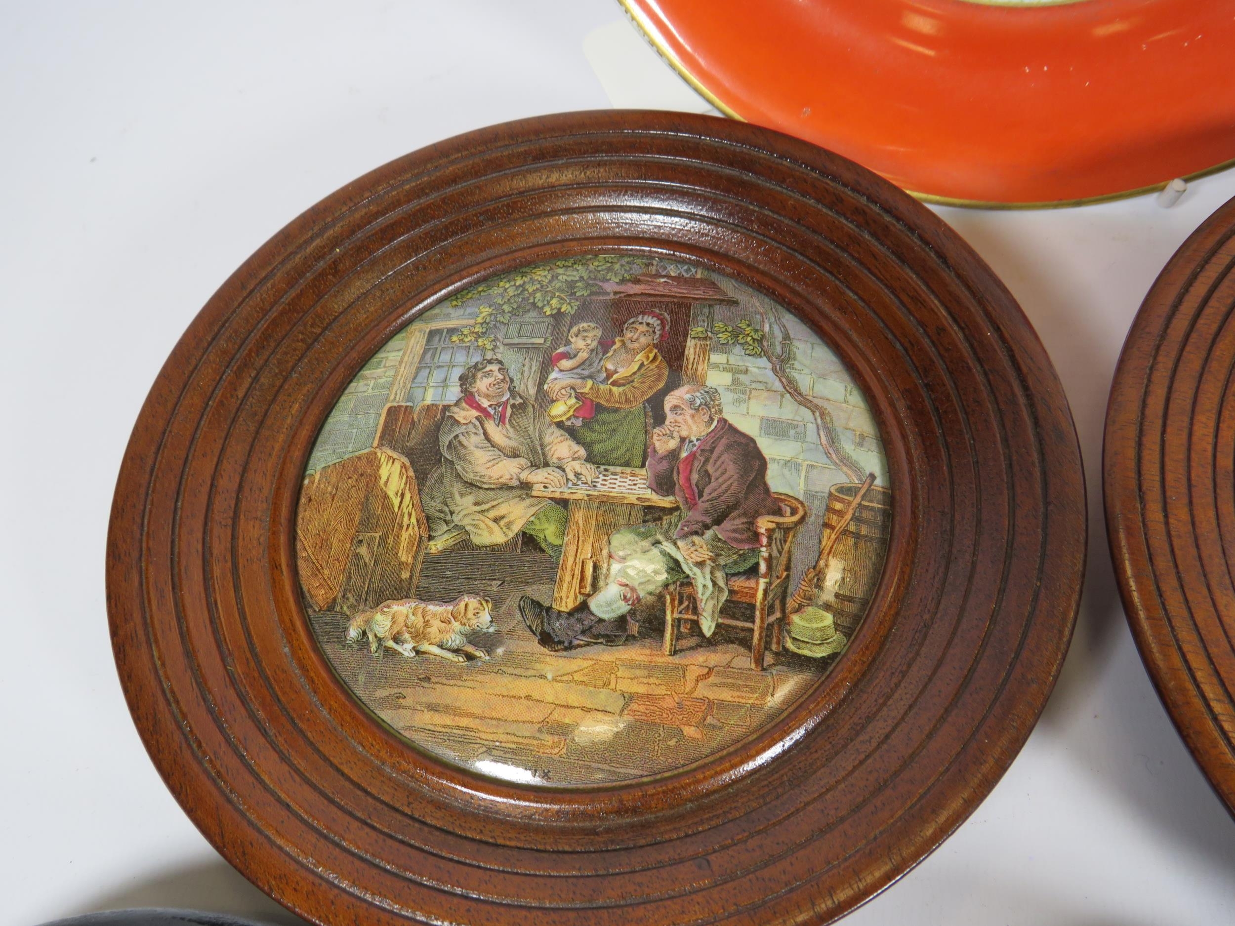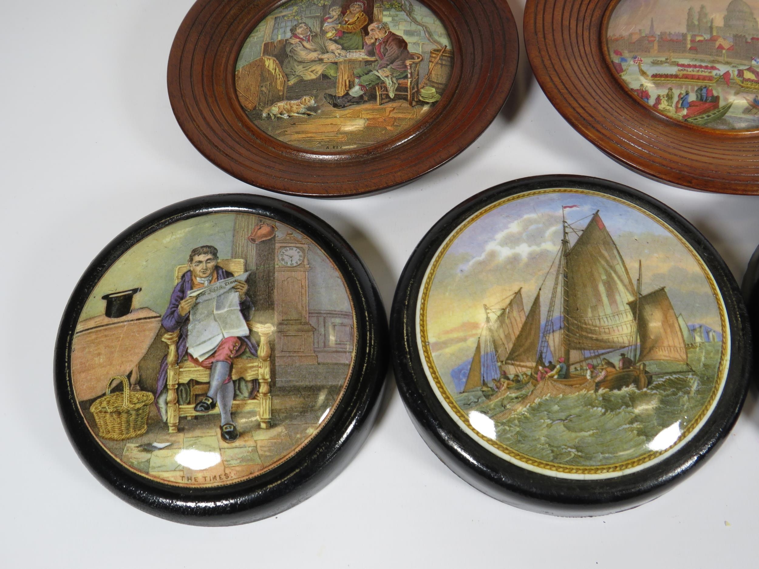 5 Framed Prattware Lids and a plate.