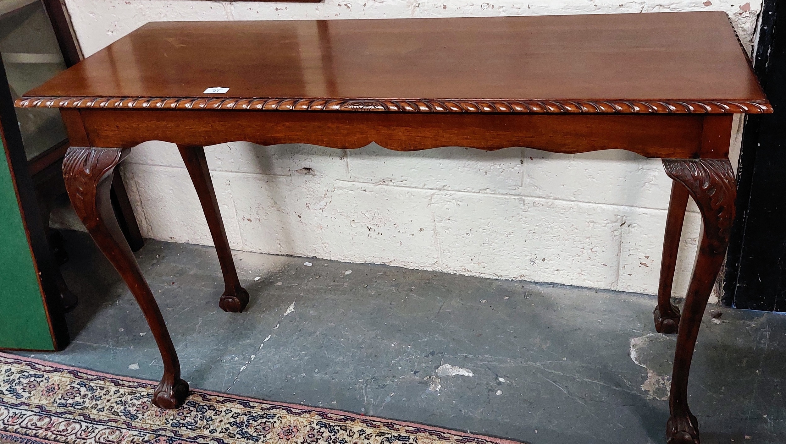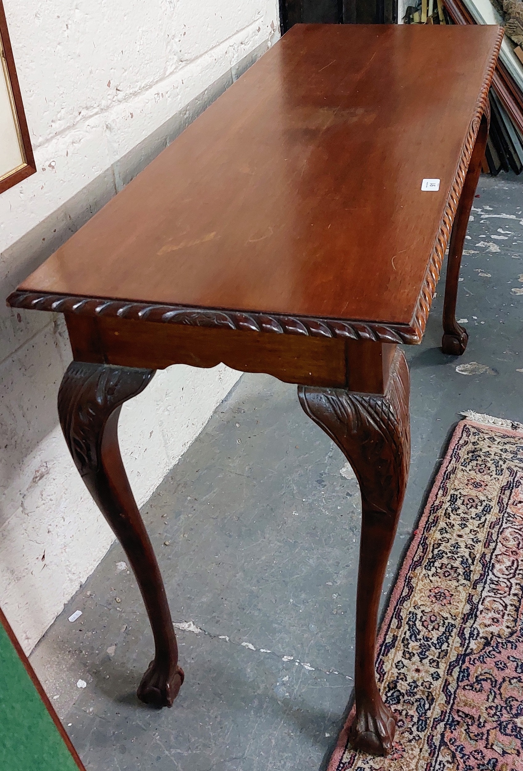 Mahogany Rope Edge Hall Table on Ball and Claw Feet - C. 122cm W x 45cm D x 77cm H