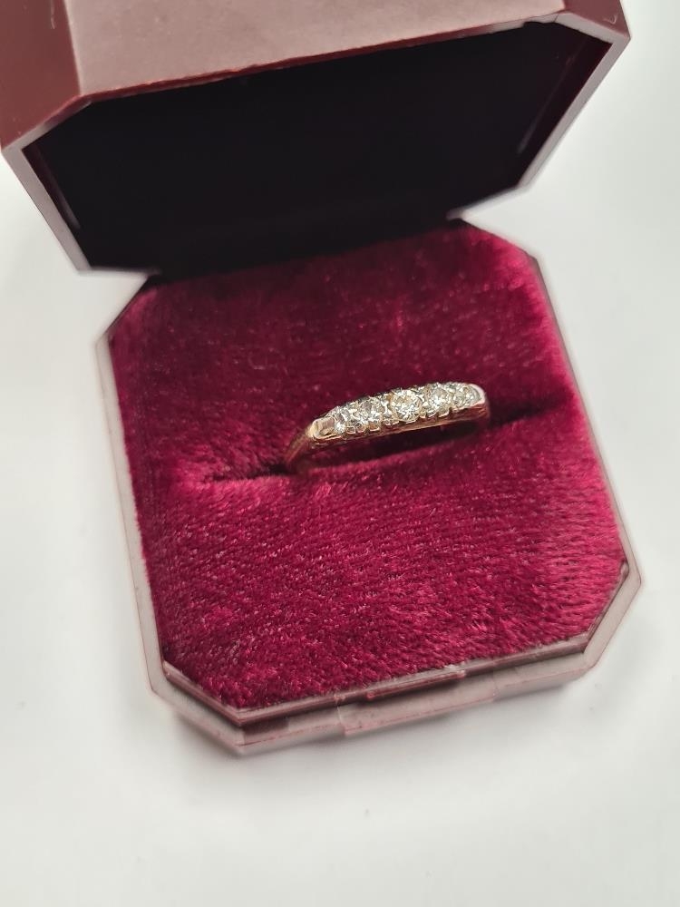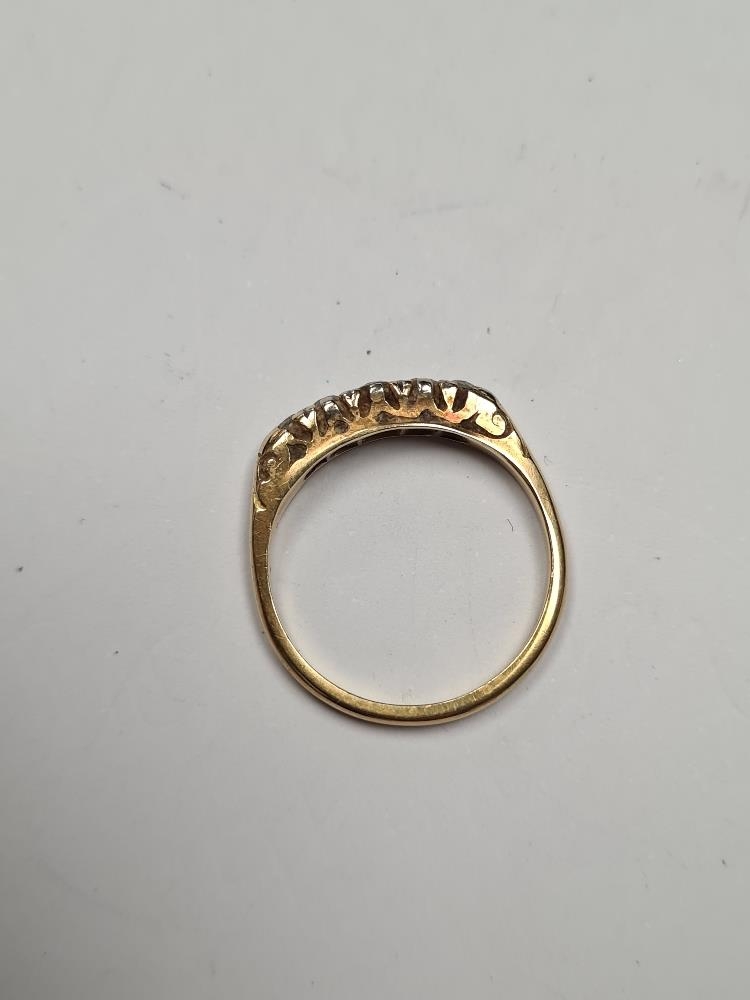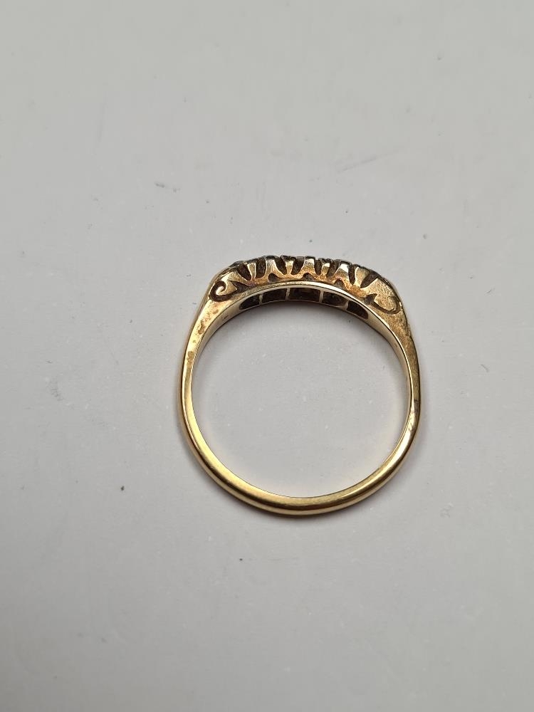 18ct yellow gold diamond ring set 5 graduating diamonds, size P, marked 18ct 2.92g