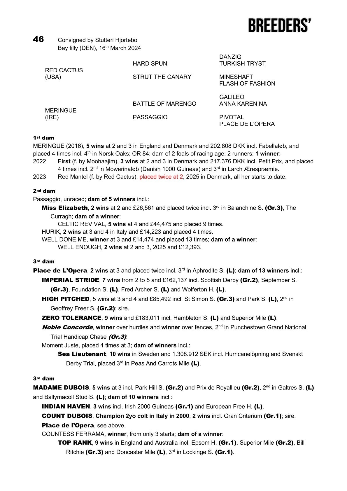 NN, bay filly (DEN) Red Cactus - Meringue (Battle Of Marengo)