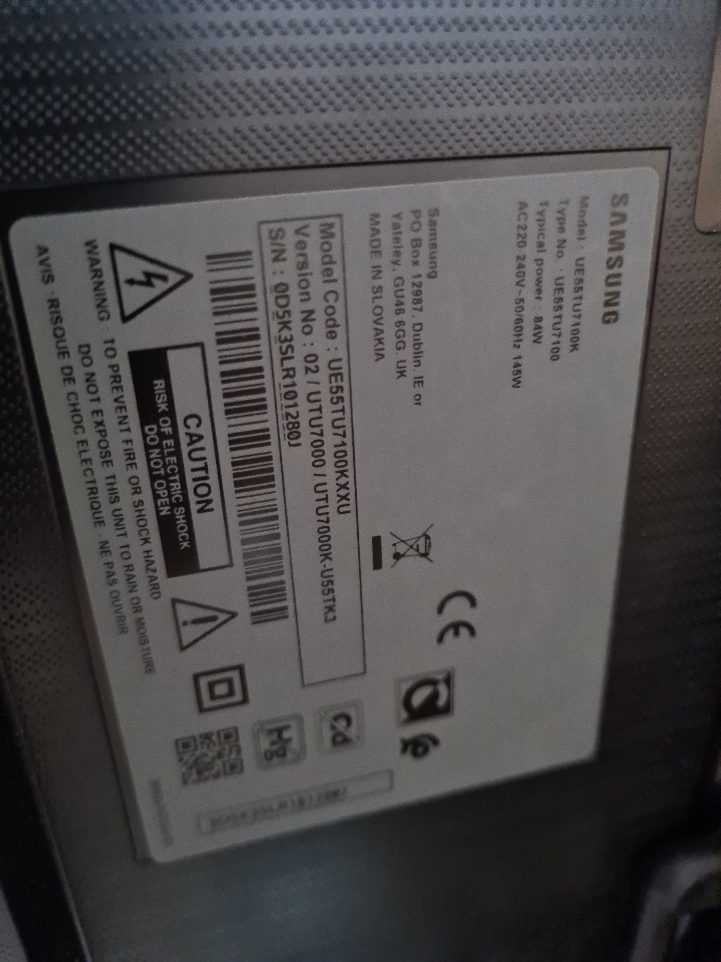 Star Lot : A Samsung 55" flat-screen television, with matching Samsung remote control, in good order. Model UE55TU7100KXXU