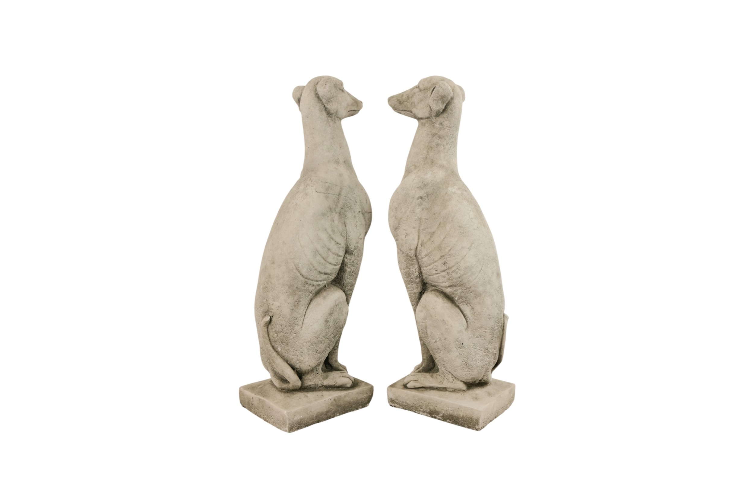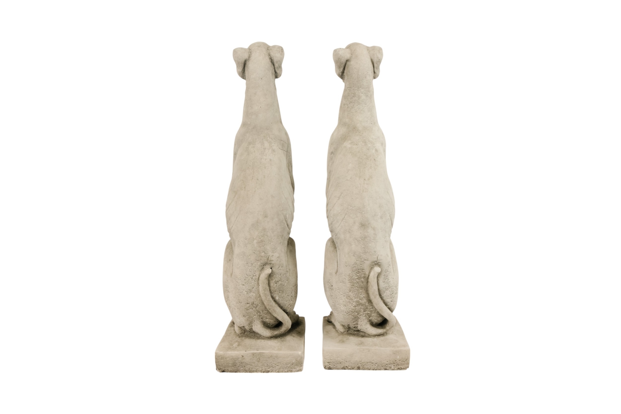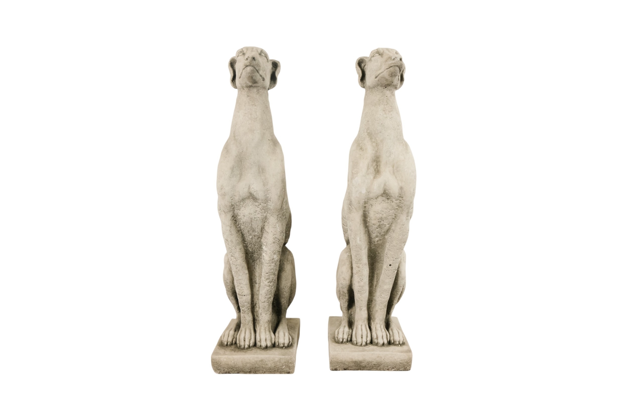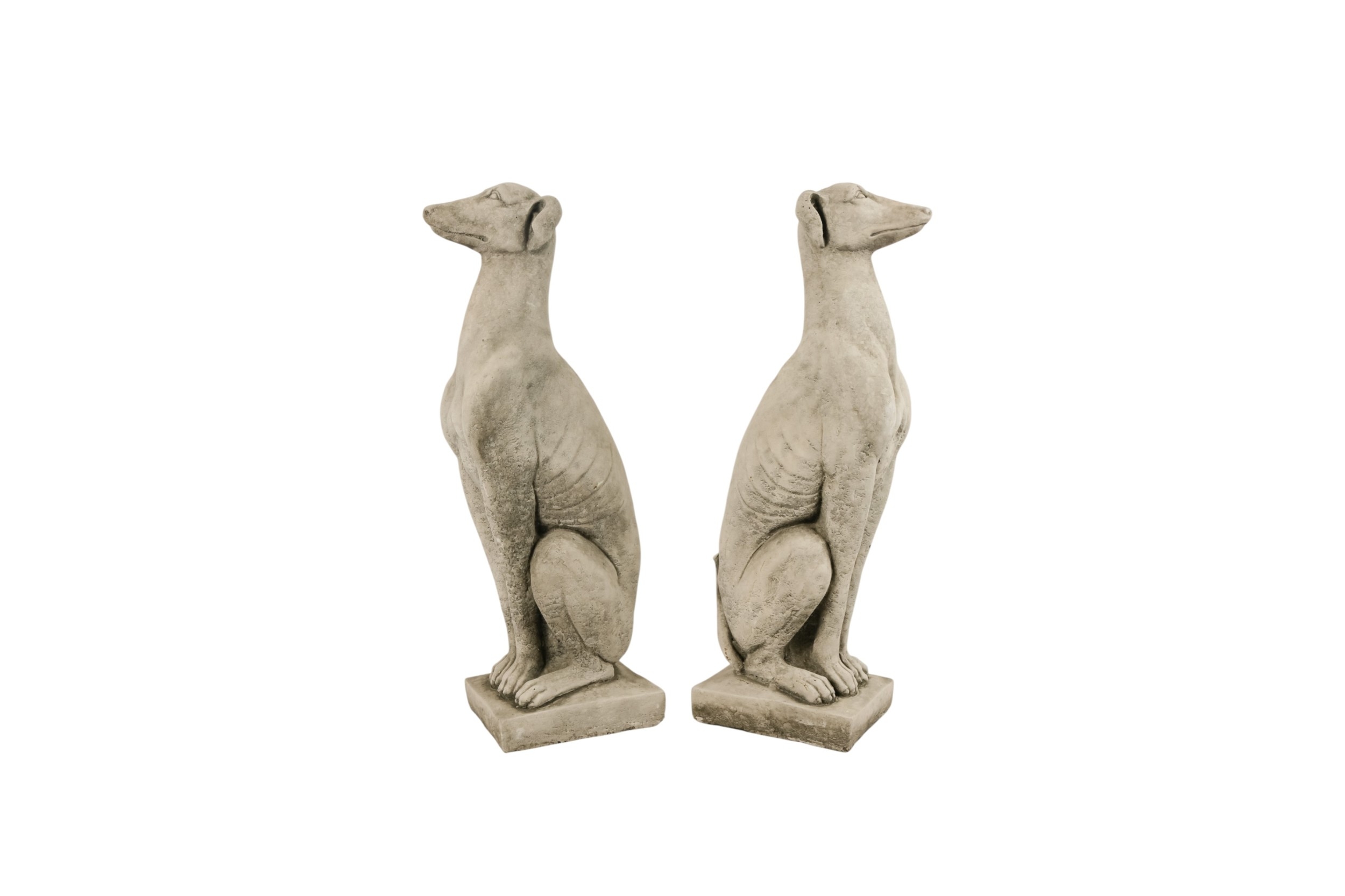 A pair of reconstituted stone gate capitals - modelled as greyhounds, 56cm high.