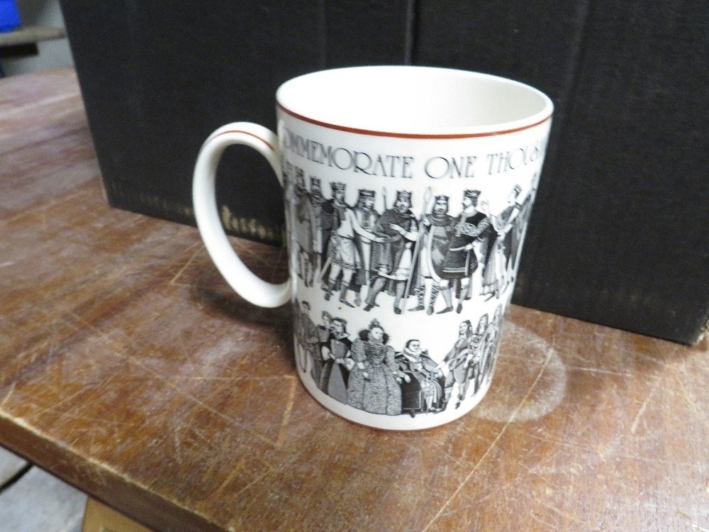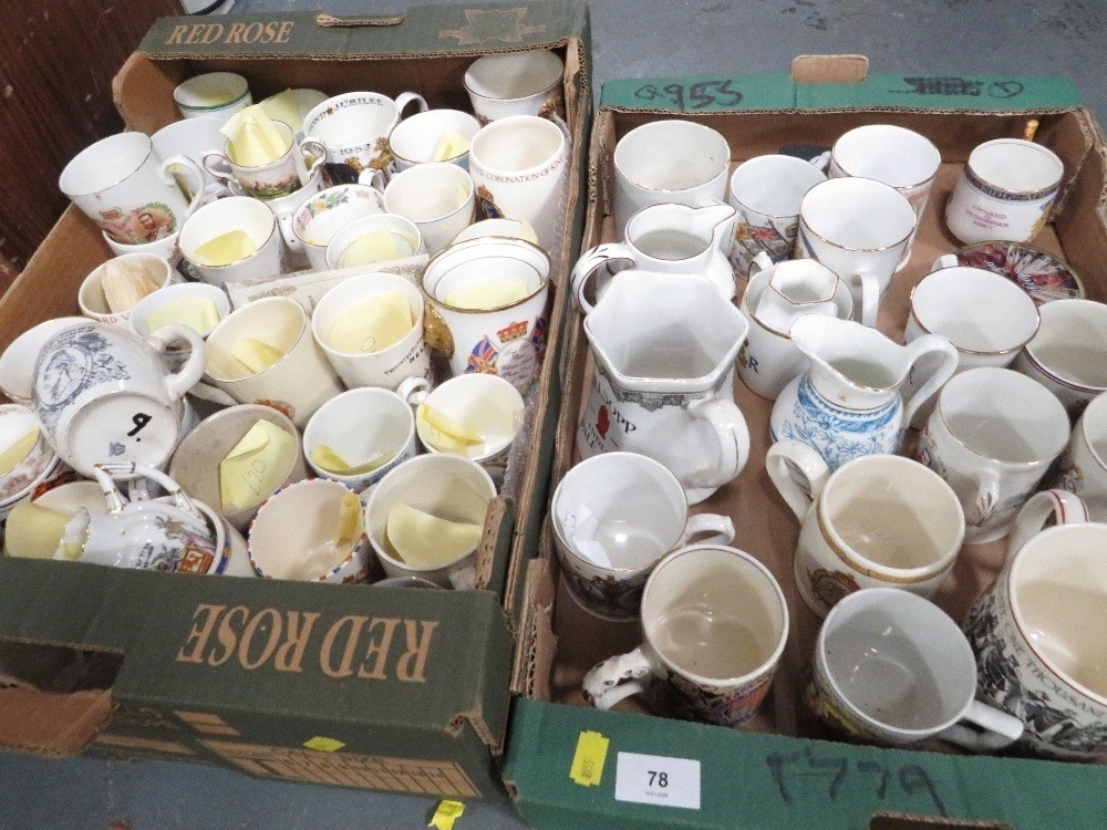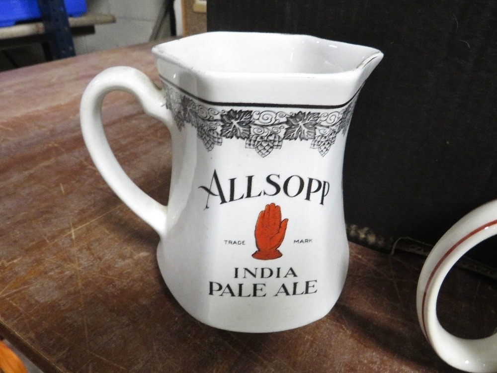 Two trays of ceramic commentative ware etc to include an Allsopp Indian pale ale jug by Minton's