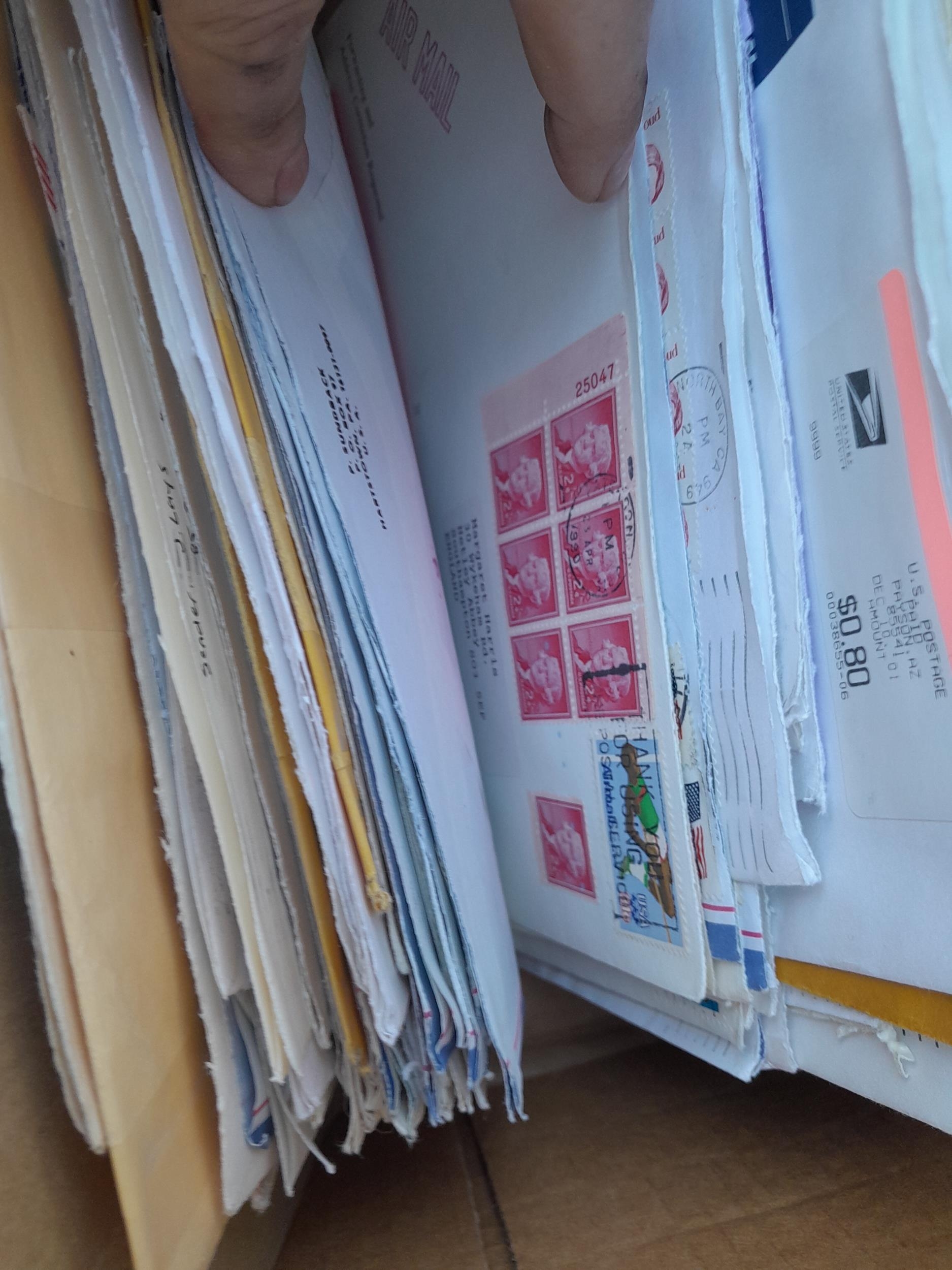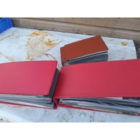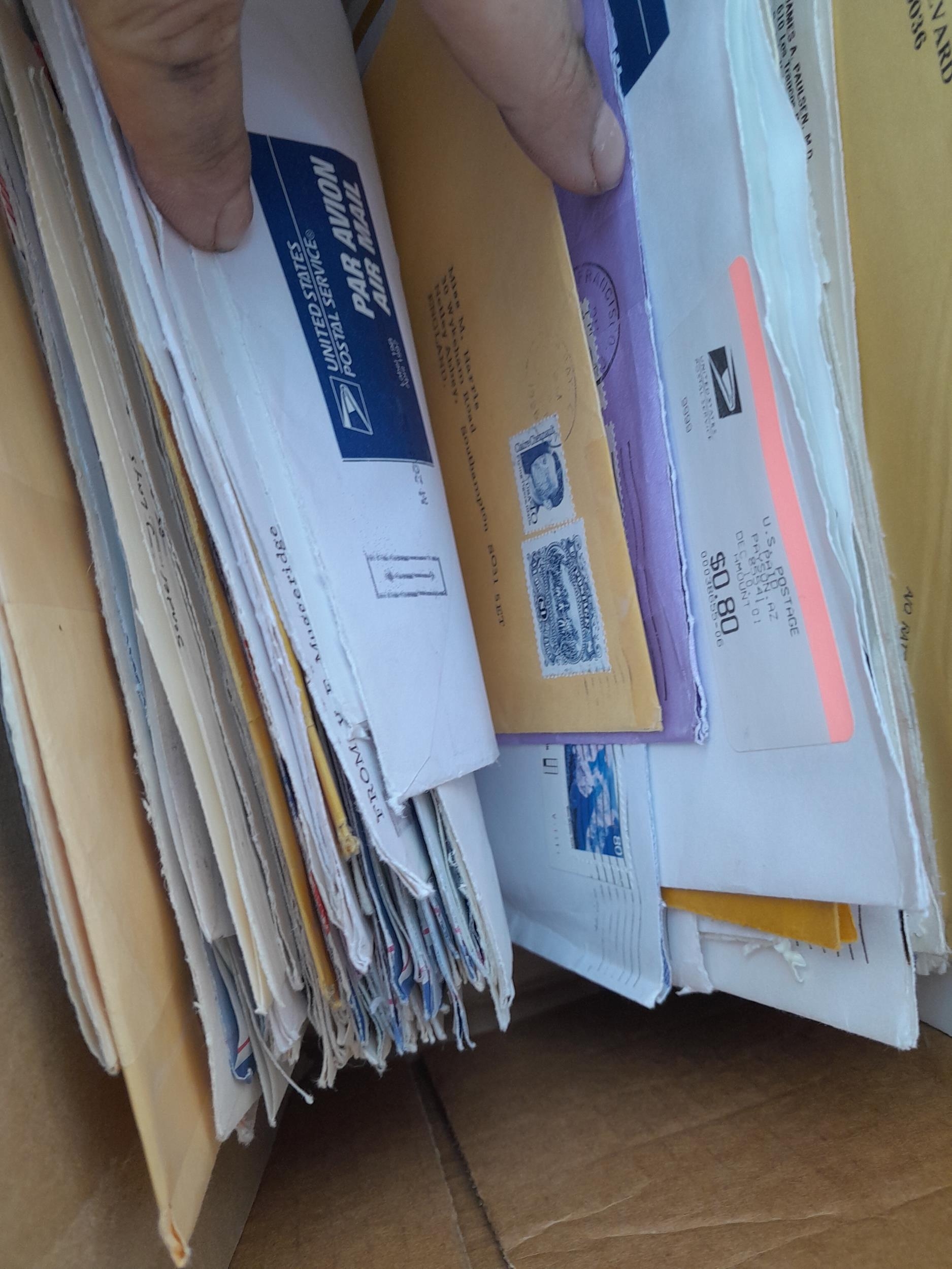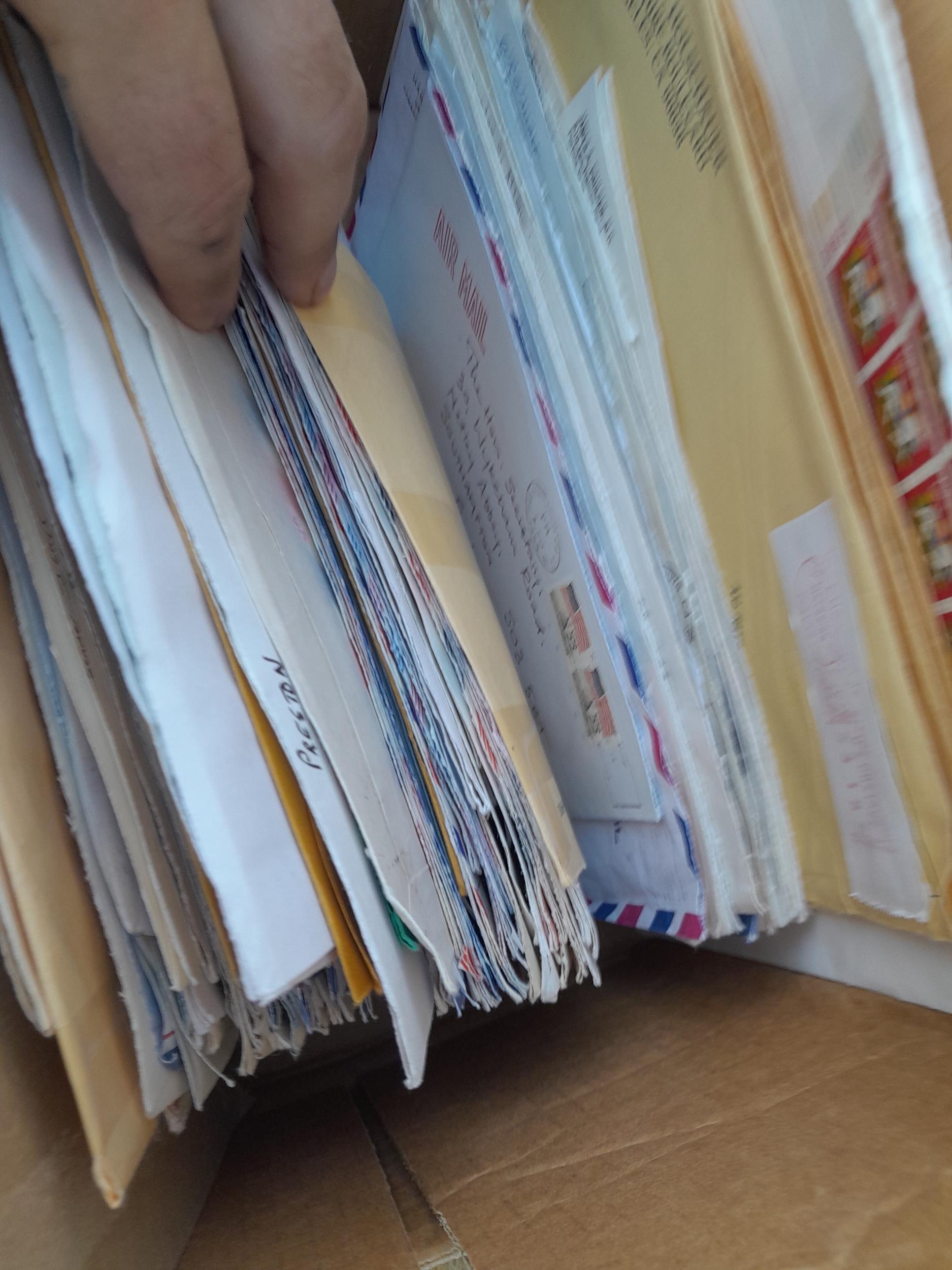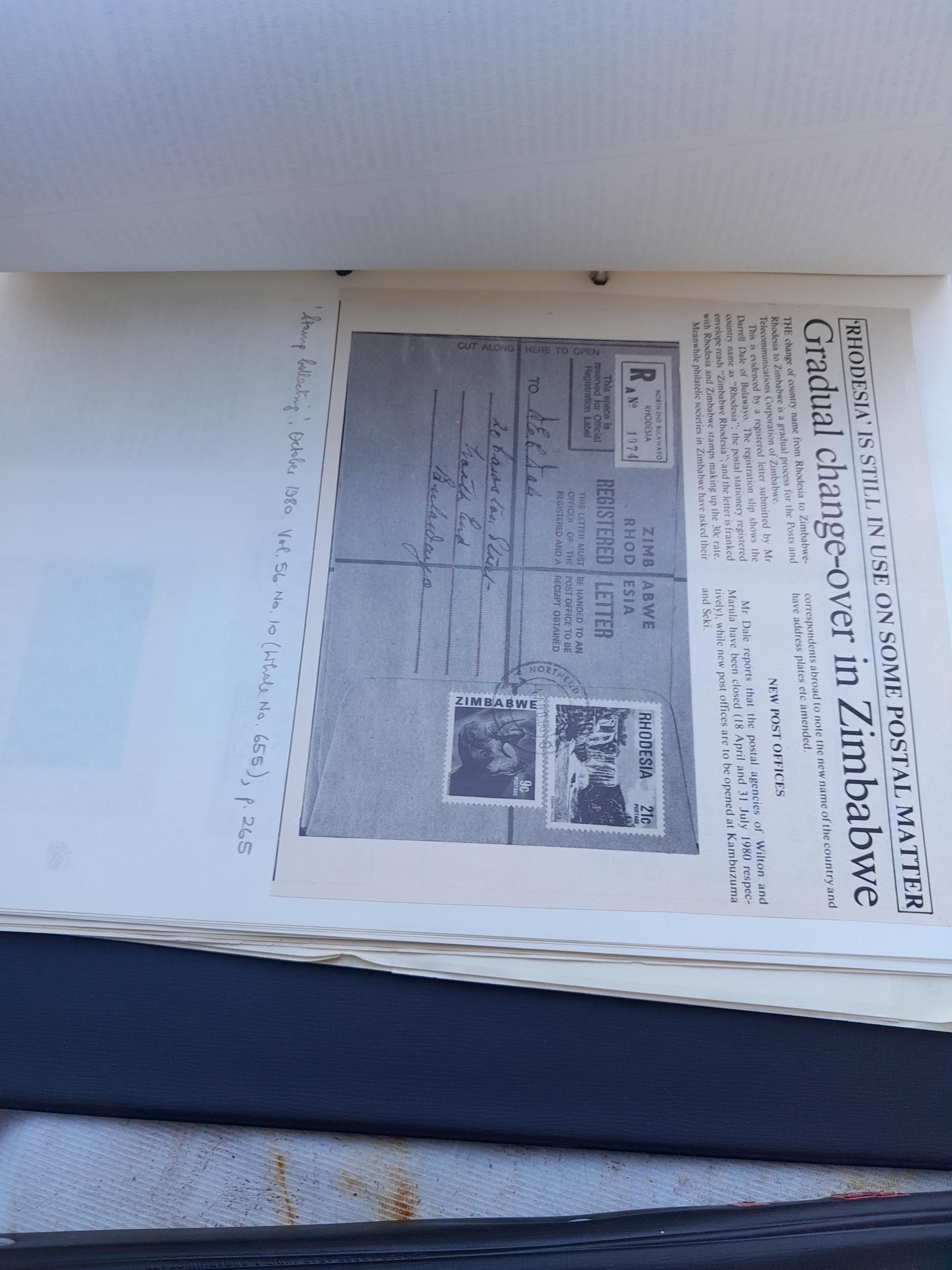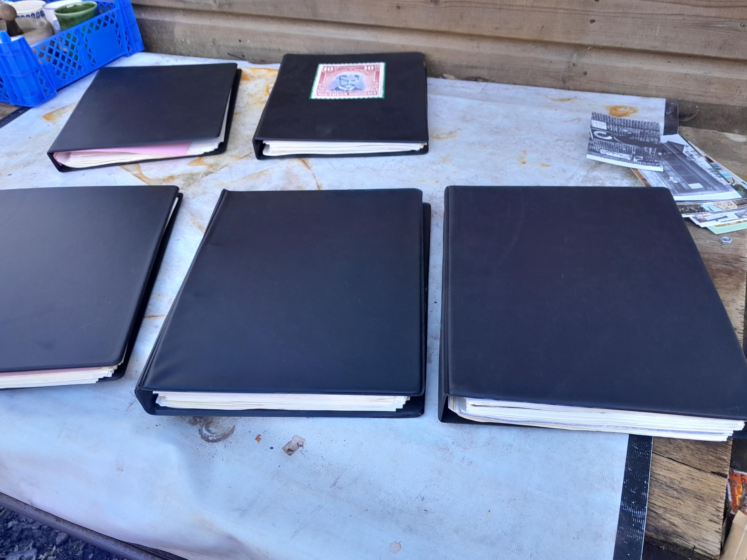 Folders of stamp related history and research papers with a few stamps, mainly on paper