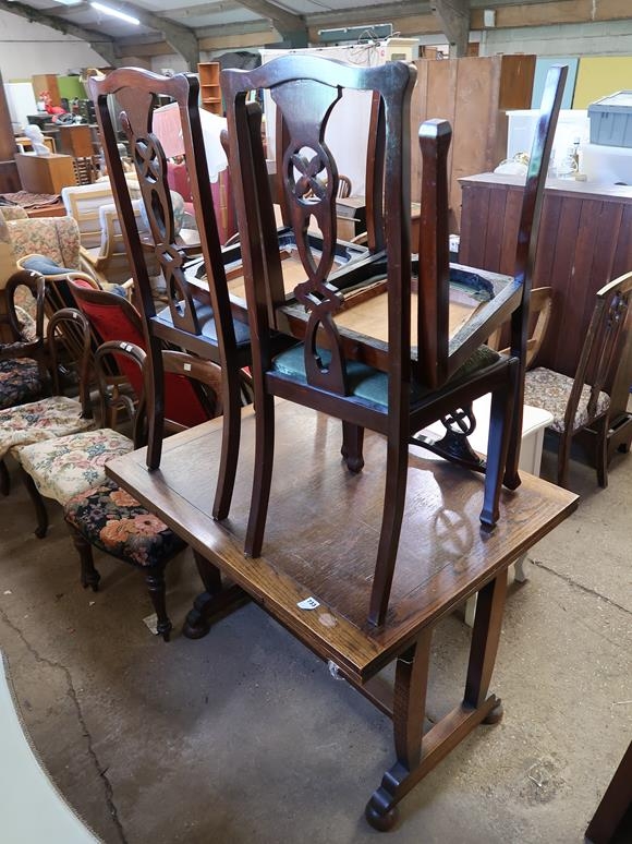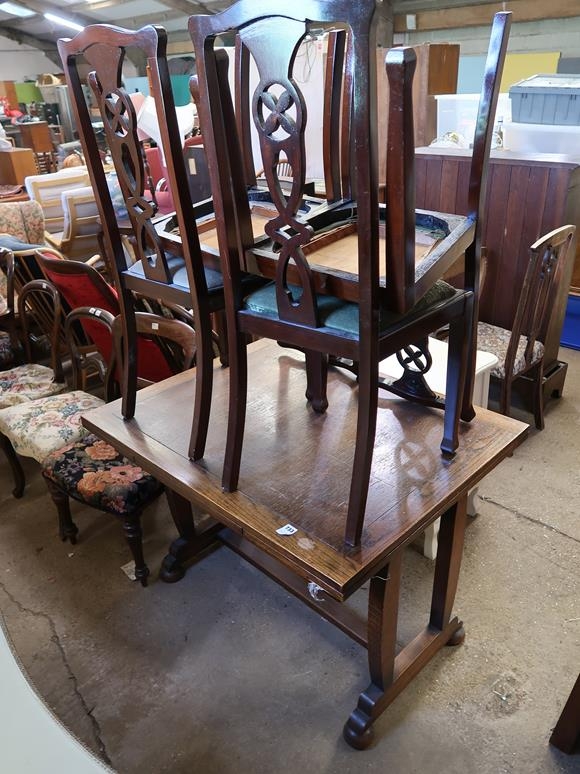 OAK DRAWER LEAF DINING TABLE AND CHAIRS