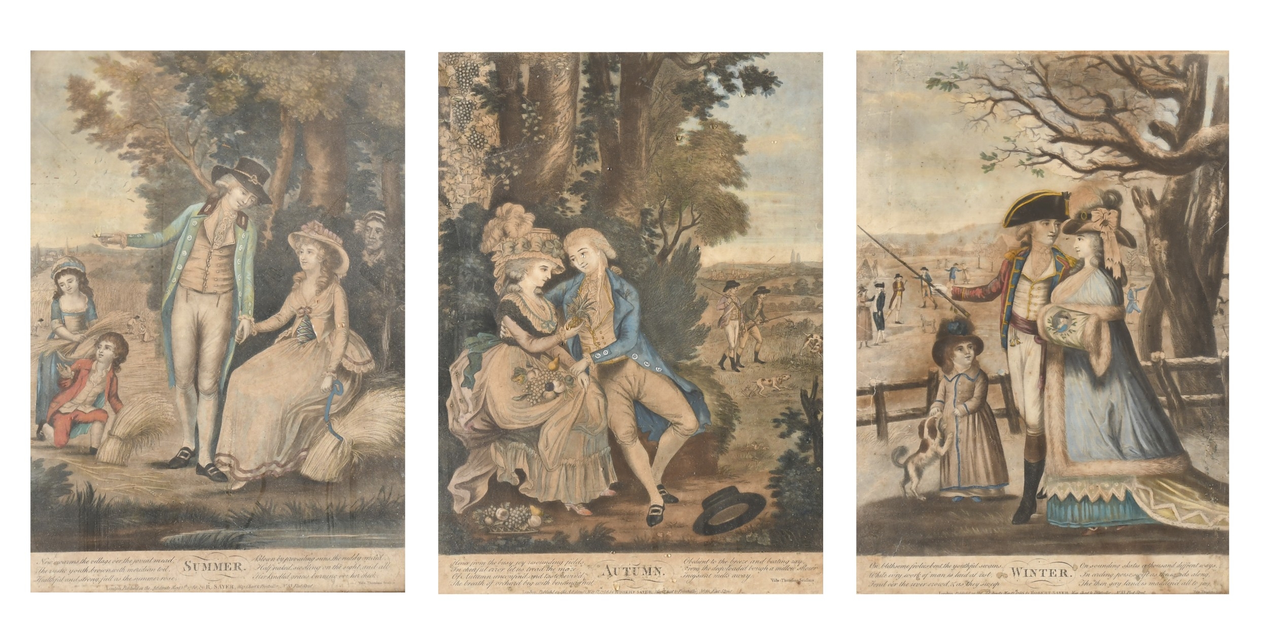 After Robert Sayer (act.1750-1780) British. "Summer", "Autumn" and "Winter", A set of three engravings, Overall (each) 14" x 10" (35.5 x 25.4cm) (3)