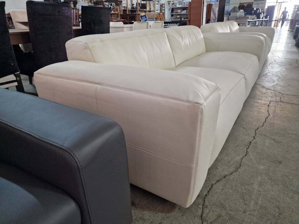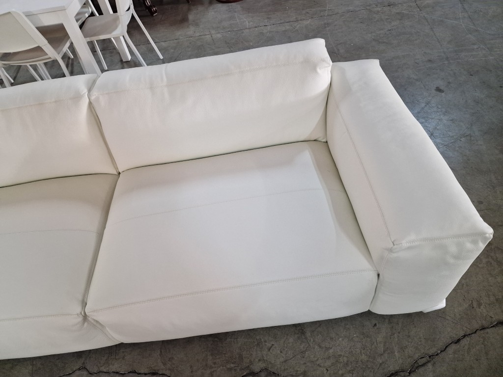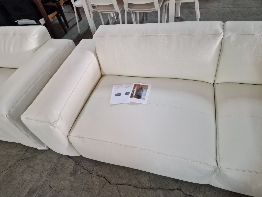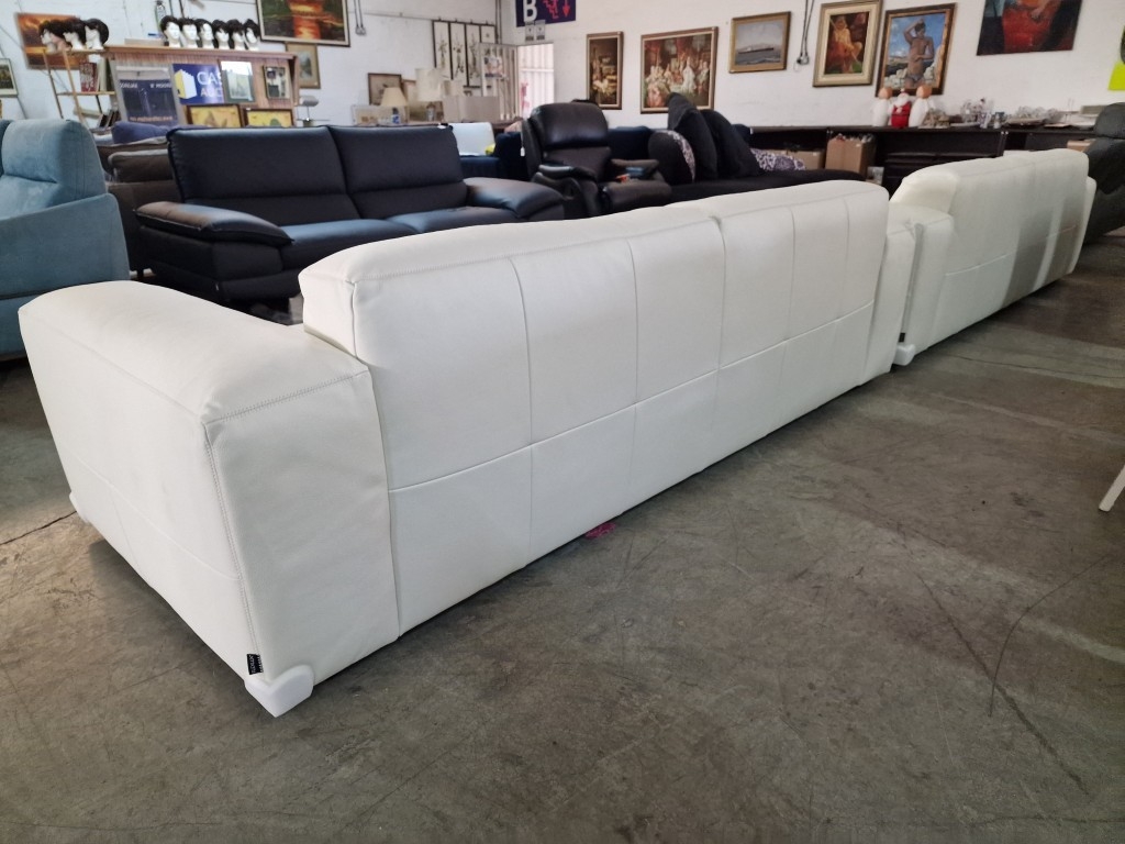 2 x Flexlux 'Lucera' White Leather 3-Seater Sofas; Modern Design & Super Comfortable High-Quality Seat Structure, (Approx. 250 x 100 x 75cm each), (2)