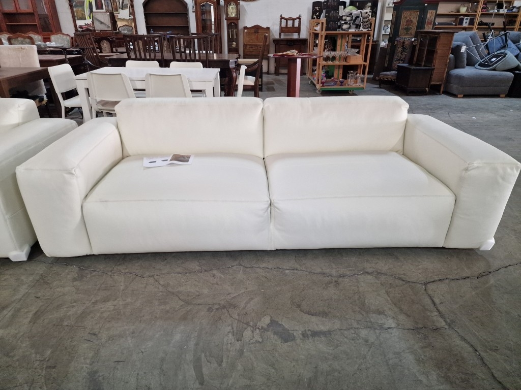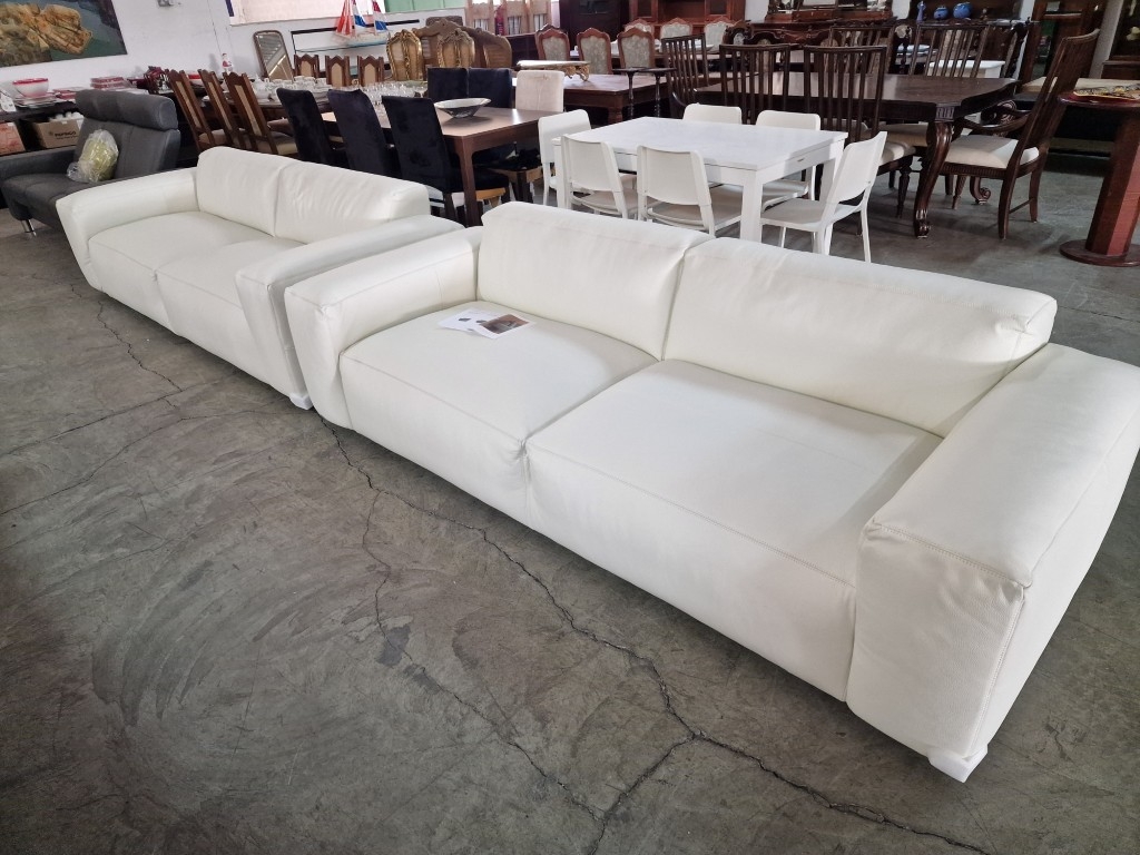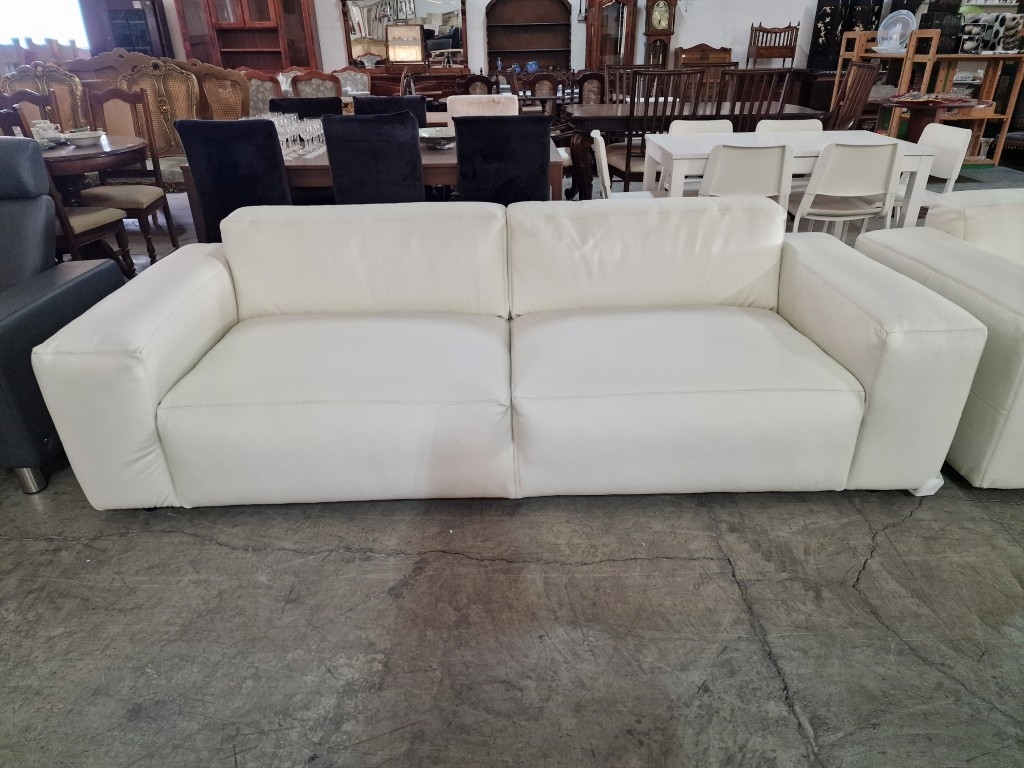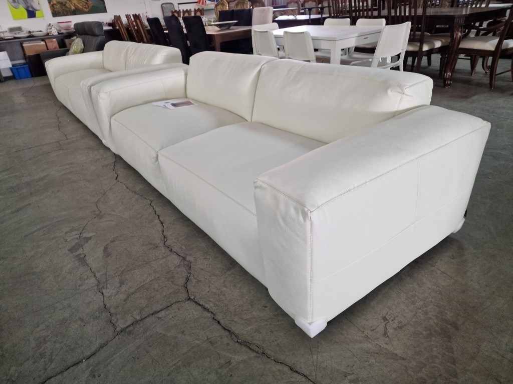 2 x Flexlux 'Lucera' White Leather 3-Seater Sofas; Modern Design & Super Comfortable High-Quality Seat Structure, (Approx. 250 x 100 x 75cm each), (2)