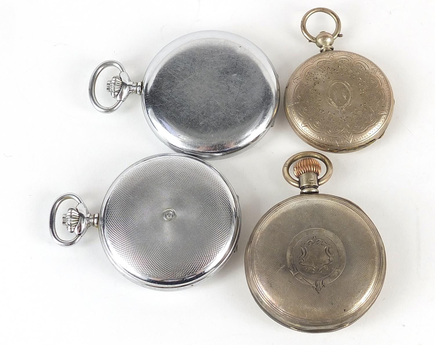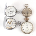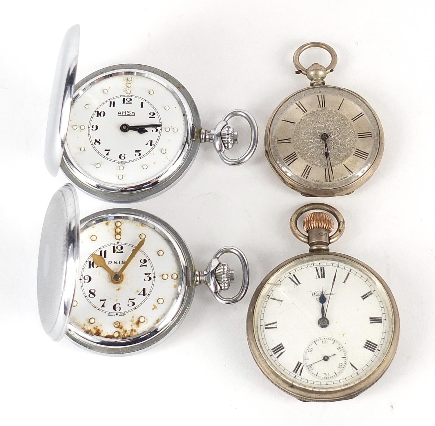 Four pocket watches including a silver Waltham and a RNIB braille example, the largest 50mm in diameter