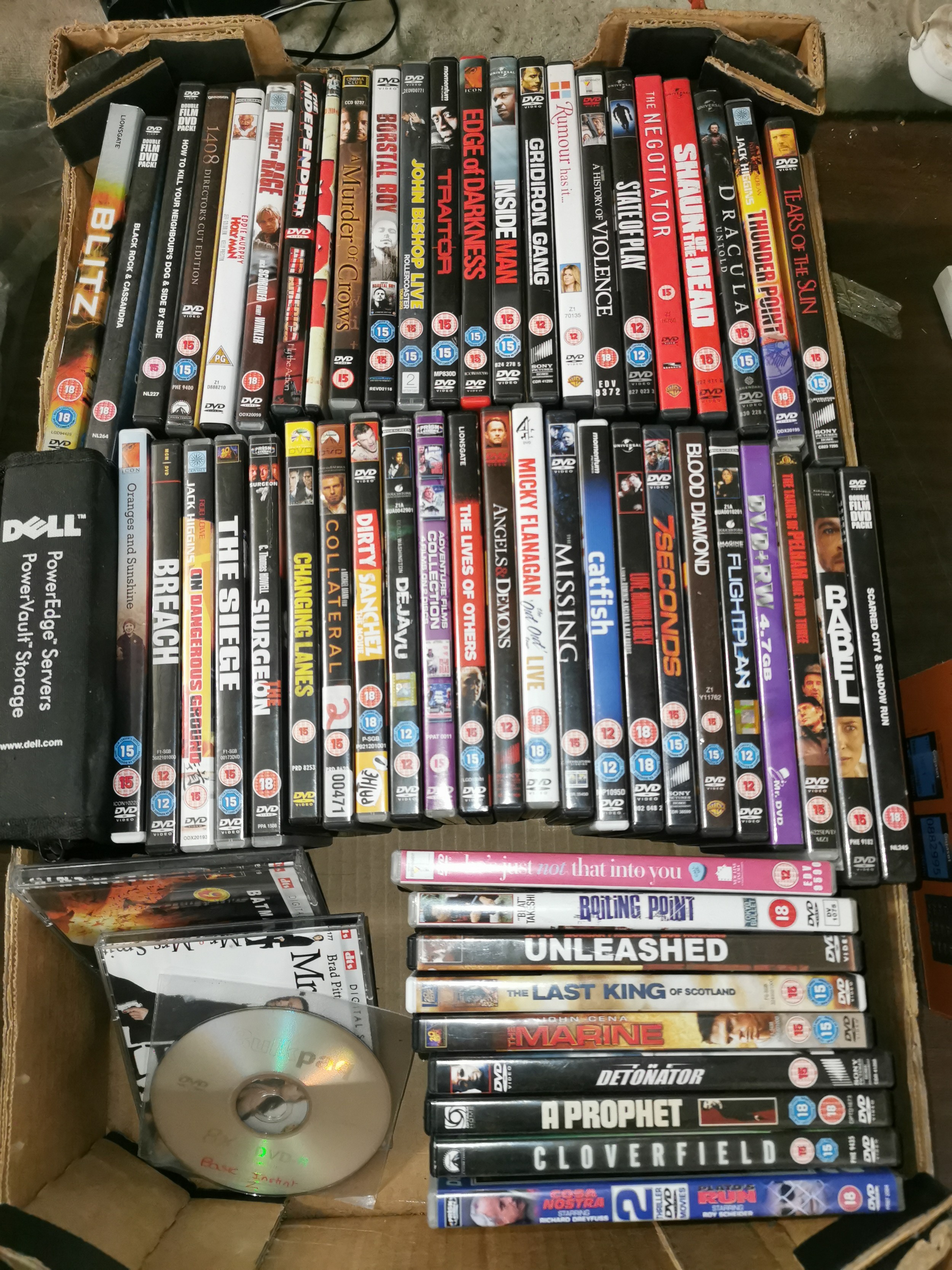Box of assorted DVDs