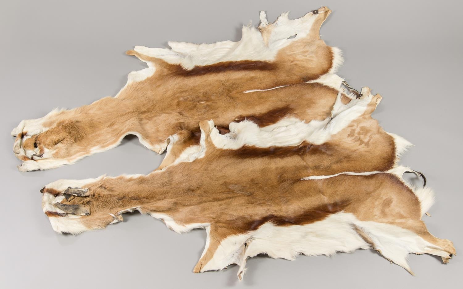 TWO MODERN TAXIDERMY SPRINGBOK SKINS. The largest (l 145cm).
