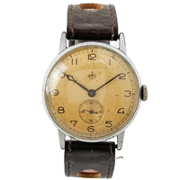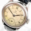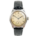 Omega - An Omega 1940's gentleman's stainless steel manual wind wristwatch. Ref. 2165-A, made for the India Civil Service, the signed 25mm silvered dial with Arabic and line hour markers, subsidiary dial, the signed 15 jewel movement numbered 9872328, Omega case numbered 2165 - A, case 31mm. Currently winds and runs.