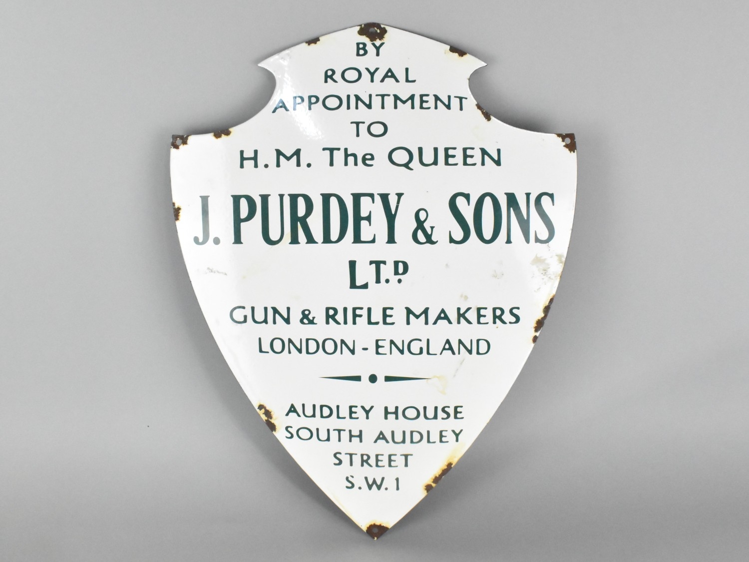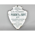 A Reproduction Shield Shaped Enamel Advertising Sign For J Purdey & Sons, 51 x 39cms