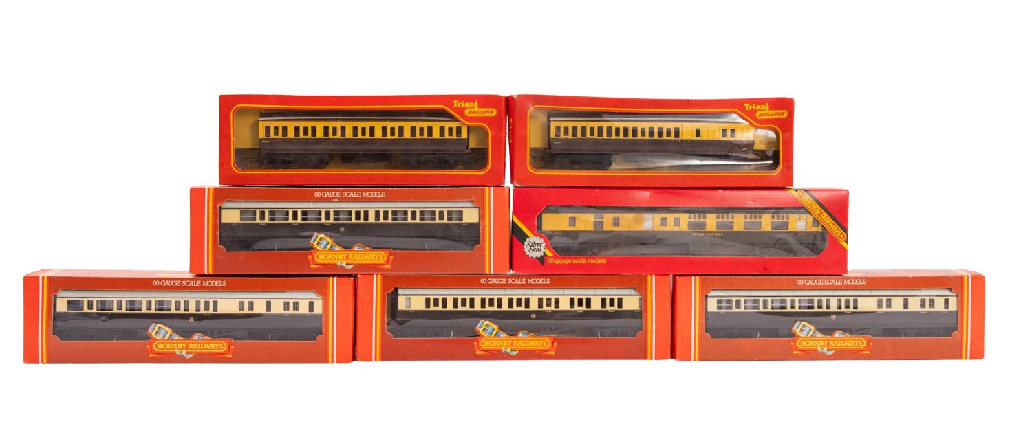 Seven Hornby Railways OO/HO gauge GWR passenger coaches. All in cream and brown livery, all boxed.