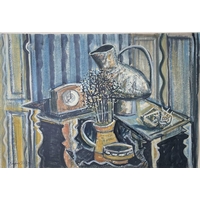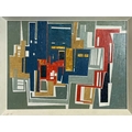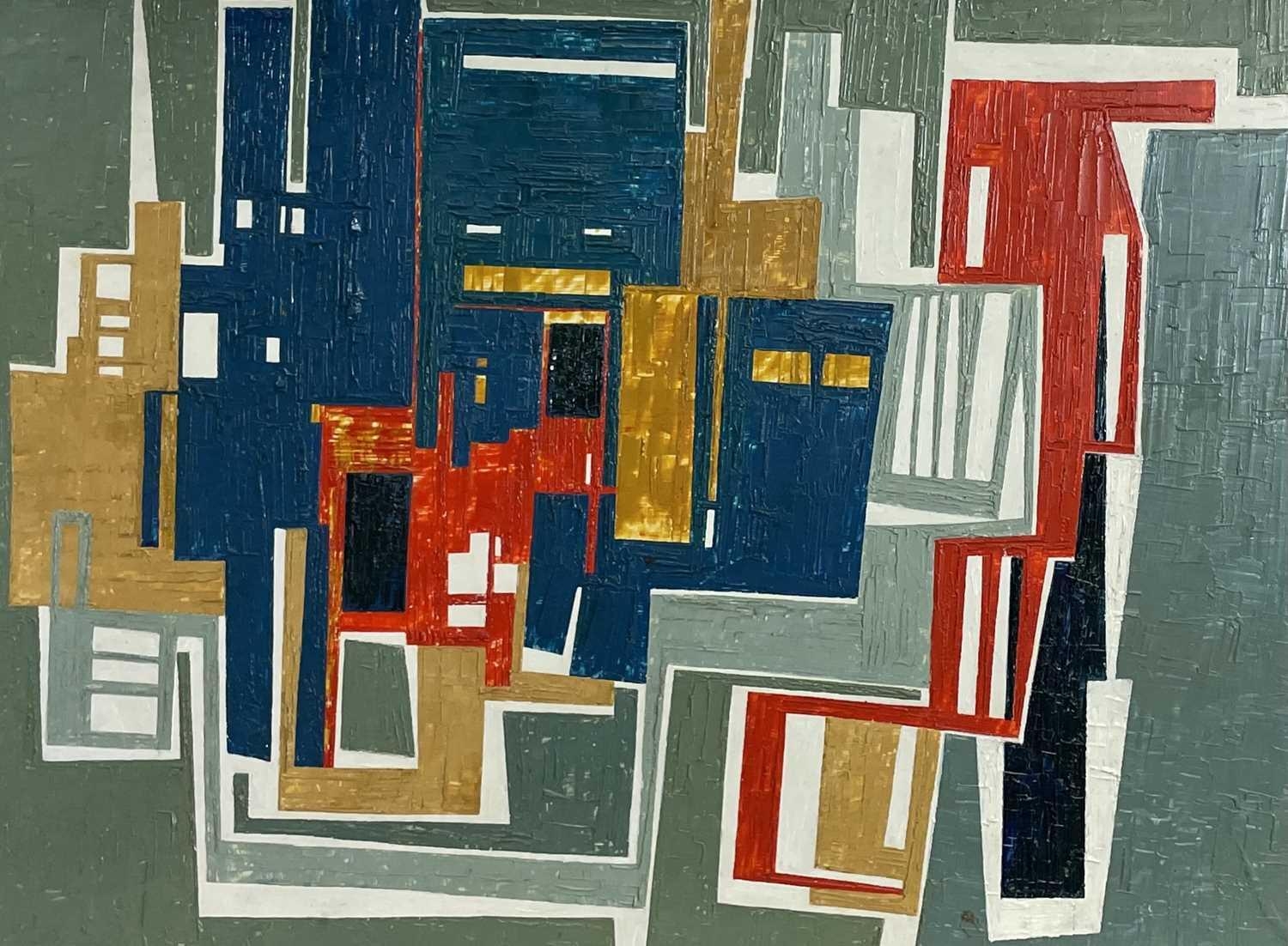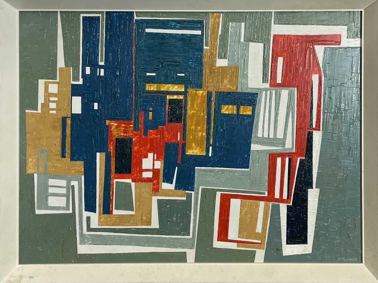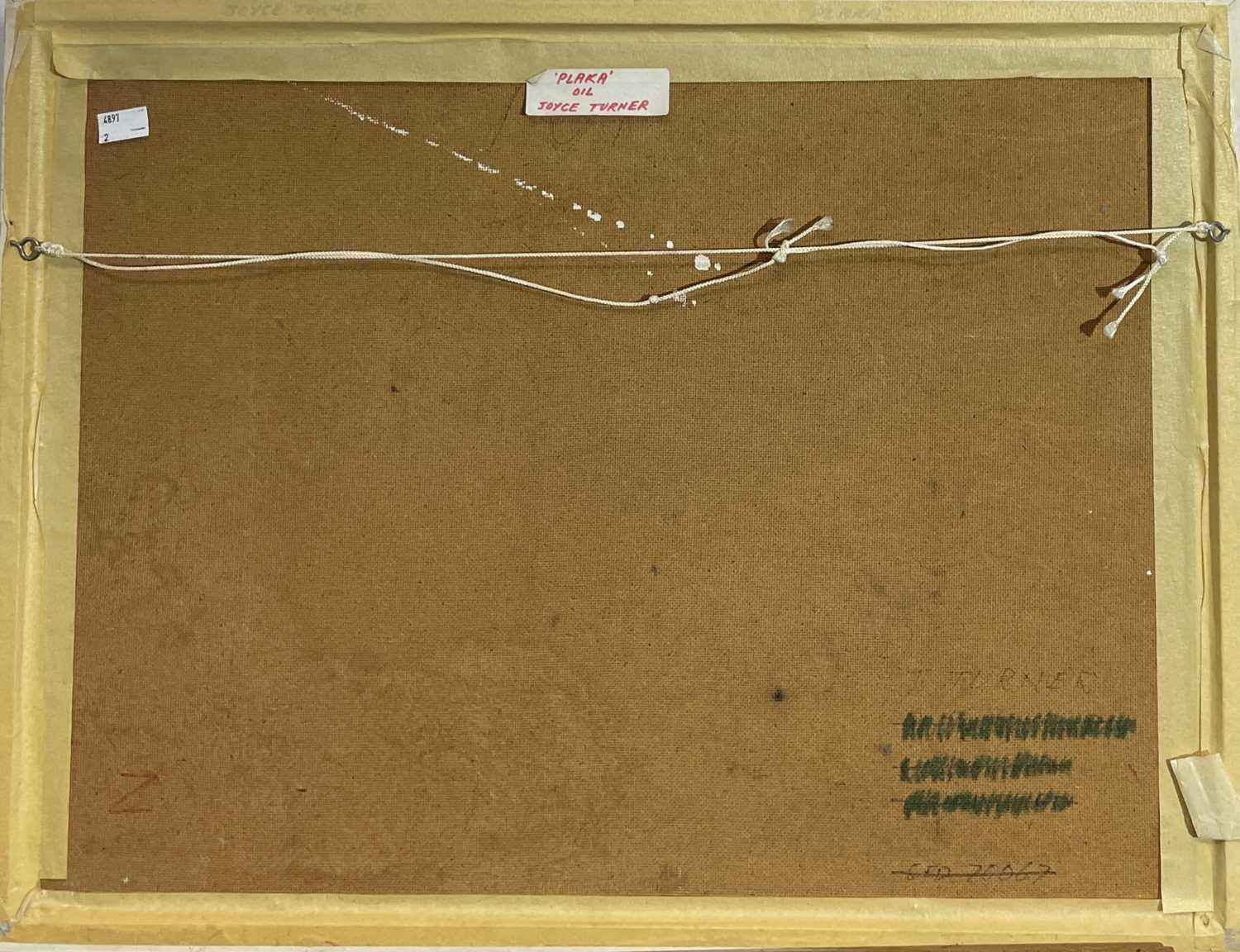 Joyce TURNER (1920-2020) Plaka Oil on board Signed 42 x 59cm Joyce Turner was an abstract artist who painted up until her death two years ago, at the age of 100. Her earliest artistic discipline came from the intricate drawings required of her as an Admiralty illustrator during WW2. After the war, her work evolved into abstraction and she studied further at the City Institute in London. She had a number of exhibitions, including a major retrospective at Guildford House Gallery in Surrey, one-woman shows in Manchester and Leatherhead, a shared show at the Metropole Arts Centre in Folkestone, and participation in London exhibitions at the Barbican, Conway Hall and Guildhall Gallery. She was also invited to exhibit 24 works on the Saatchi online gallery. Blindness was her greatest dread, and as she became older glaucoma affected her vision. Life without colour would have been unbearable. All profits from her paintings will therefore be donated to charities helping people with impaired sight.