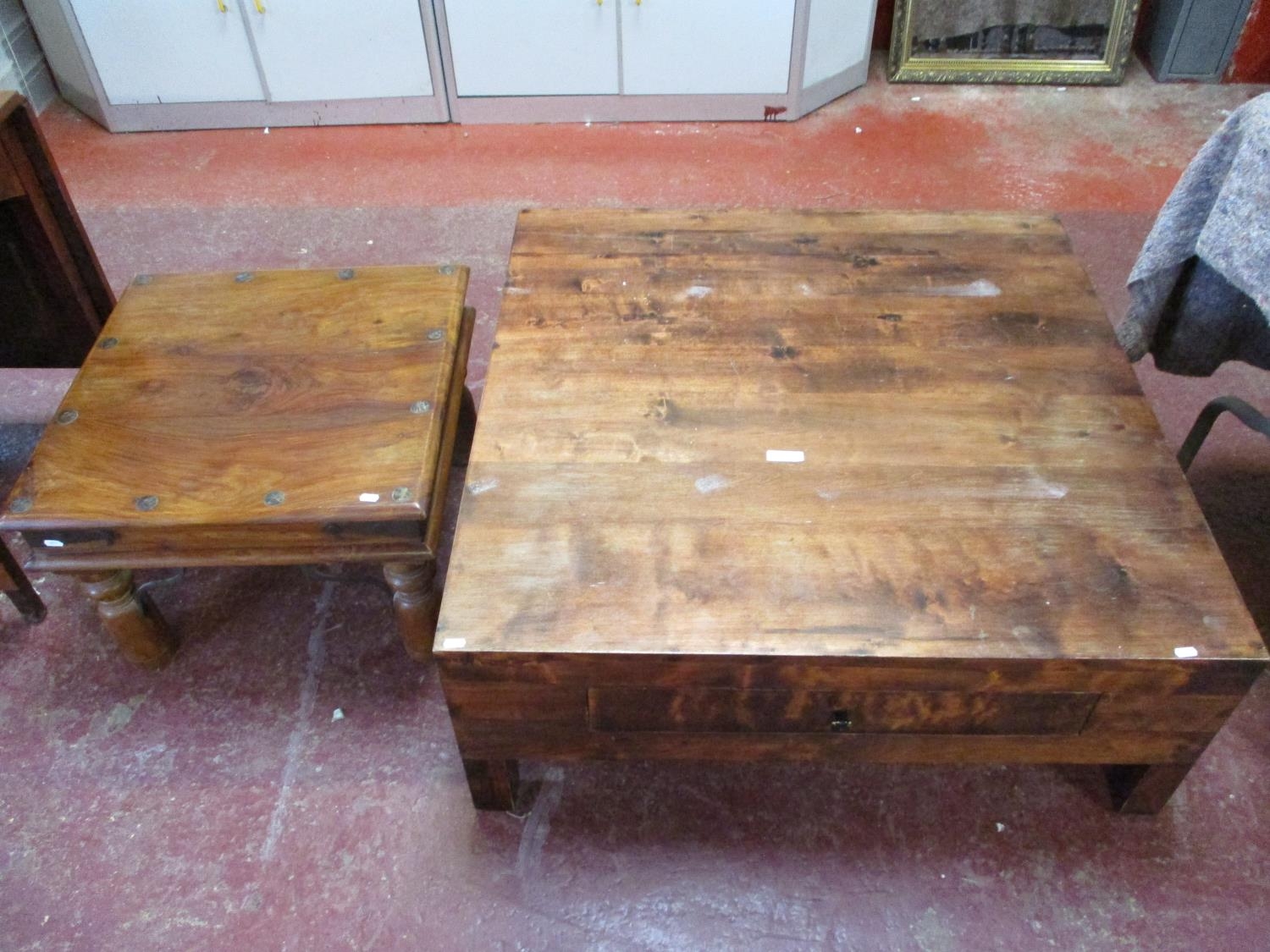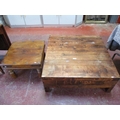 A large hard wood coffee table fitted a drawer together with a smaller table