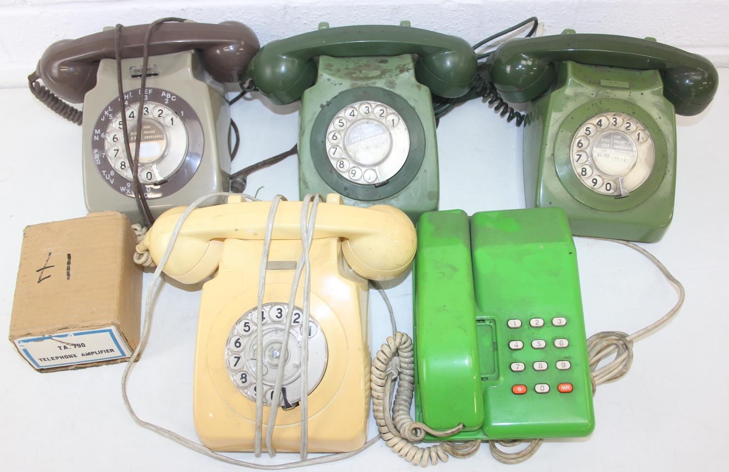 Telephones - five assorted Retro telephones to inc GPO 746 and others, mainly green and cream livery, and some accessories [5]