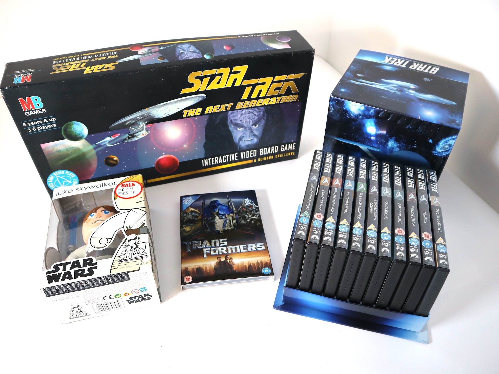 Star Trek Legends of the Final Frontier Collection DVD, Star Trek The Next Generation Interactive Video board Game, Luke Skywalker Toy + Transformers DVD