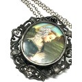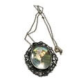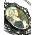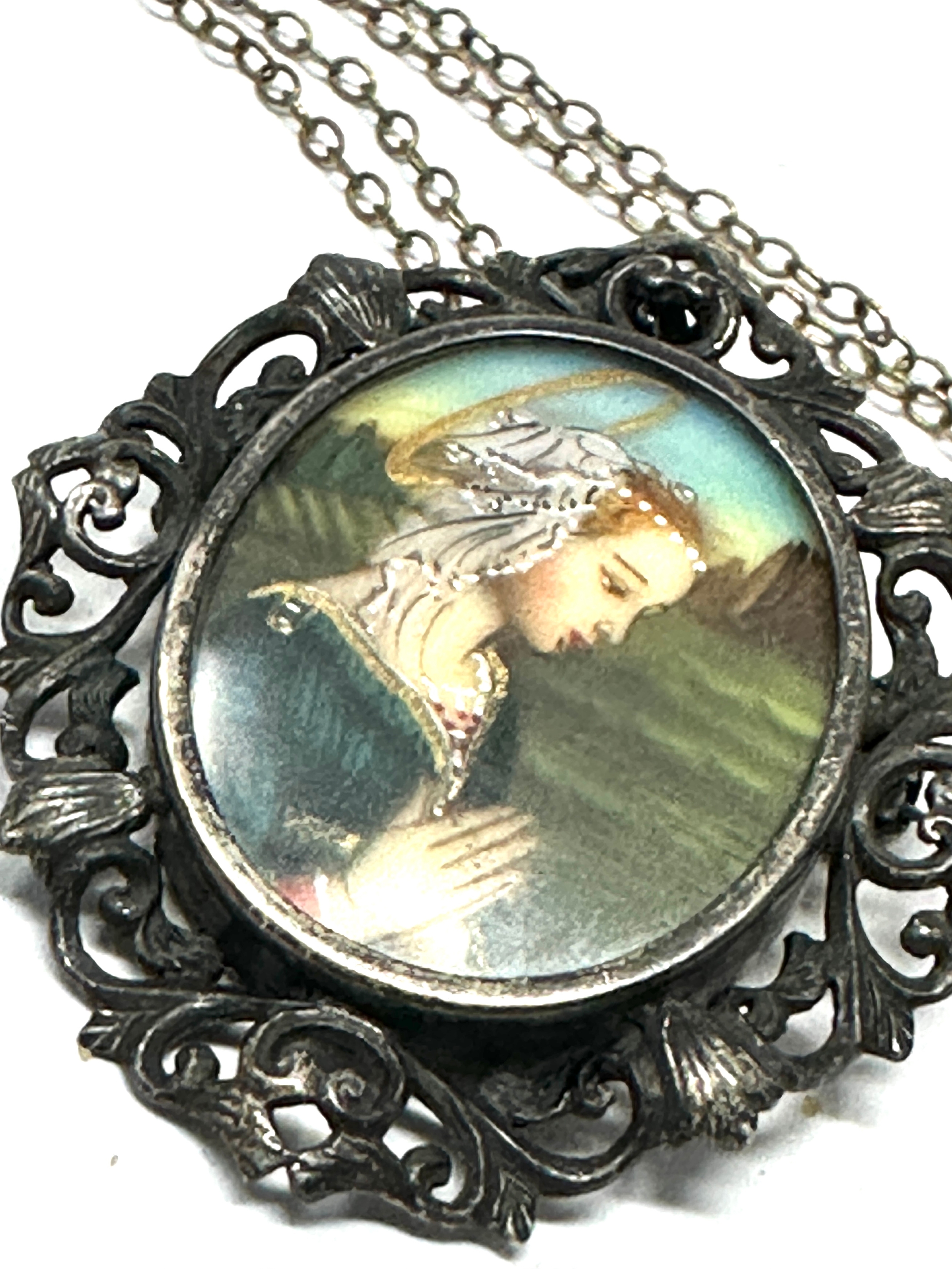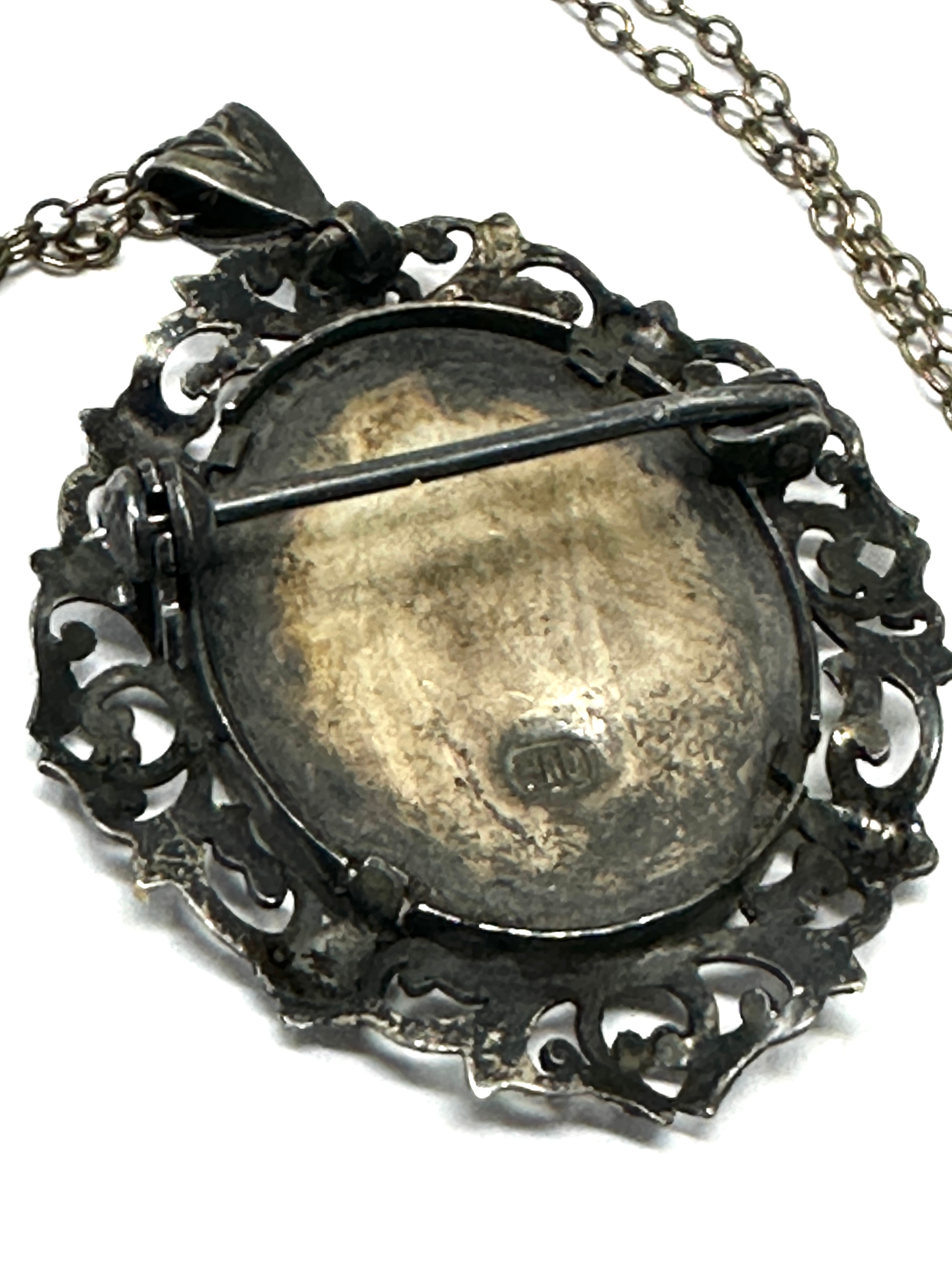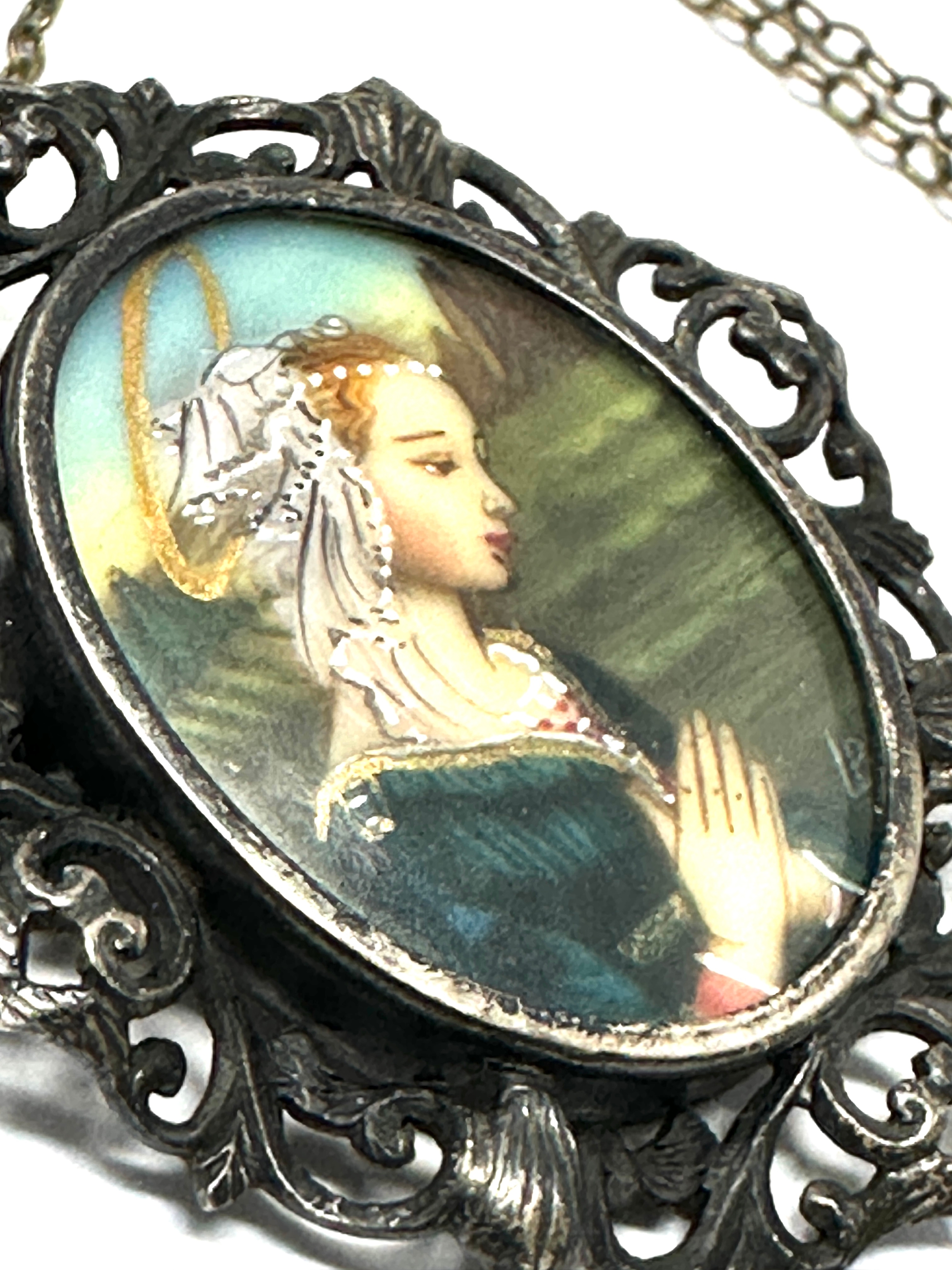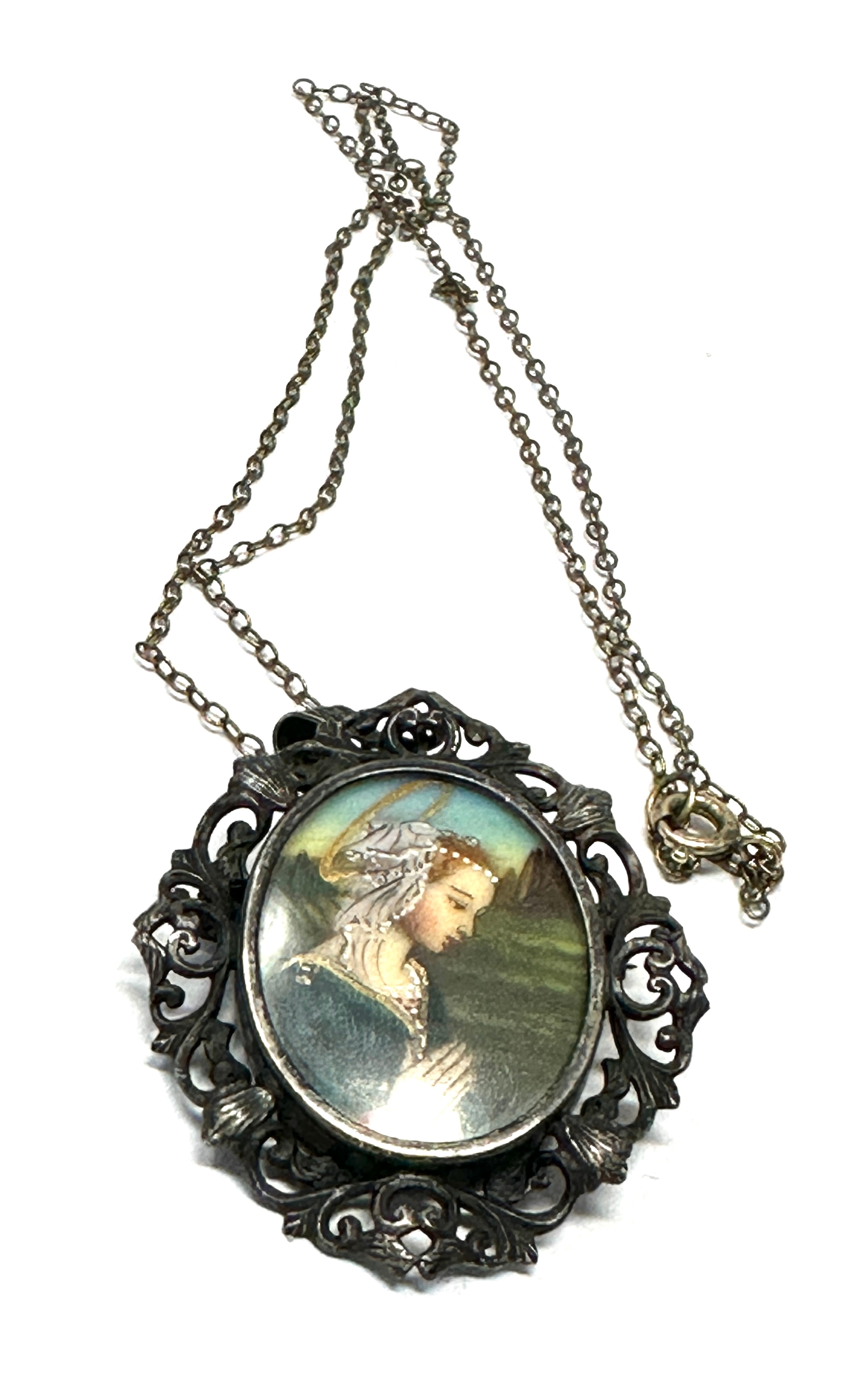 Vintage Silver 800 Portrait miniature Brooch Pin Pendant Necklace Lady praying