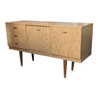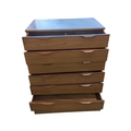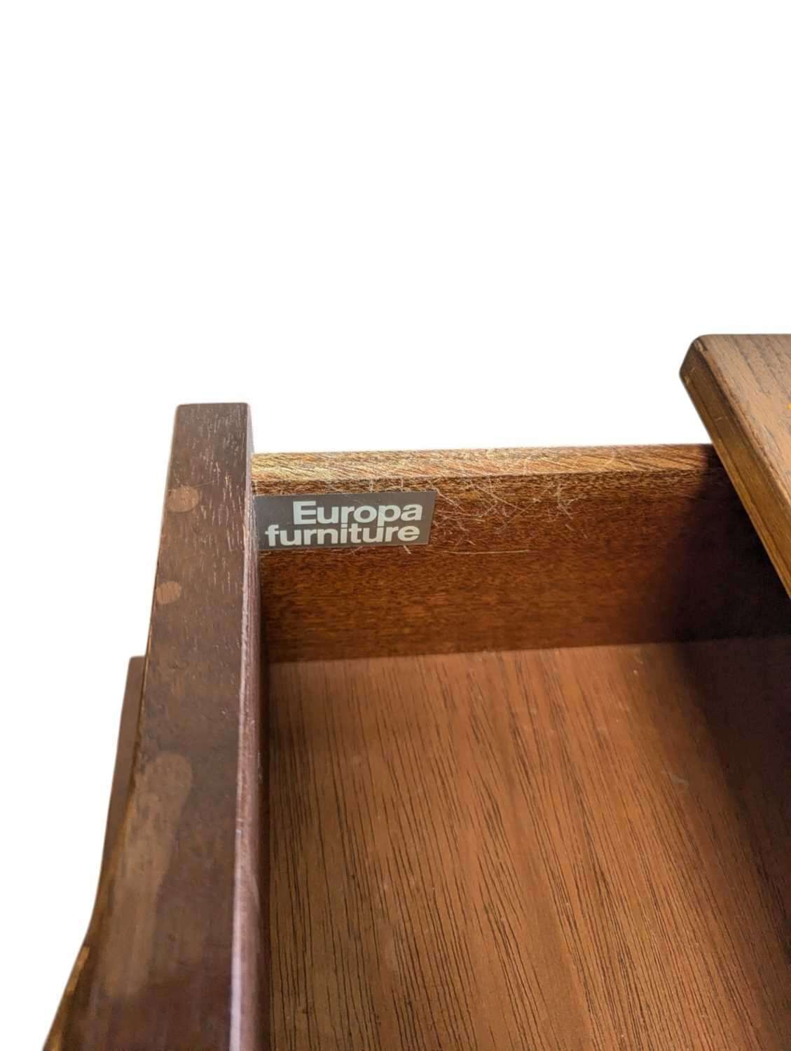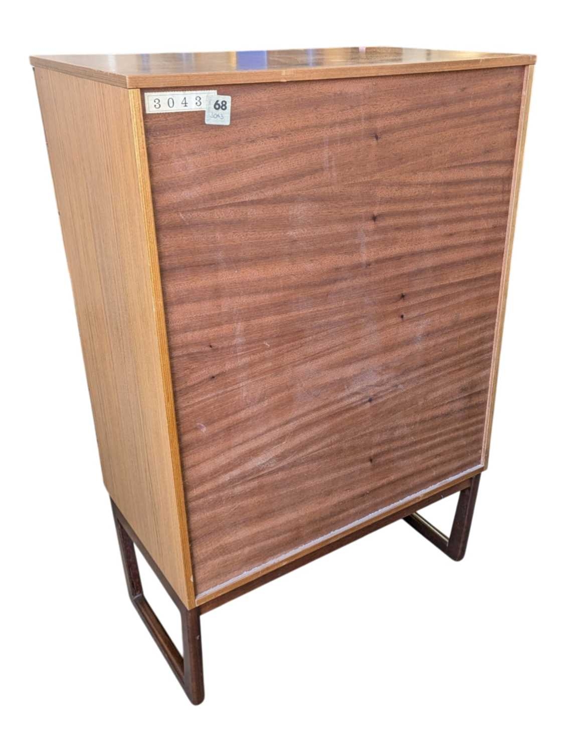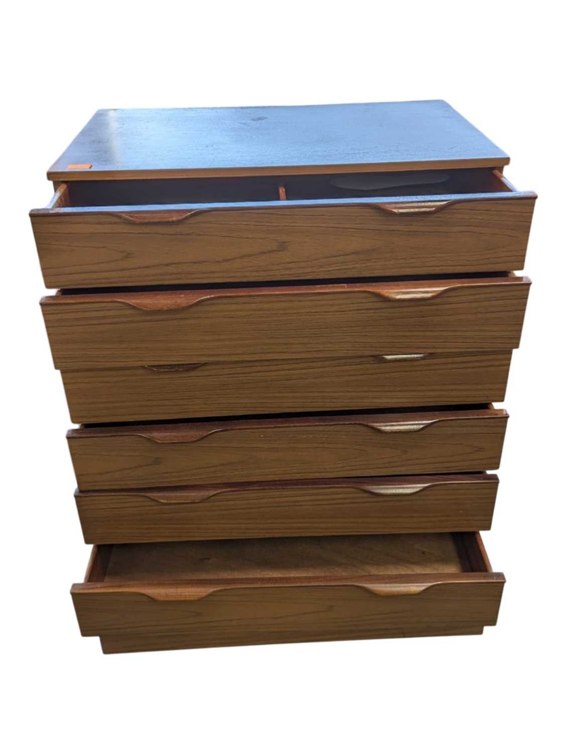 Schreiber Furniture - A vintage mid 20th century teak veneer chest of drawers. Rectangular form with a bank of seven drawers. All raised on quadrille style legs with lipped pull handles. Measures approx: 119x76x46cm