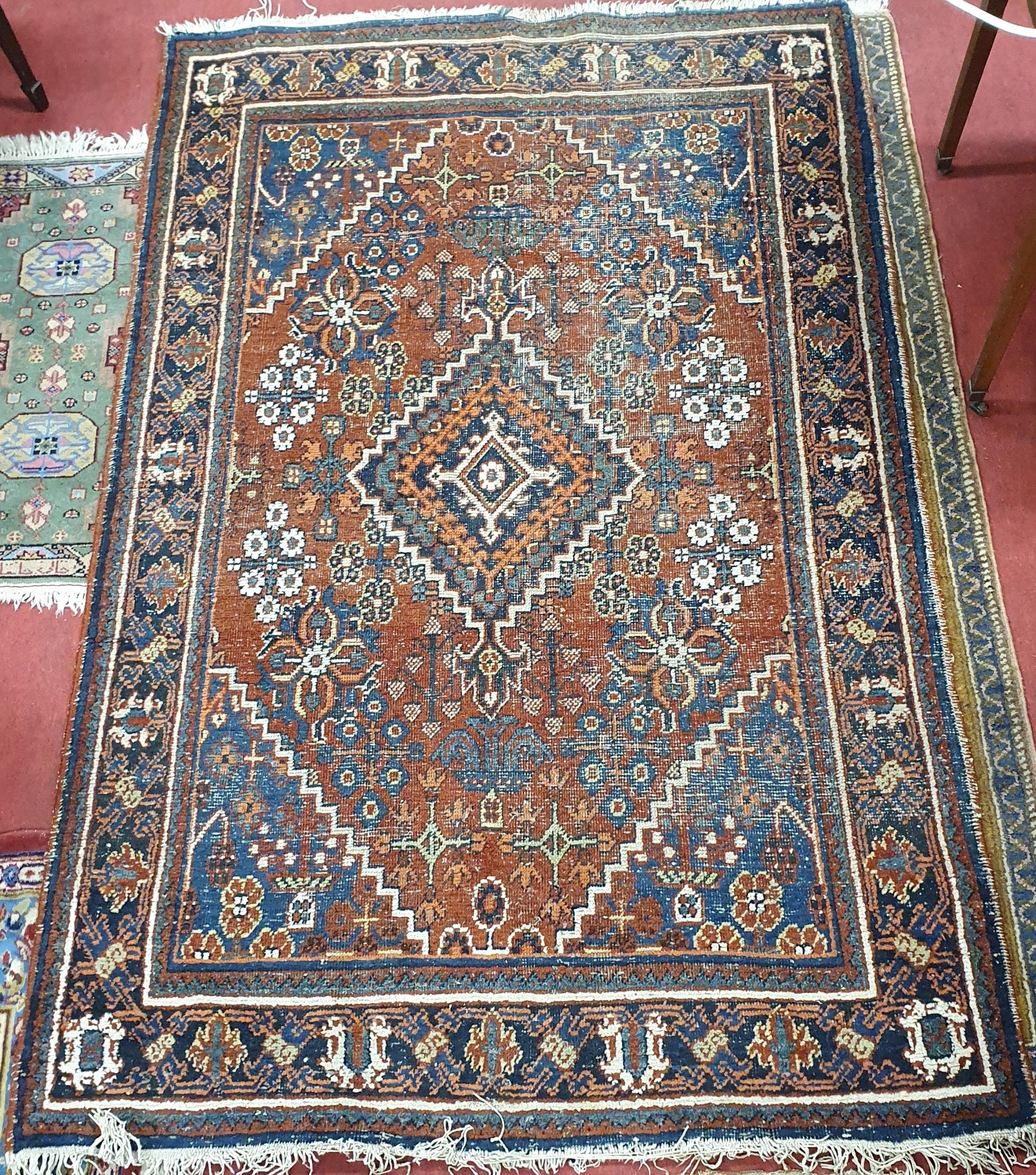 A Persian Rug with unique medallion design and multi borders.L 170 x W 126 cm approx.