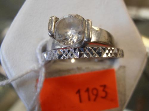 2 SILVER RINGS, ONE WITH WHITE STONE