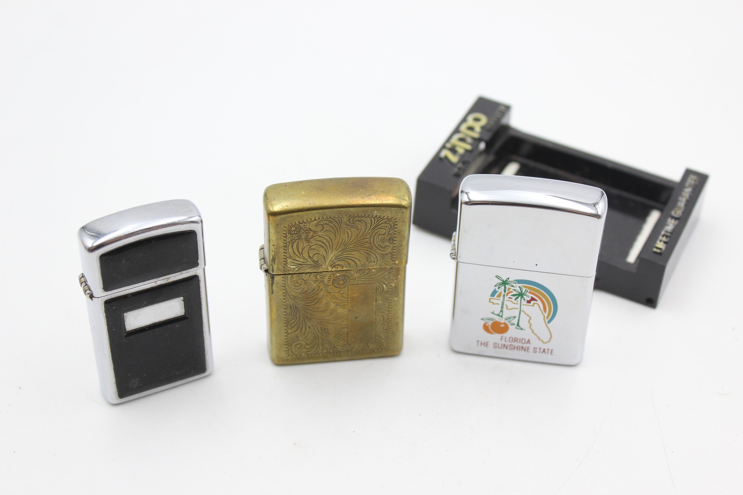 3 x Assorted ZIPPO Cigarette LIGHTERS Inc Vintage, Brass, Boxed, Slimline Etc
