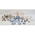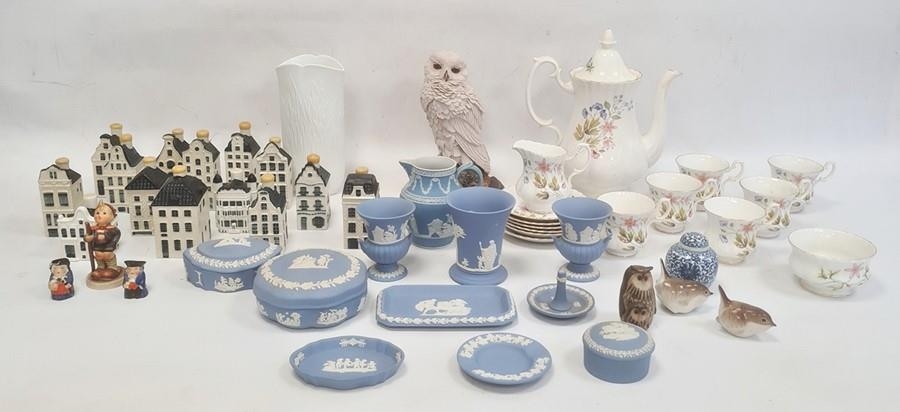 14 KLM models of Dutch buildings produced for Bols Royal Distilleries, a quantity of Wedgwood blue jasperware, a Country Artist's model of a Snowy Owl and various other items.