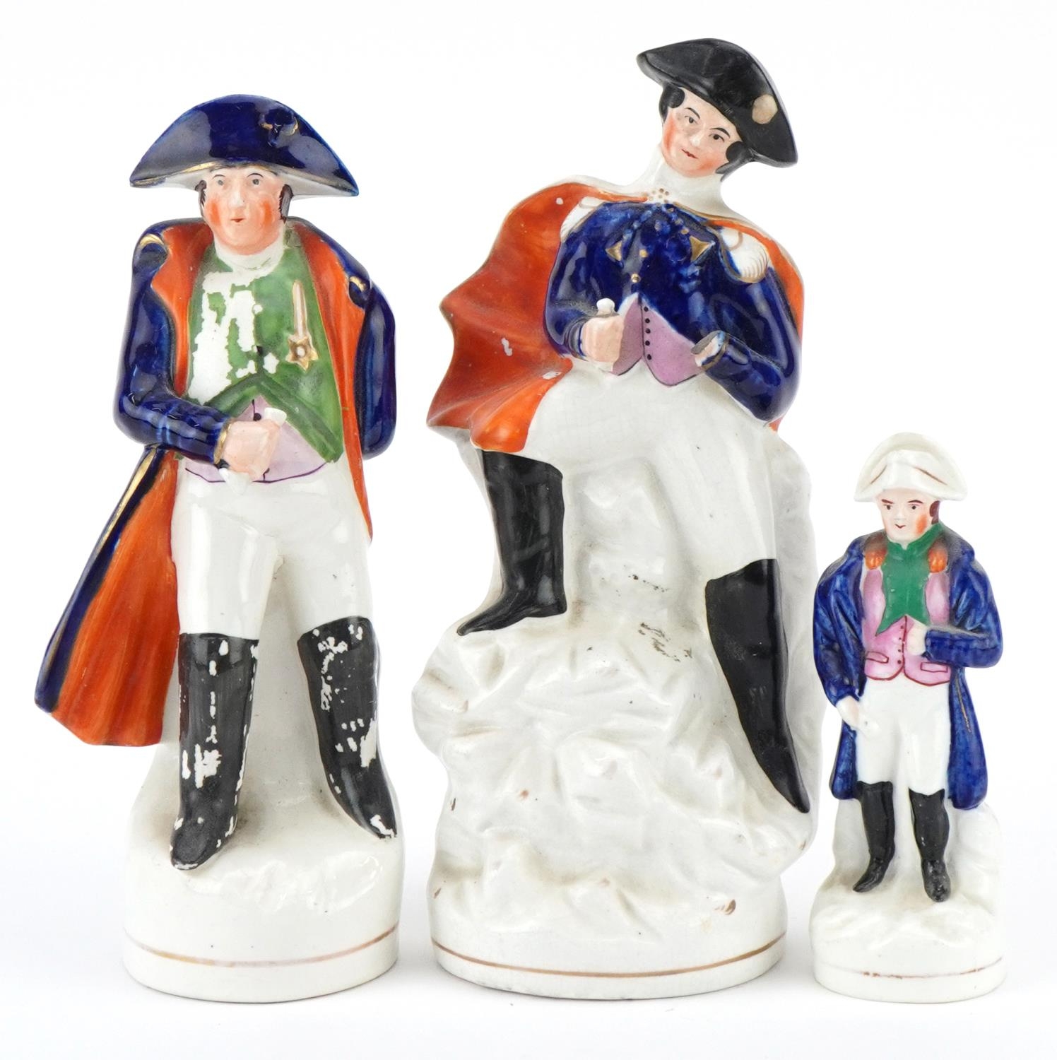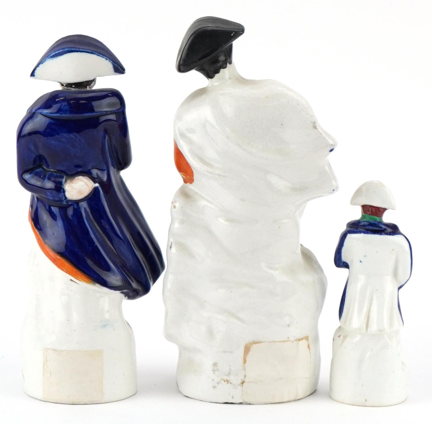 Three Victorian Staffordshire pottery figures of Napoleon Bonaparte, the largest 32cm high.