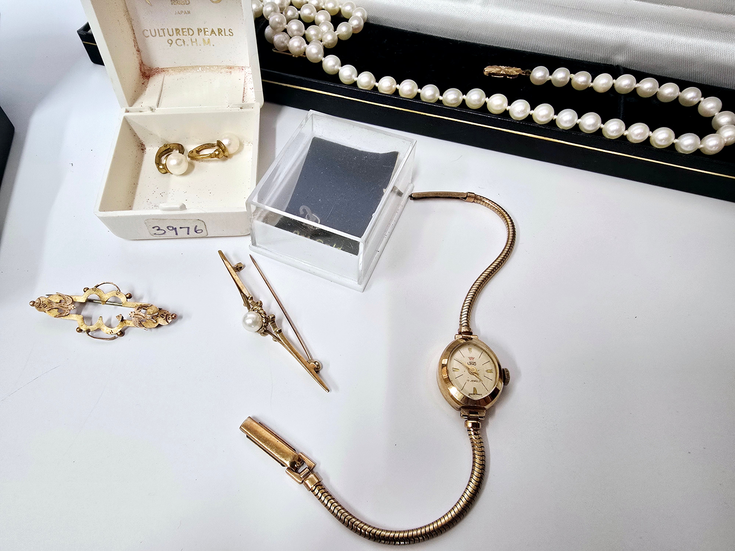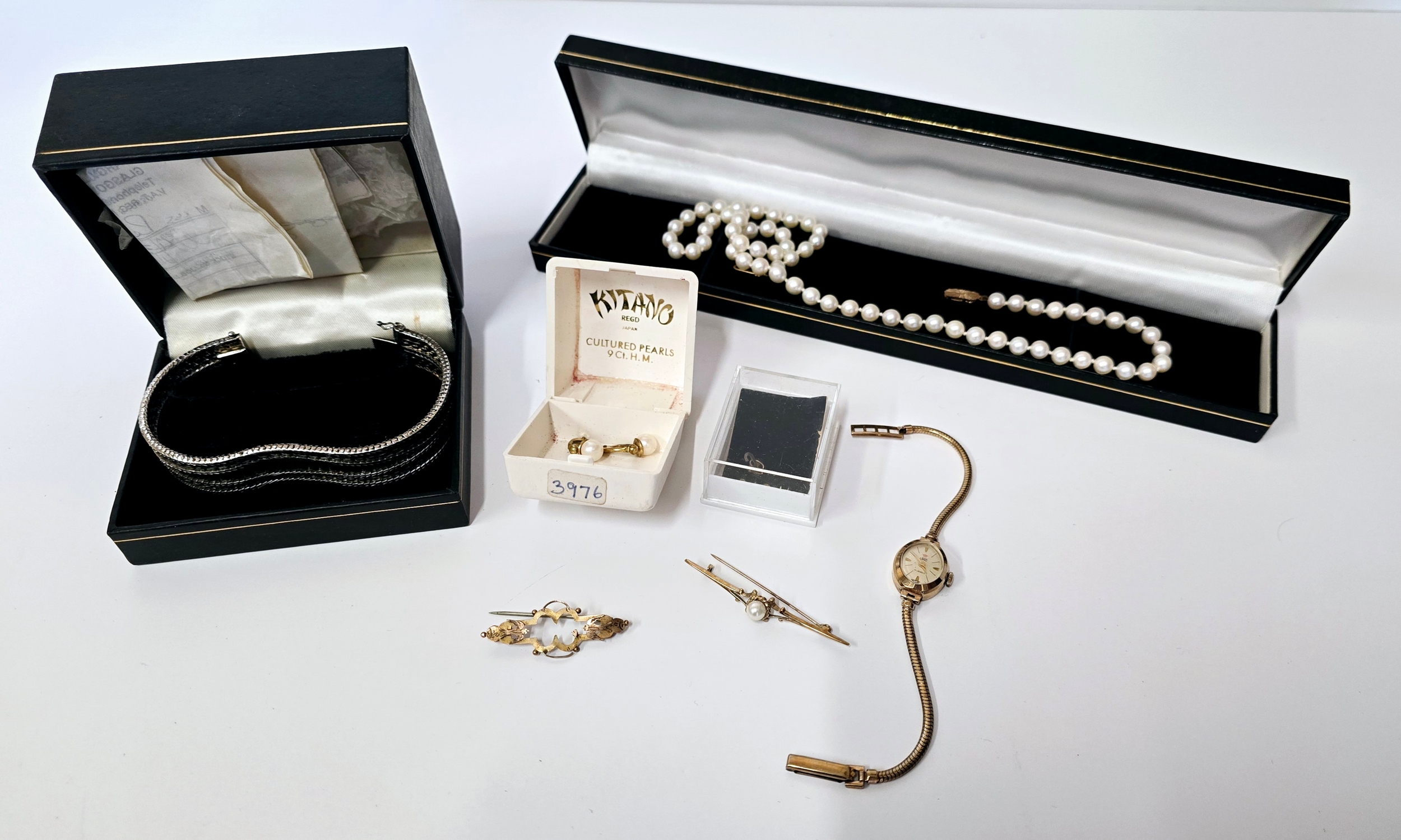 A Group of Hallmarked Gold and Silver Jewellery including a 9ct Gold Ladies watch, 925 Silver Bracelet etc.
