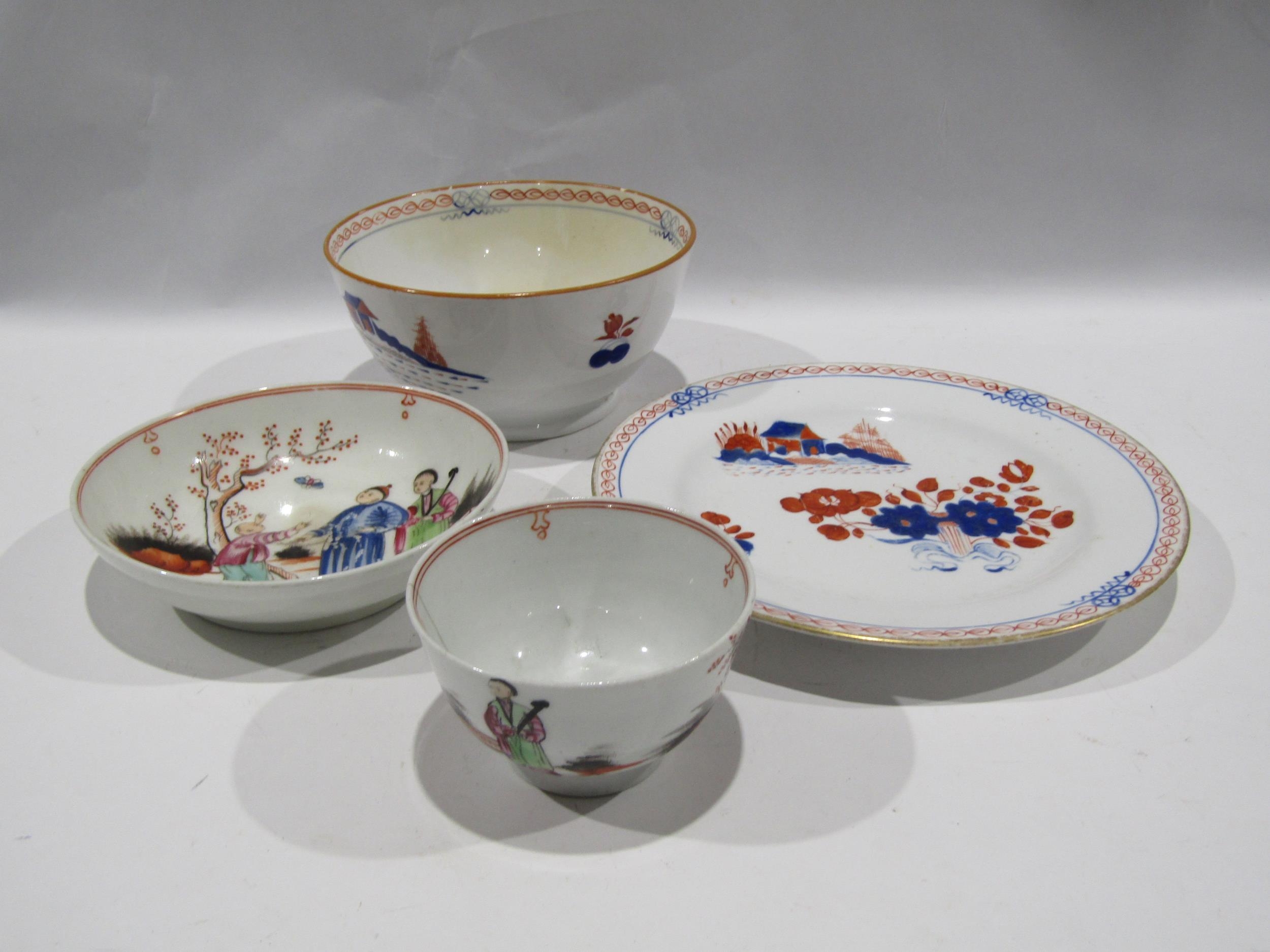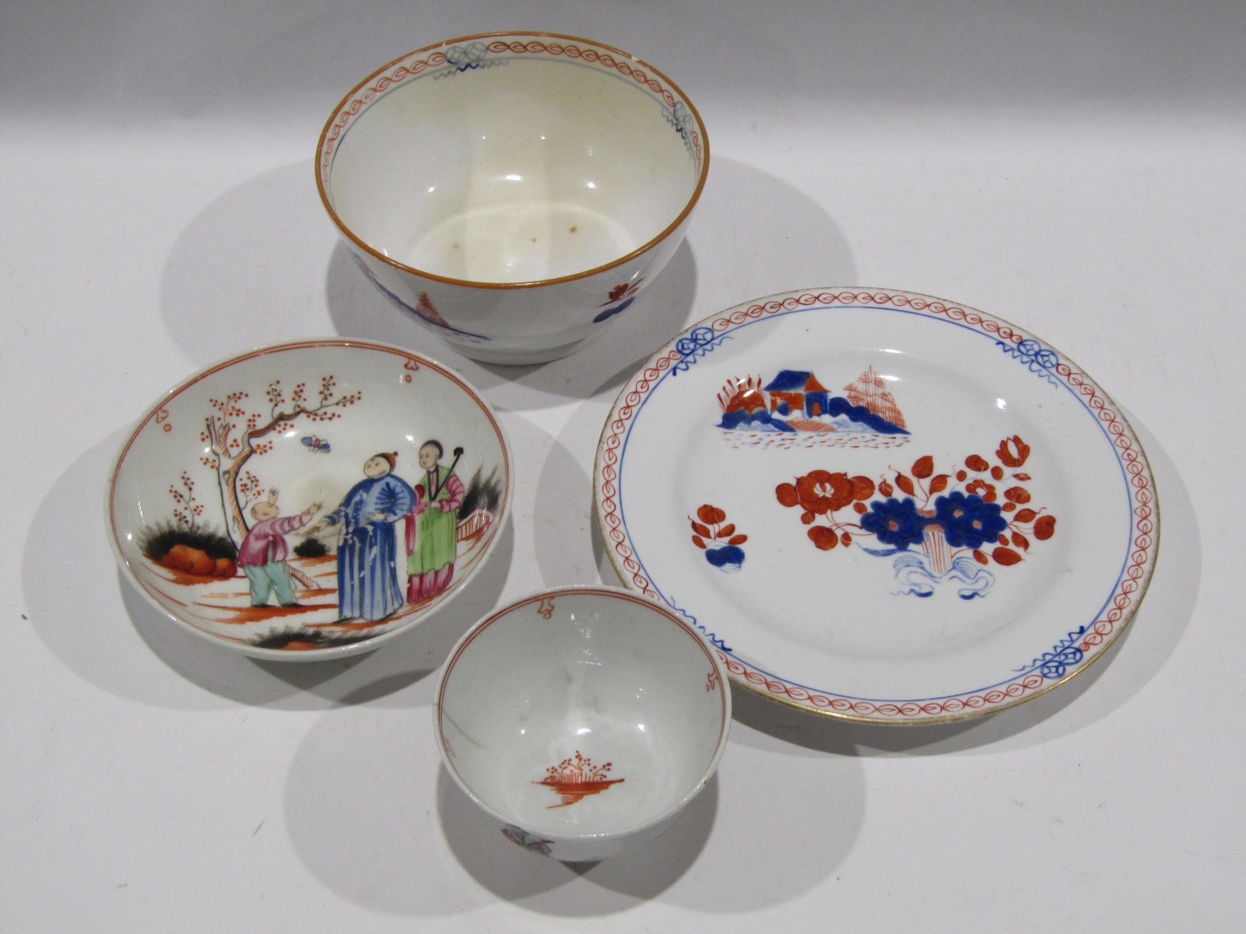 A Hilditch slop bowl and saucer together with an Oriental tea bowl and saucer (a/f)