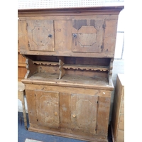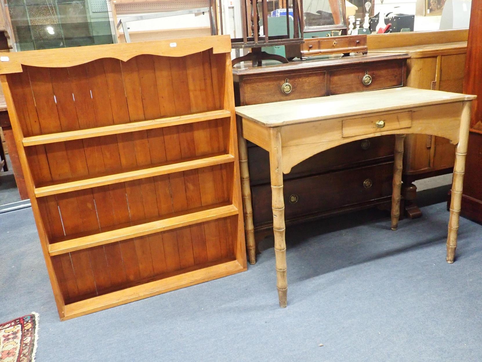 and single frieze drawer over an arched apron, 92cm wide, and a small set of pine open shelves, 107cm high, 84cm wide (2)