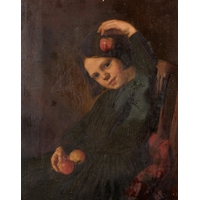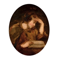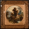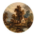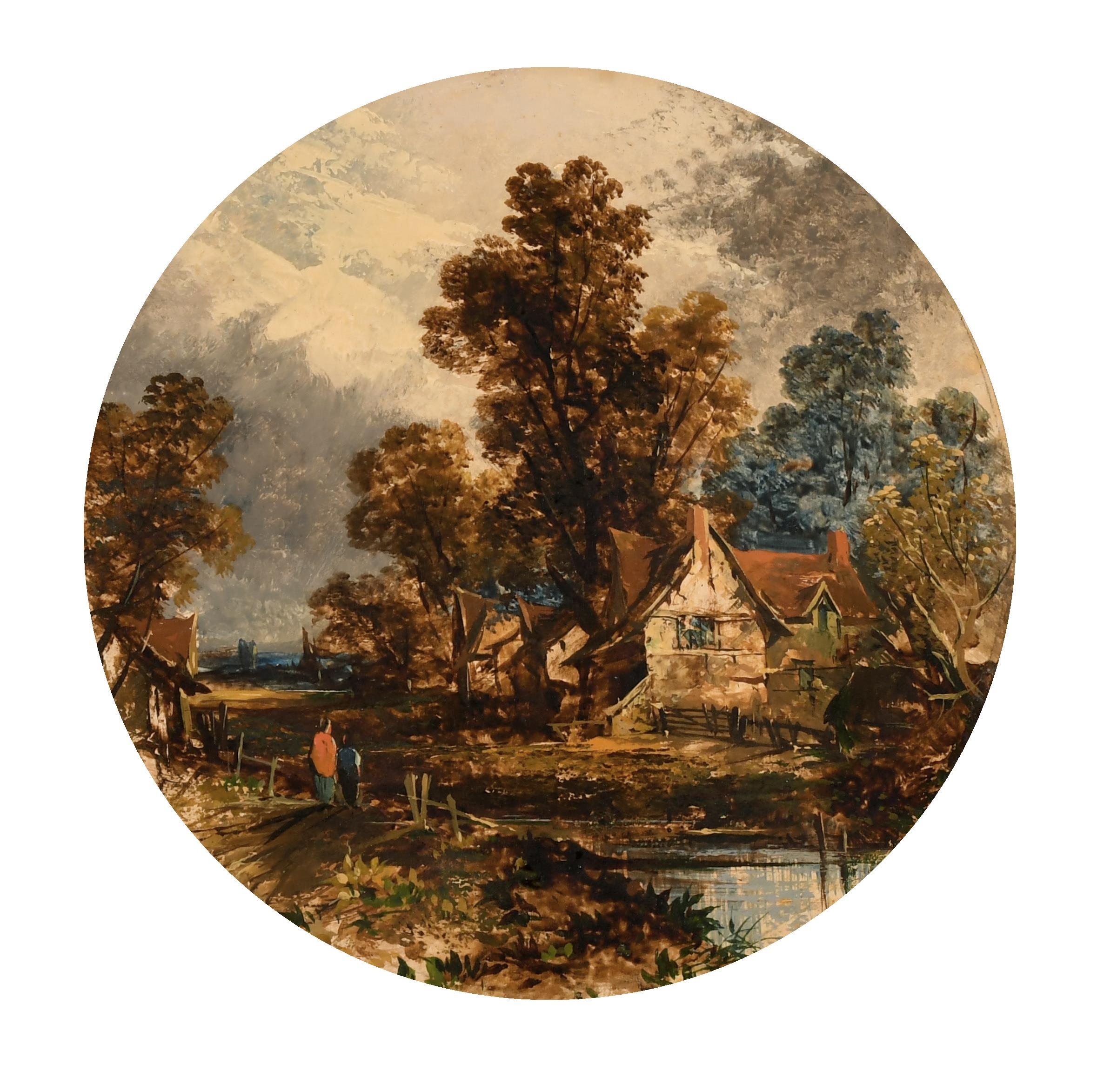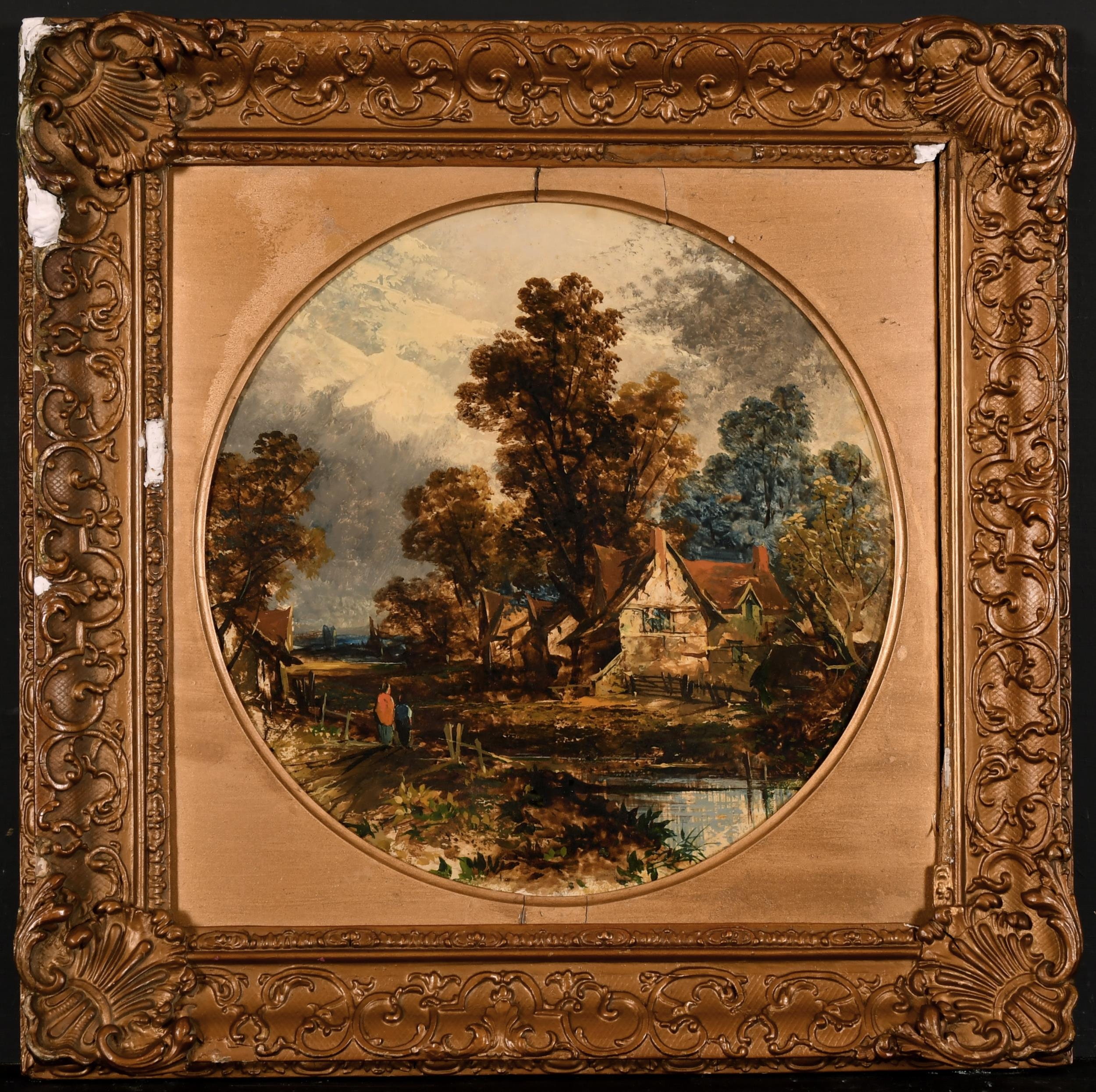 Circle of Joseph Paul (1804-1887) British. A Norwich Style River Landscape with Figures, Oil on Board, Circular 11.5" x 11.5" (29.2 x 29.2cm)