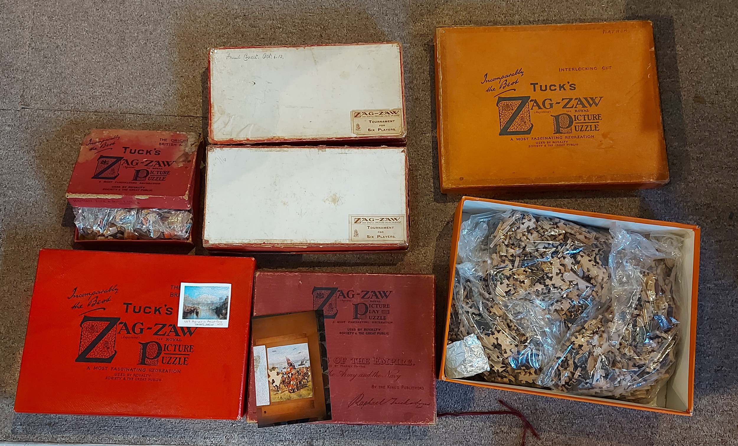 Raphael Tuck and Sons, Zag-Zaw Picture Play Puzzle for six players together with another similar and four Zag-Zaw puzzles