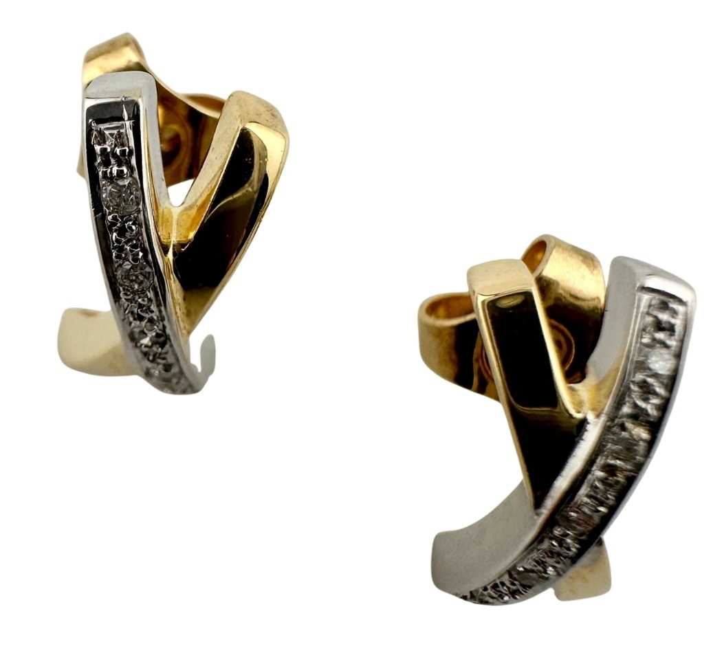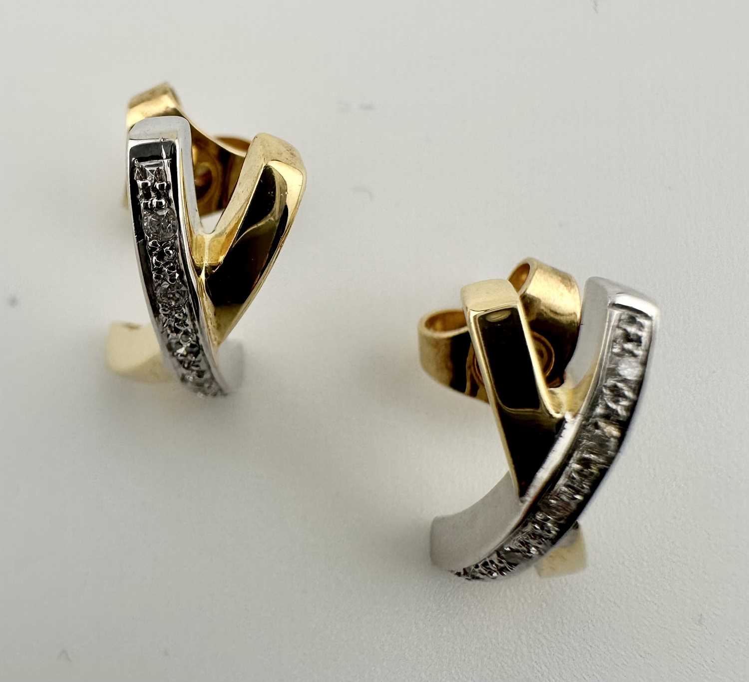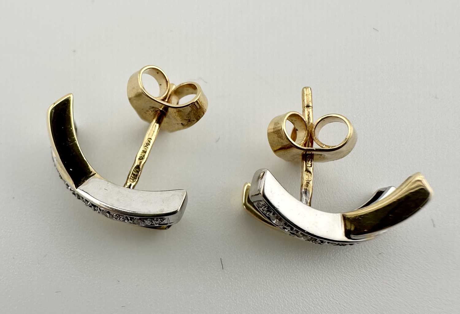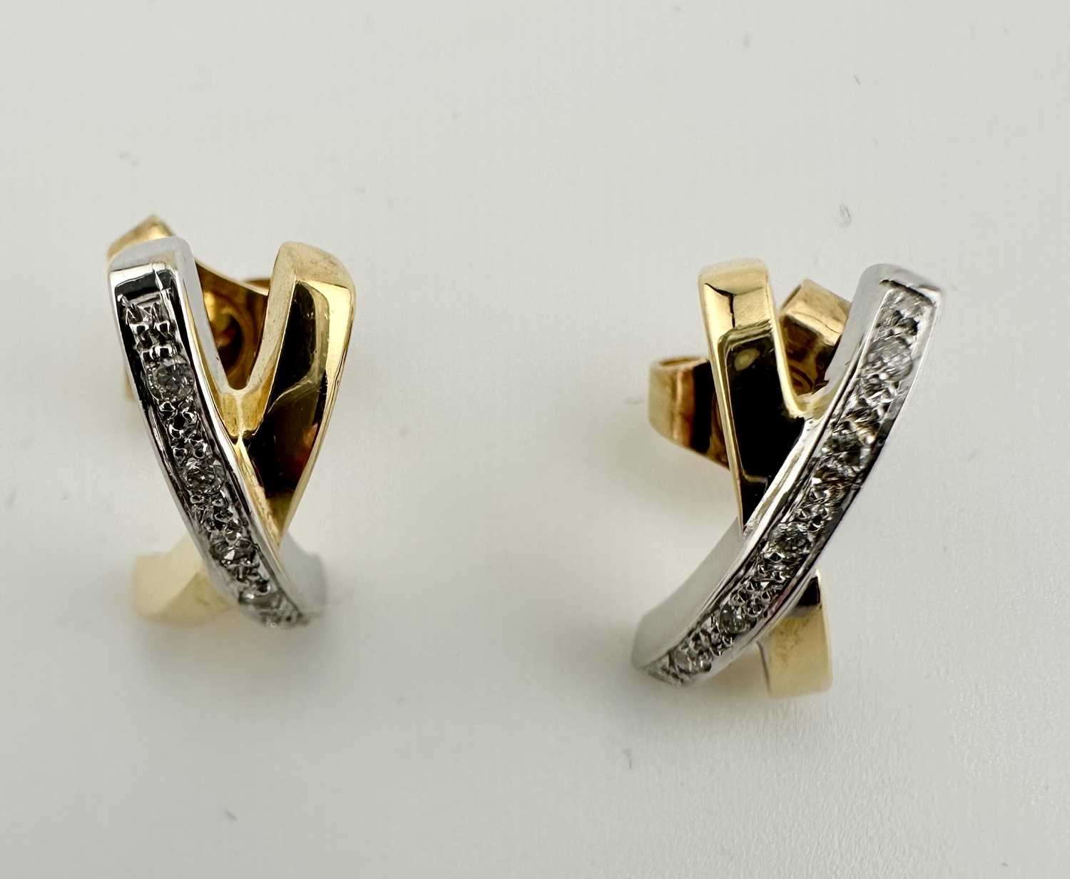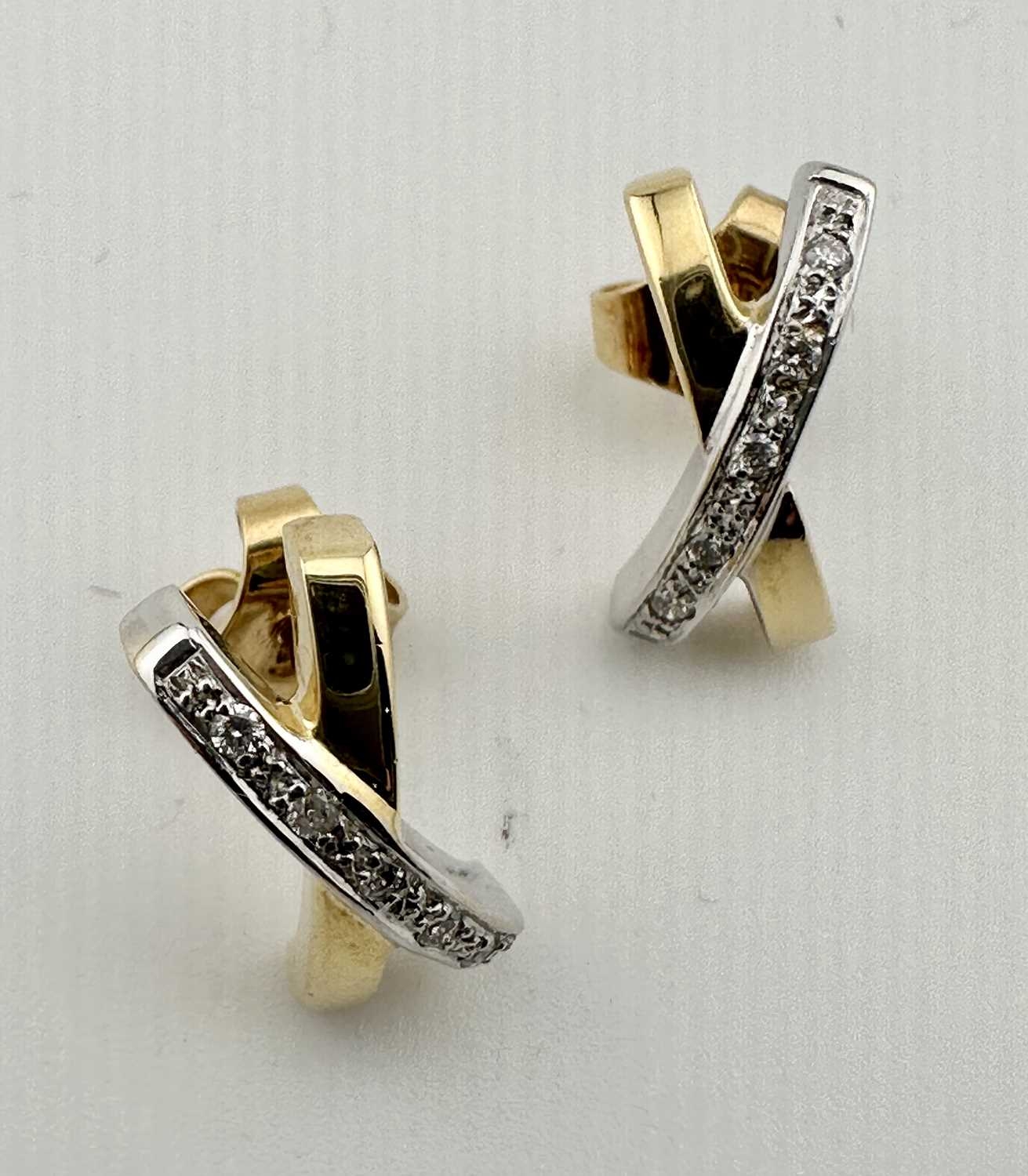 A pair of bi-colour 18ct gold brilliant-cut diamond cross earrings, estimated total diamond weight 0.10ct, hallmarks for Sheffield, length 1.5cm, 3.6g.