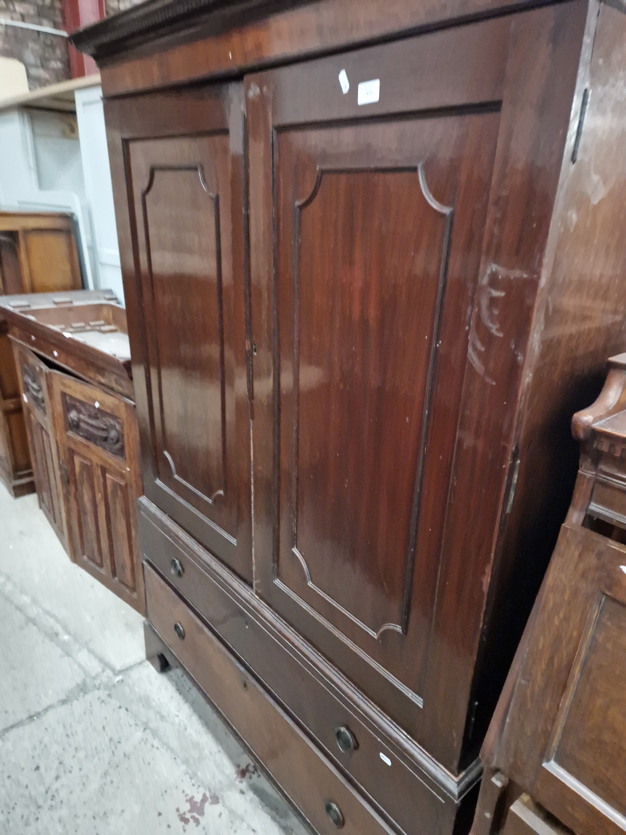 A vintage mahogany 2 door wardrobe with one lower drawer